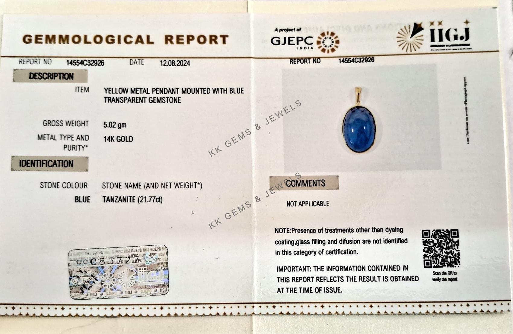 This stunning pendant is set in 14k Solid Yellow Gold with Natural Tanzanite with utmost precision. It is an unique gemstone pendant for nearly every occasion and is completely hassle-free jewelry.