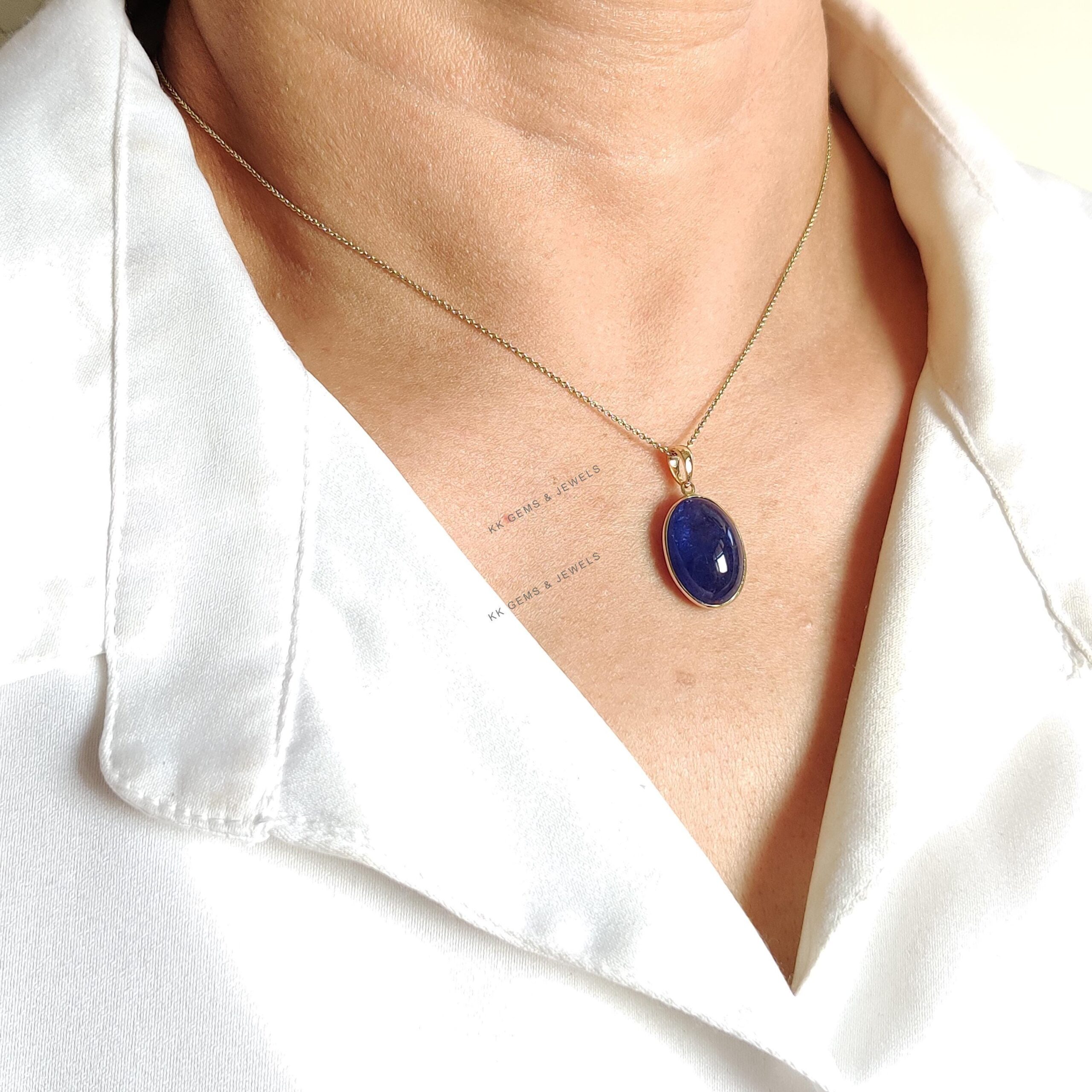 1 review for Oval Shape Natural Tanzanite Birthstone Pendant Set in 14K Solid Gold Bezel Setting