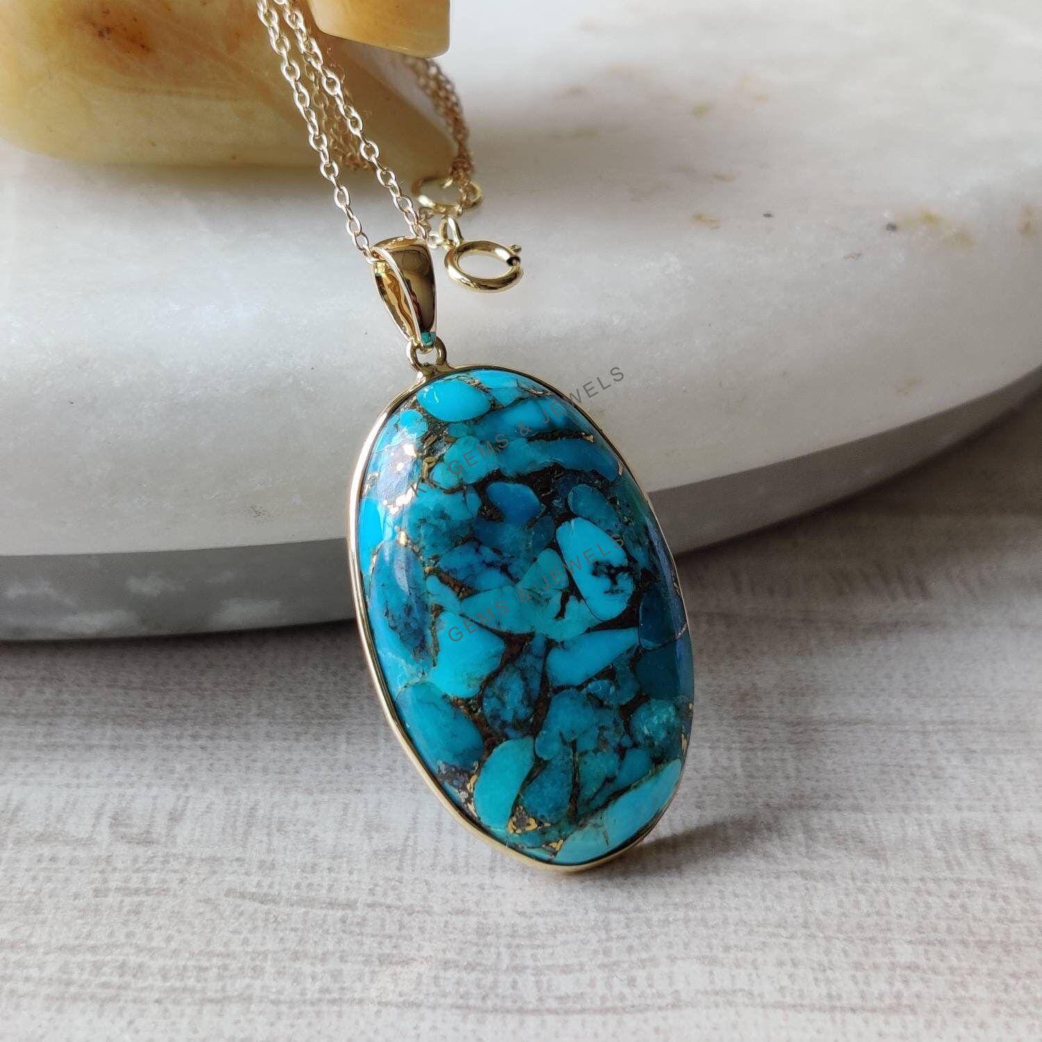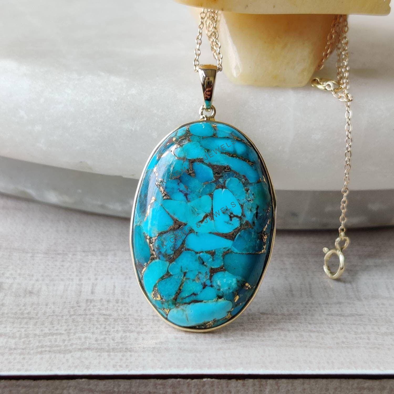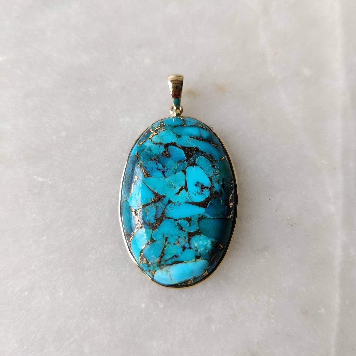 This stunning pendant is set in 14K Solid Yellow Gold with Natural Sleeping Beauty Arizona Turquoise with utmost precision. It is an unique gemstone pendant for nearly every occasion and is completely hassle-free jewelry. ✓ ABOUT GEMSTONE: Turquoise is a…