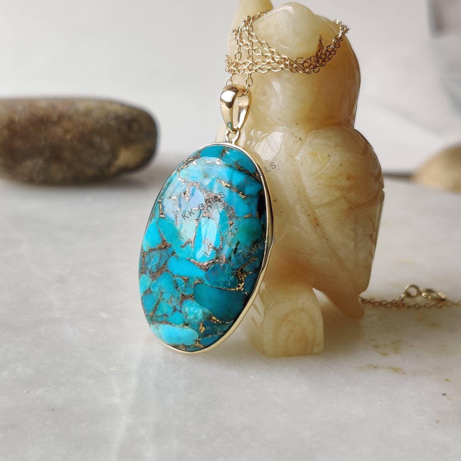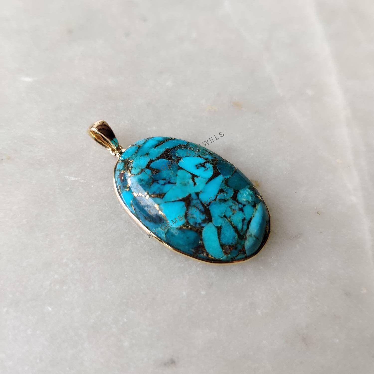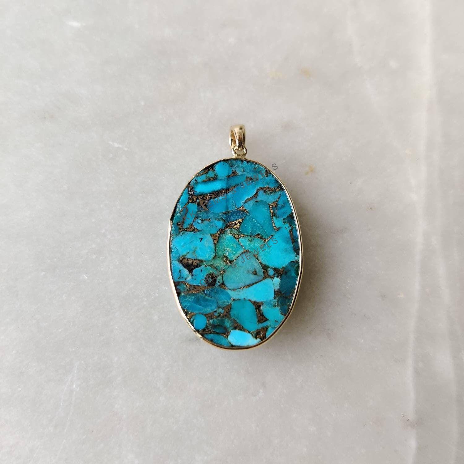 This stunning pendant is set in 14K Solid Yellow Gold with Natural Sleeping Beauty Arizona Turquoise with utmost precision. It is an unique gemstone pendant for nearly every occasion and is completely hassle-free jewelry. ✓ ABOUT GEMSTONE: Turquoise is a…