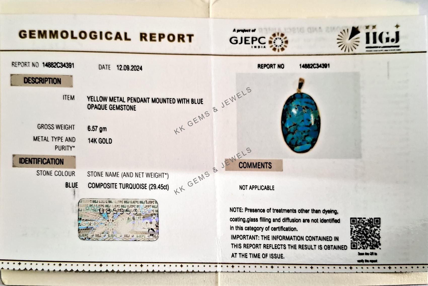 This stunning pendant is set in 14K Solid Yellow Gold with Natural Sleeping Beauty Arizona Turquoise with utmost precision. It is an unique gemstone pendant for nearly every occasion and is completely hassle-free jewelry.
