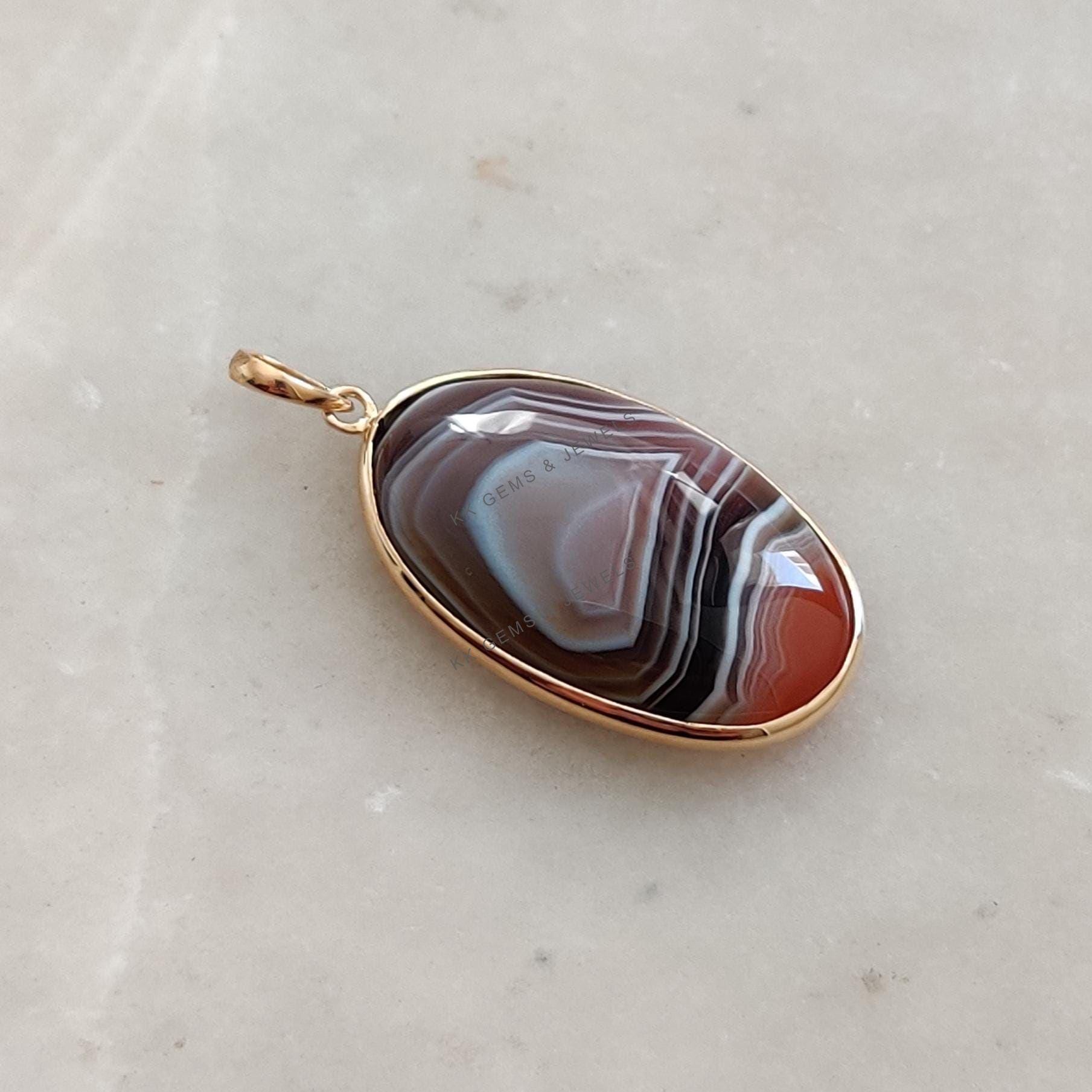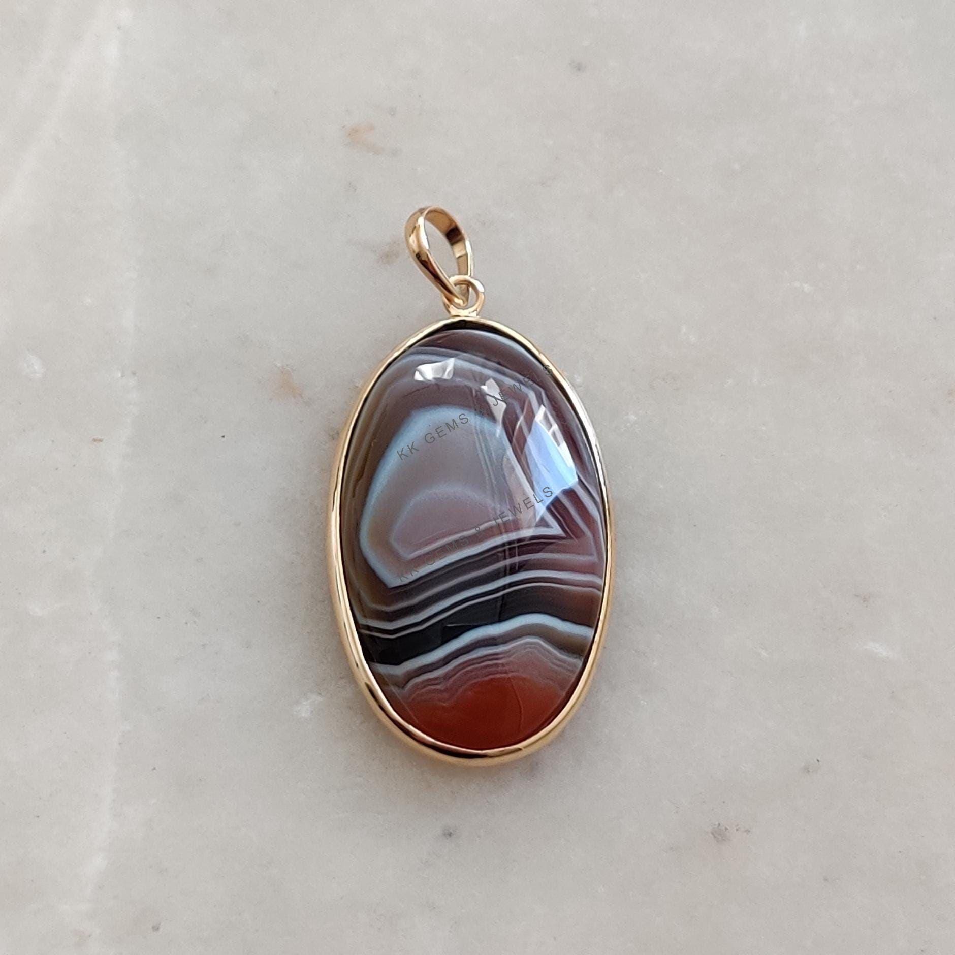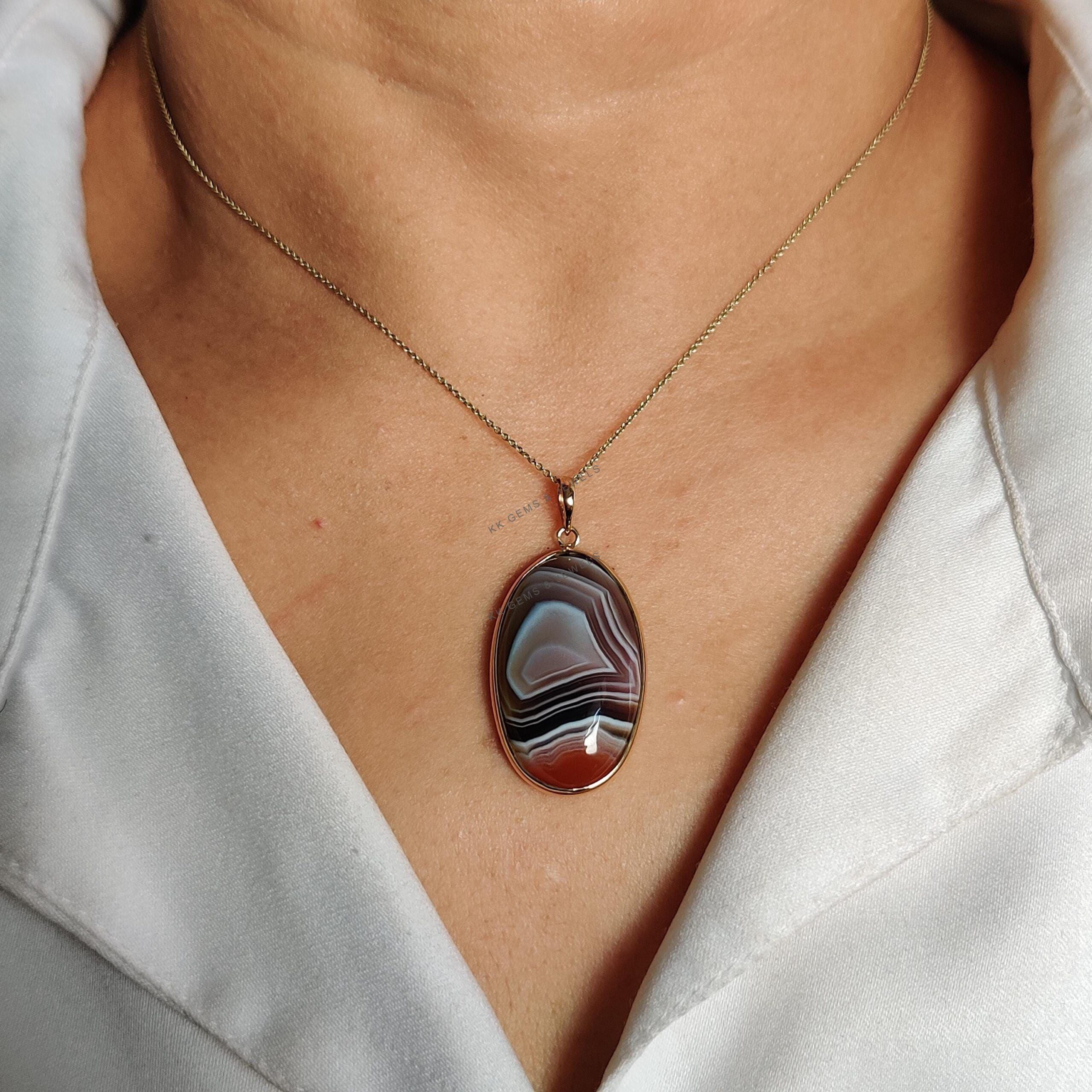 1 review for Oval Shape Natural Agate Pendant, Bezel Set in 14K Solid Gold, November Gem