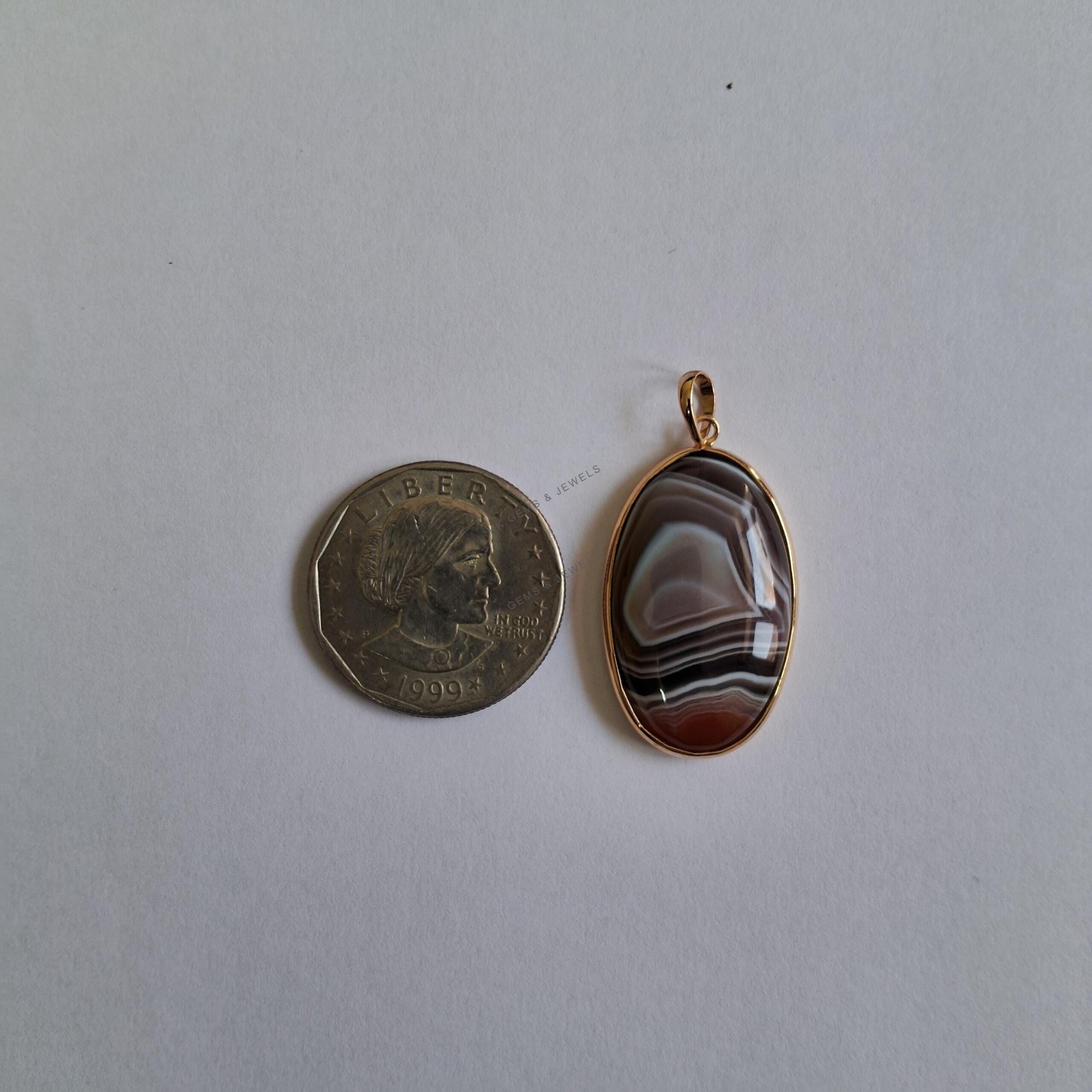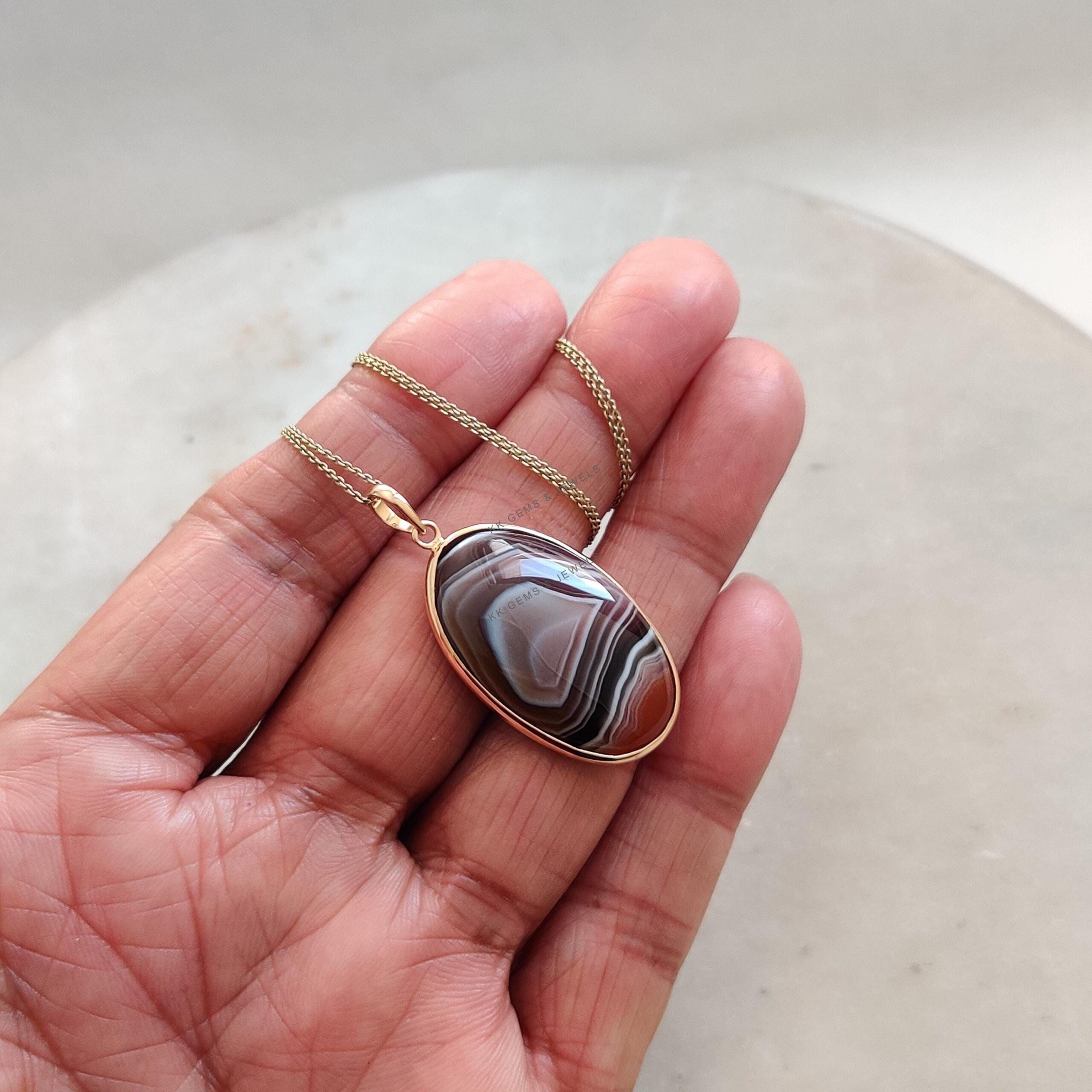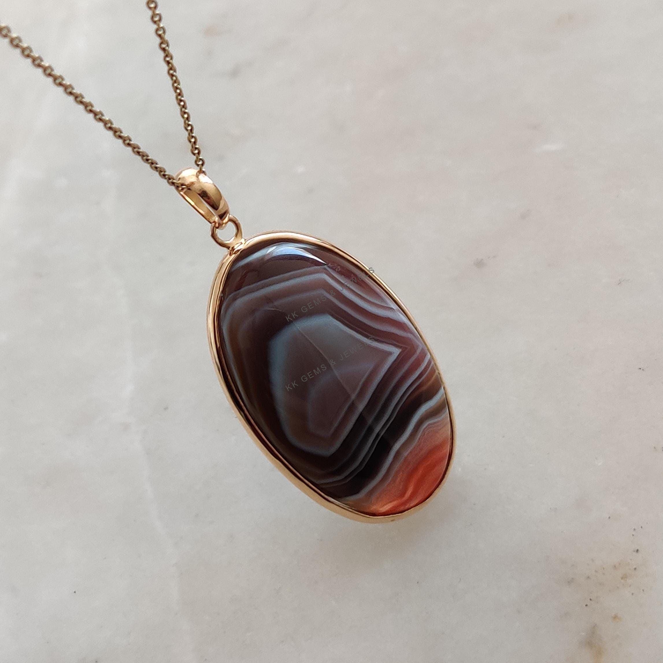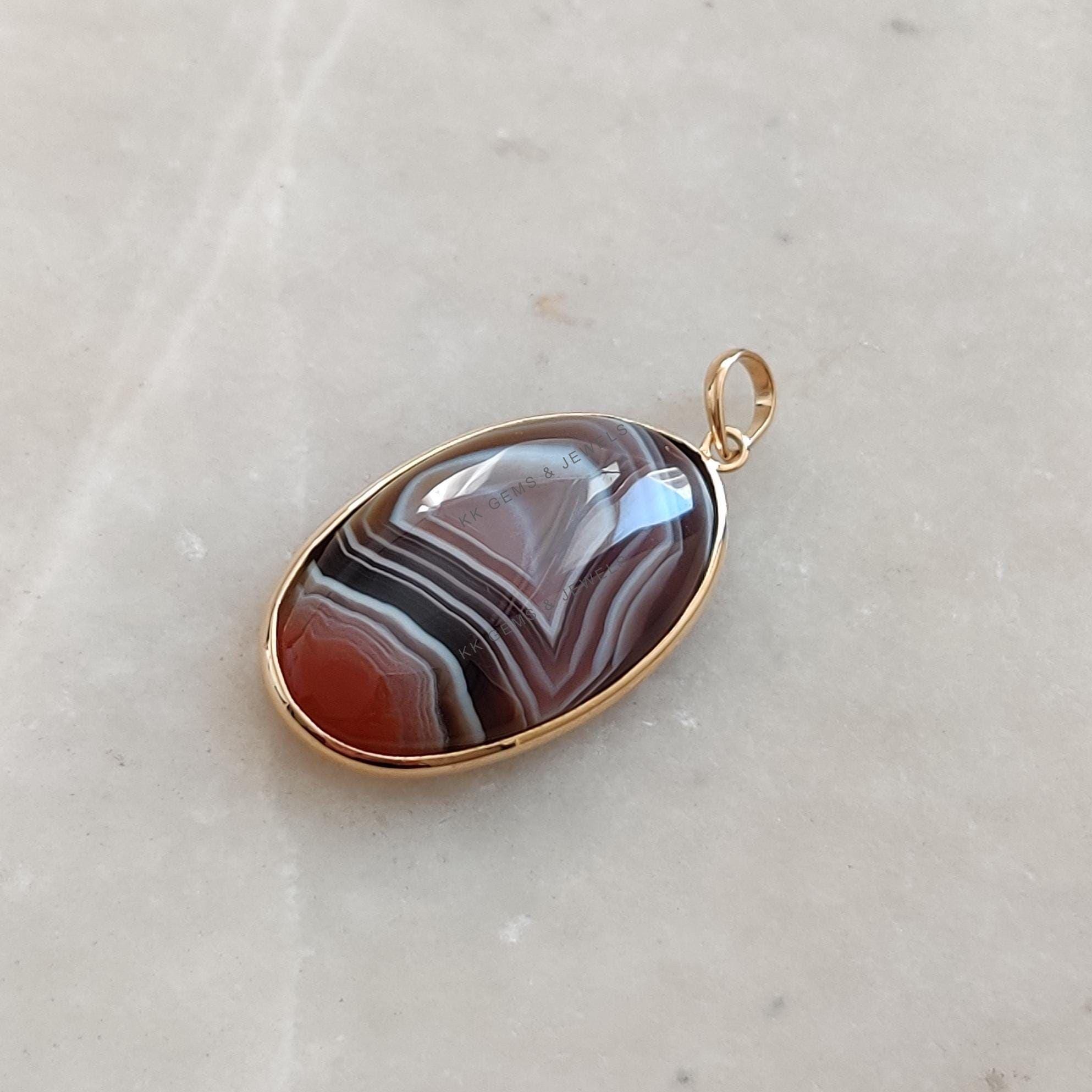 1 review for Oval Shape Natural Agate Pendant, Bezel Set in 14K Solid Gold, November Gem