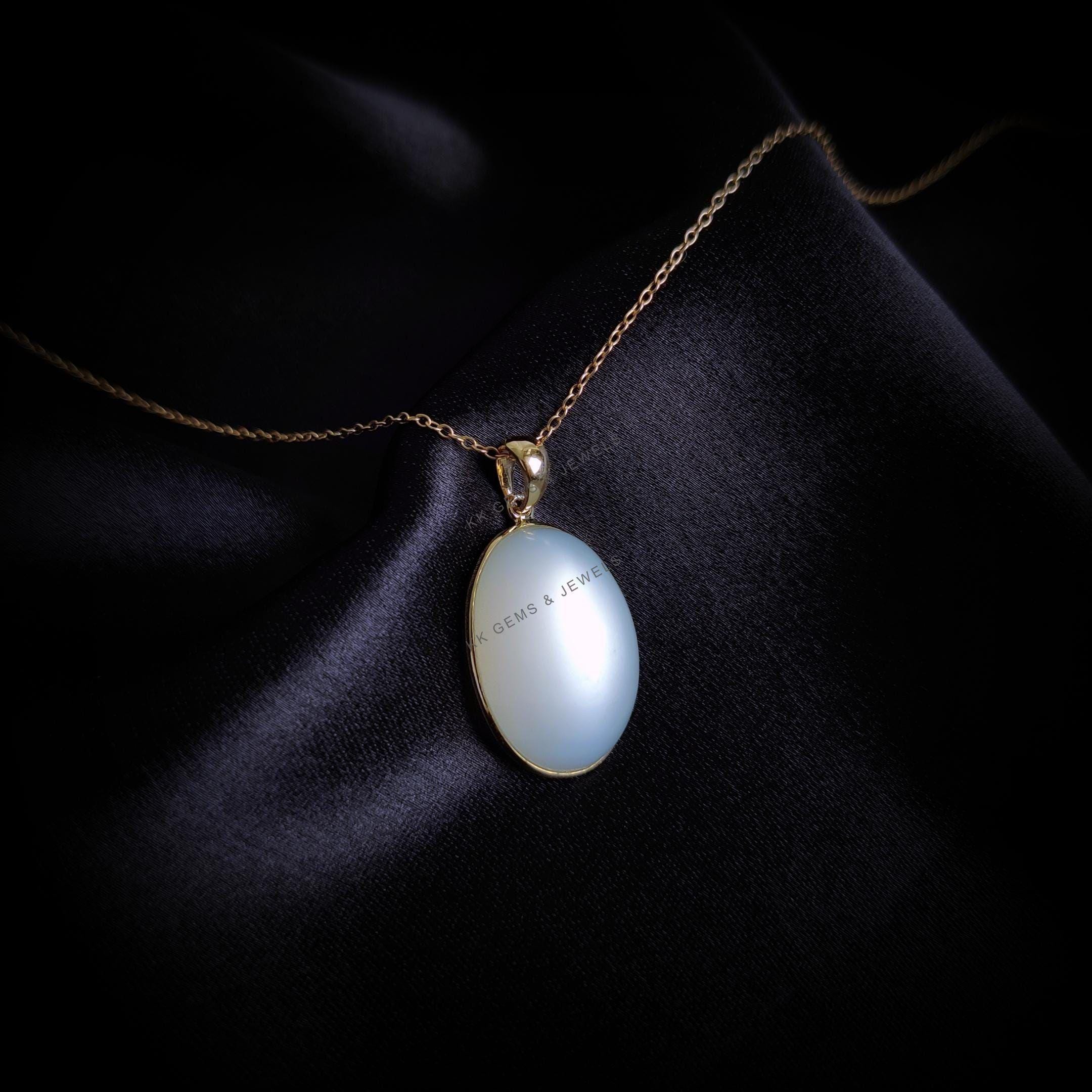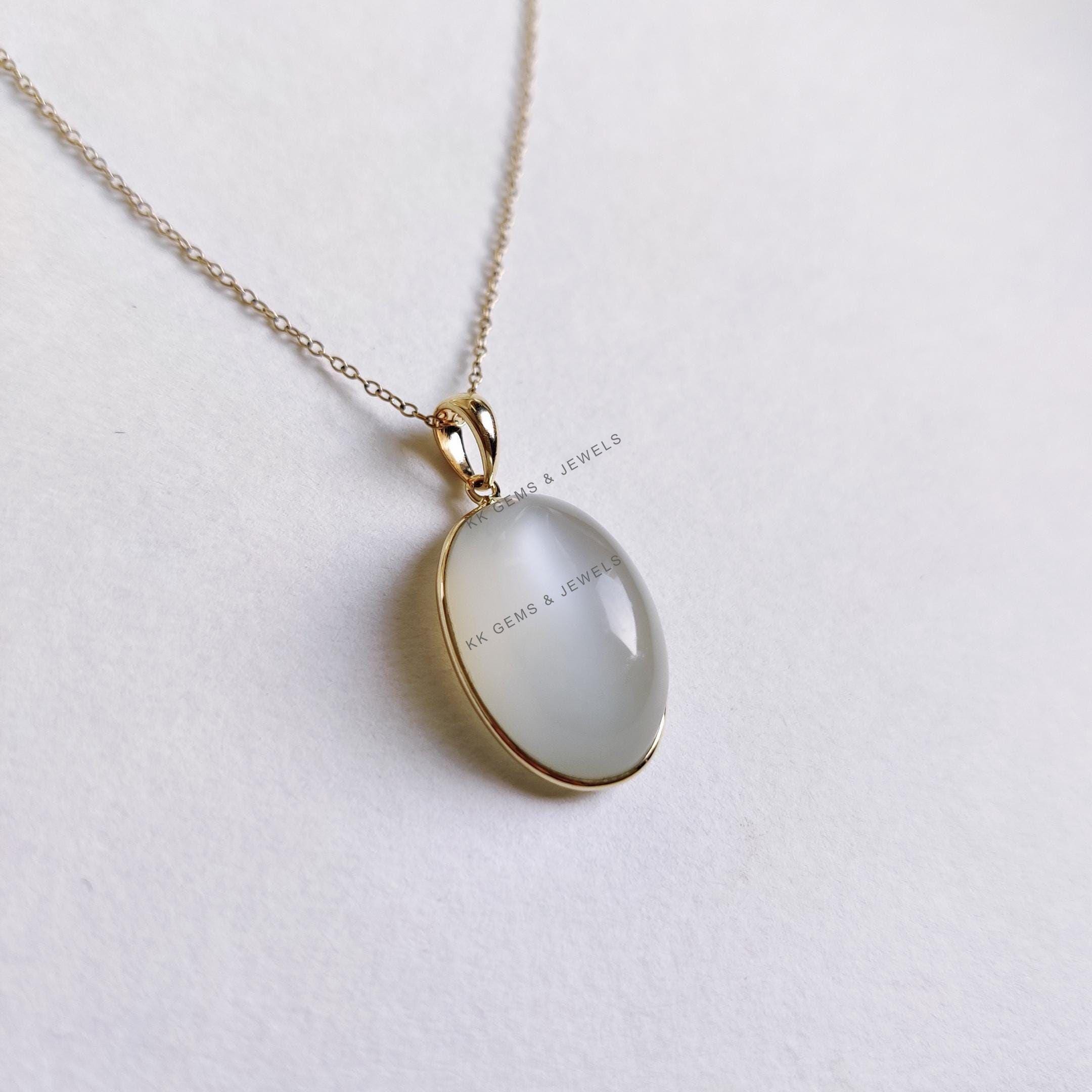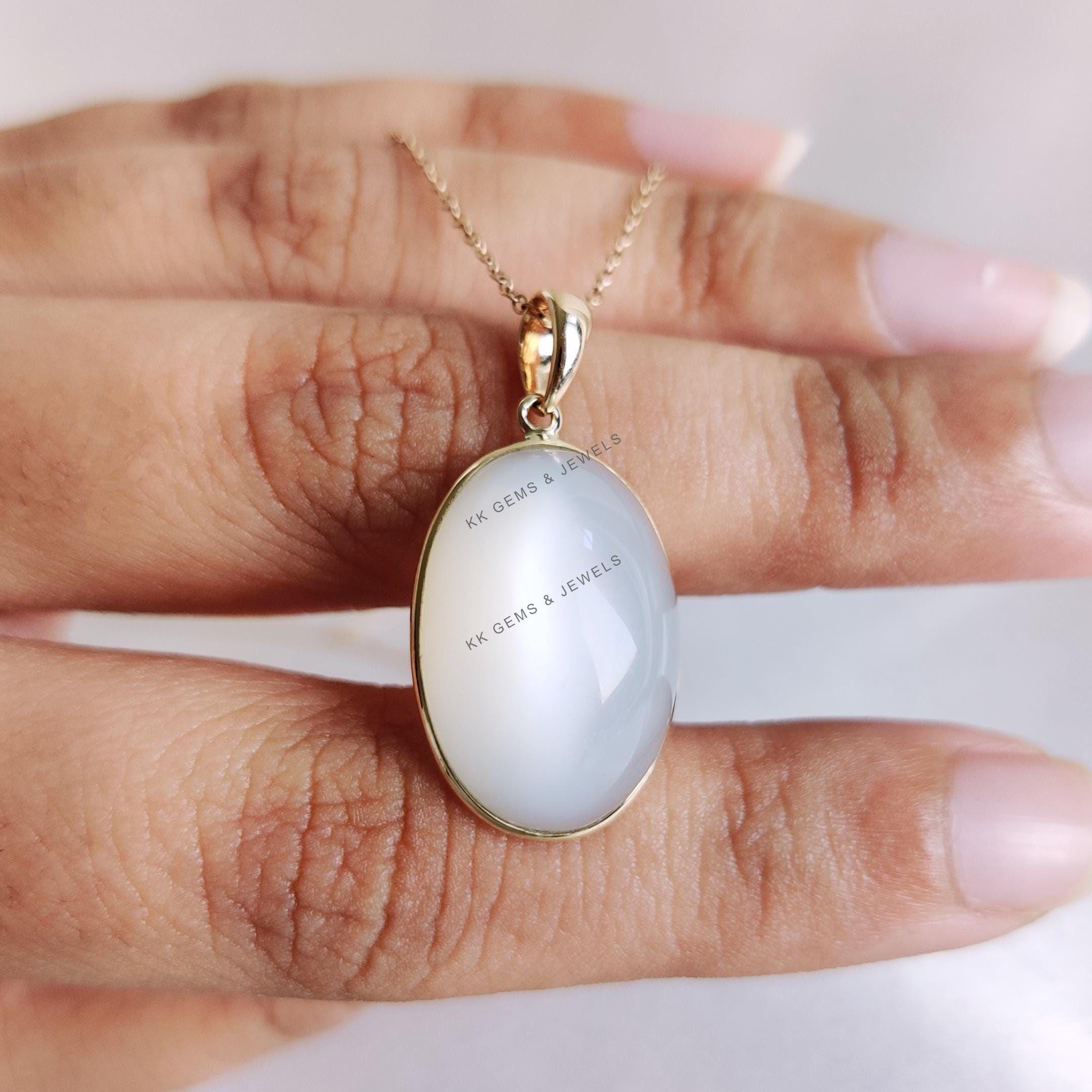 This stunning pendant is set in 14k Solid Yellow Gold with Natural White Moonstone with utmost precision. It is an unique gemstone pendant for nearly every occasion and is completely hassle-free jewelry. ✓ ABOUT GEMSTONE: White moonstone, with its milky…