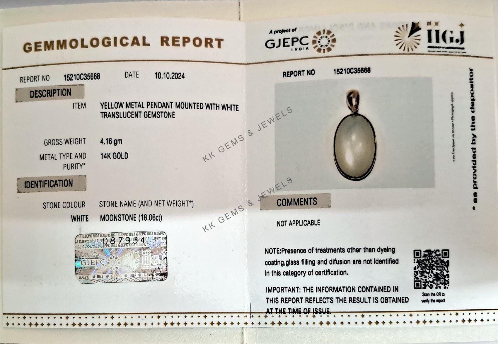 This stunning pendant is set in 14k Solid Yellow Gold with Natural White Moonstone with utmost precision. It is an unique gemstone pendant for nearly every occasion and is completely hassle-free jewelry.