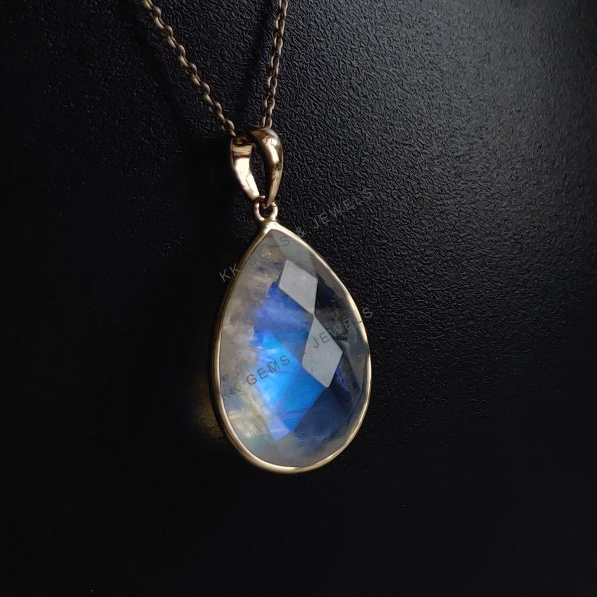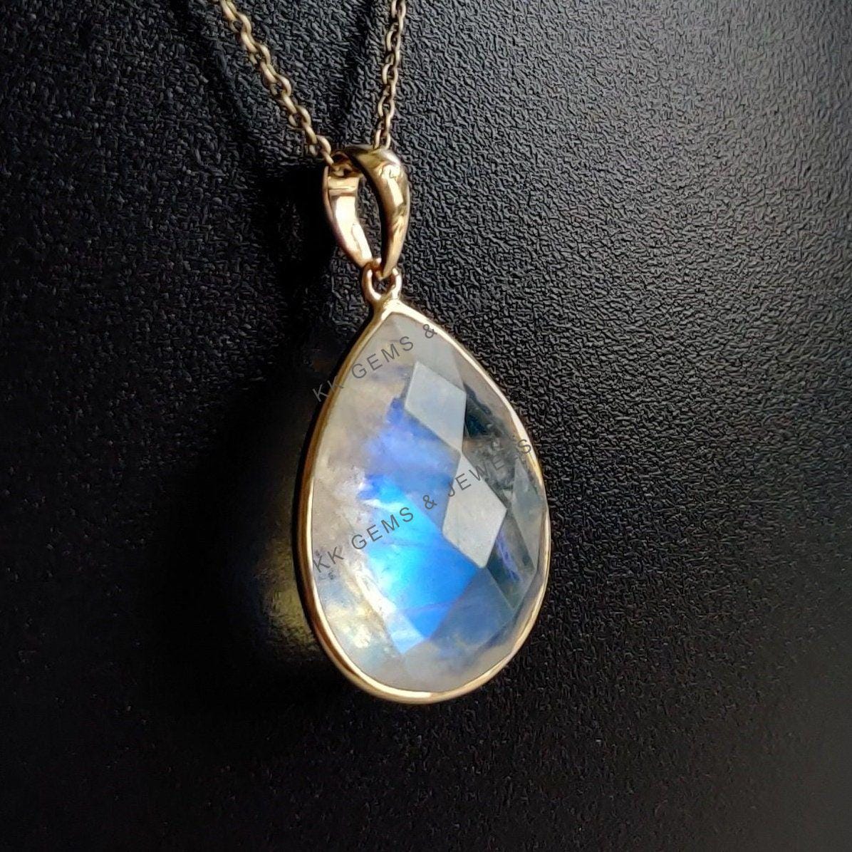 1 review for Pear Shape Natural Rainbow Moonstone Pendant, Bezel Set in 14K Solid Gold