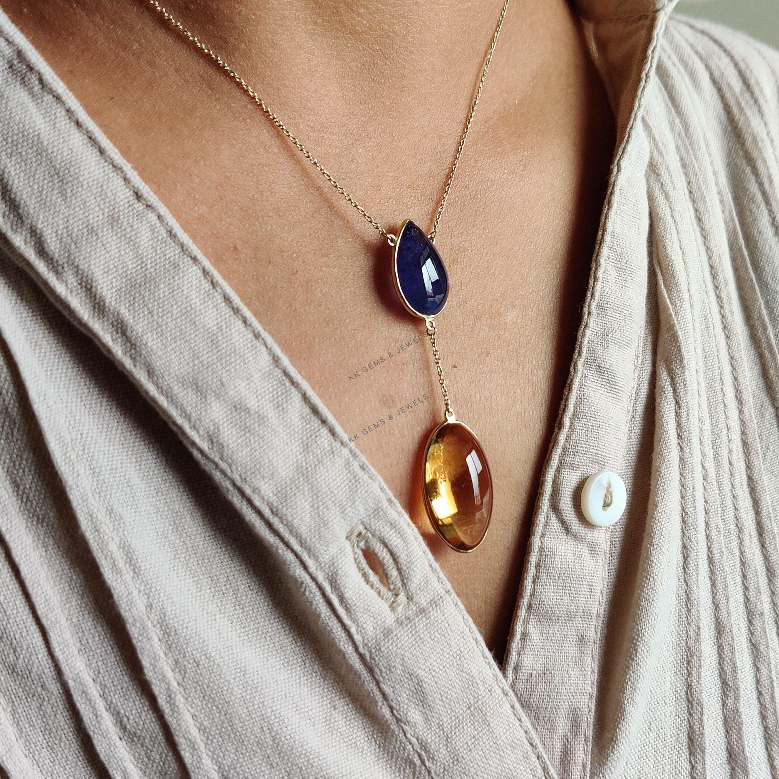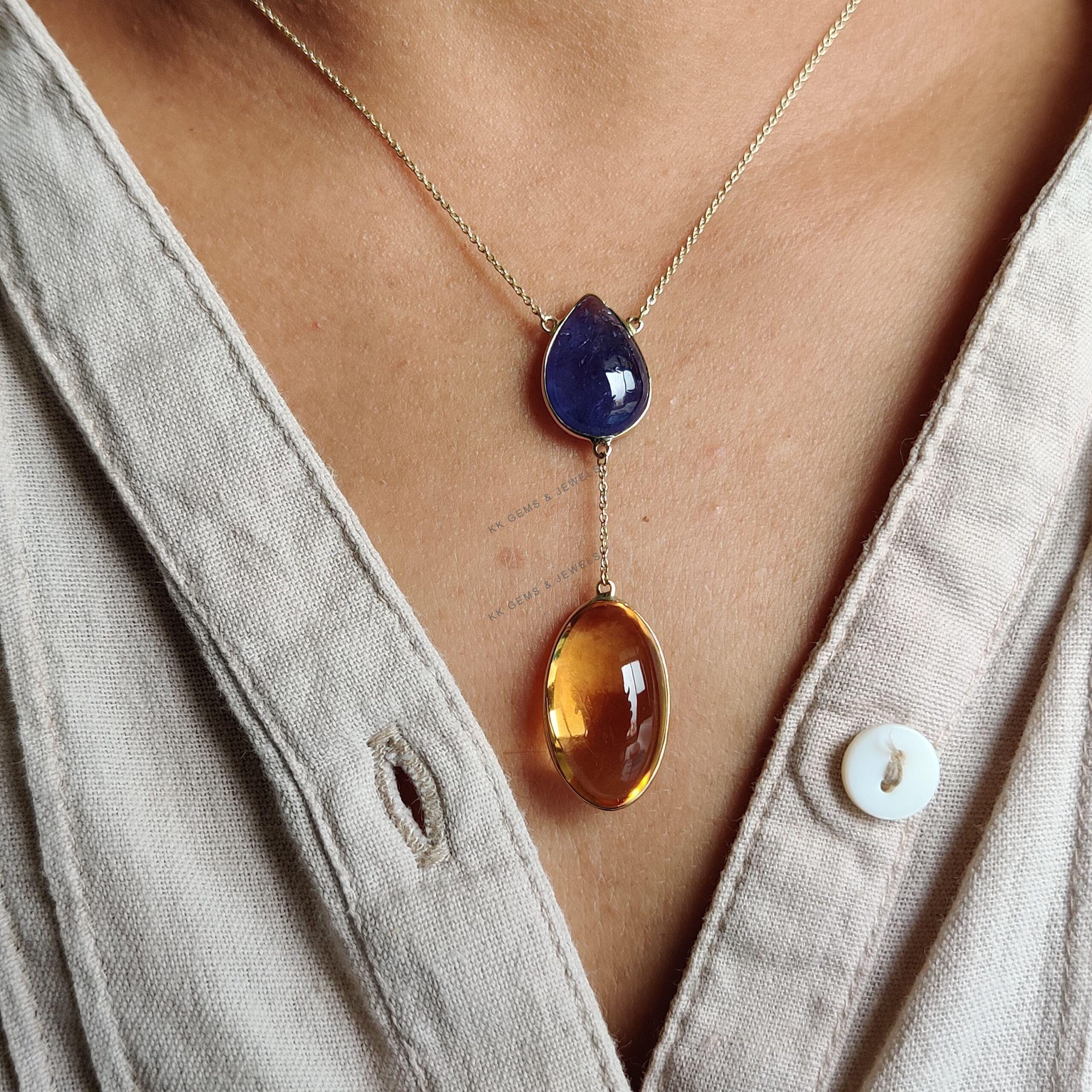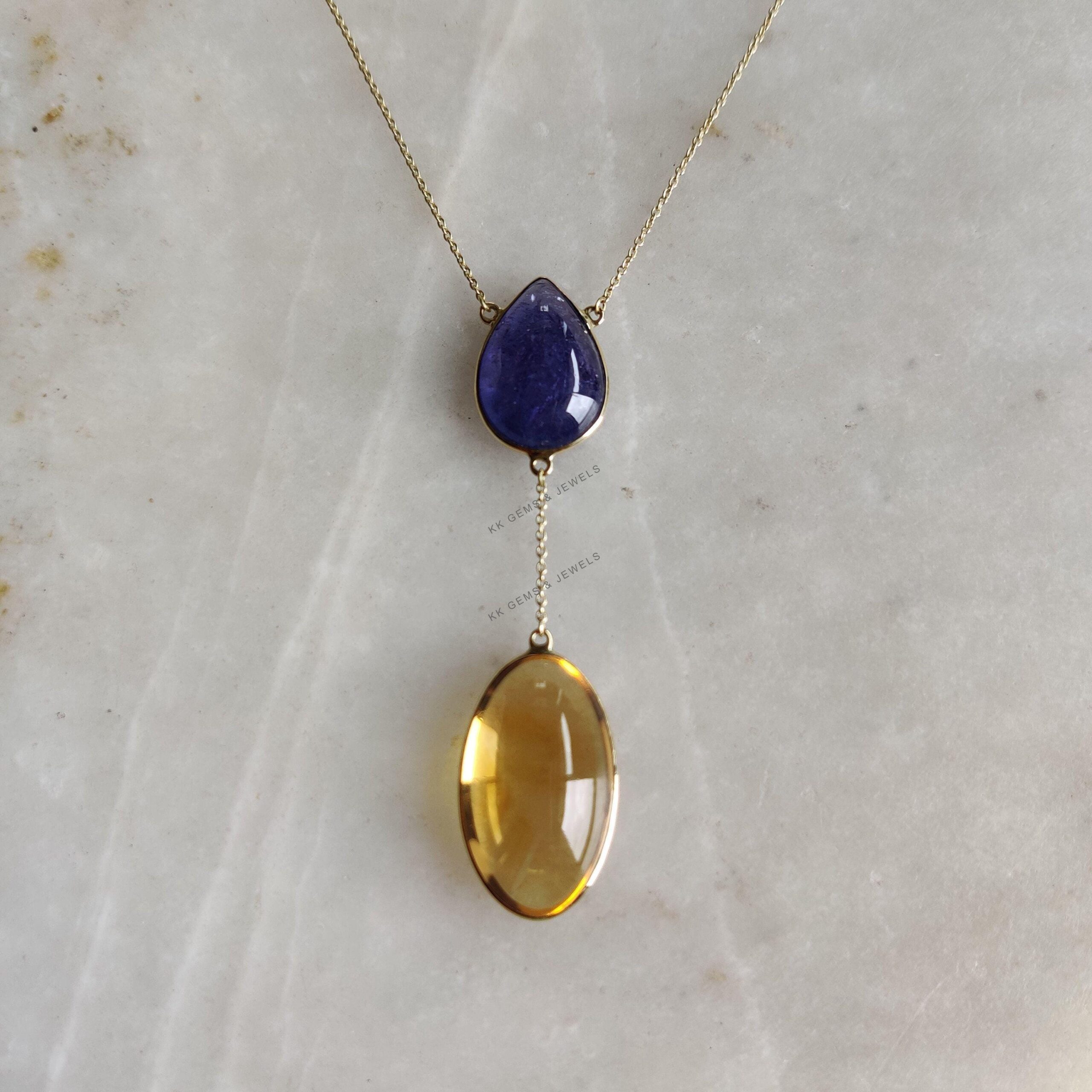 This stunning pendant is set in 14k Solid Yellow Gold with Natural Tanzanite and Citrine with utmost precision. It is an unique gemstone pendant for nearly every occasion and is completely hassle-free jewelry.