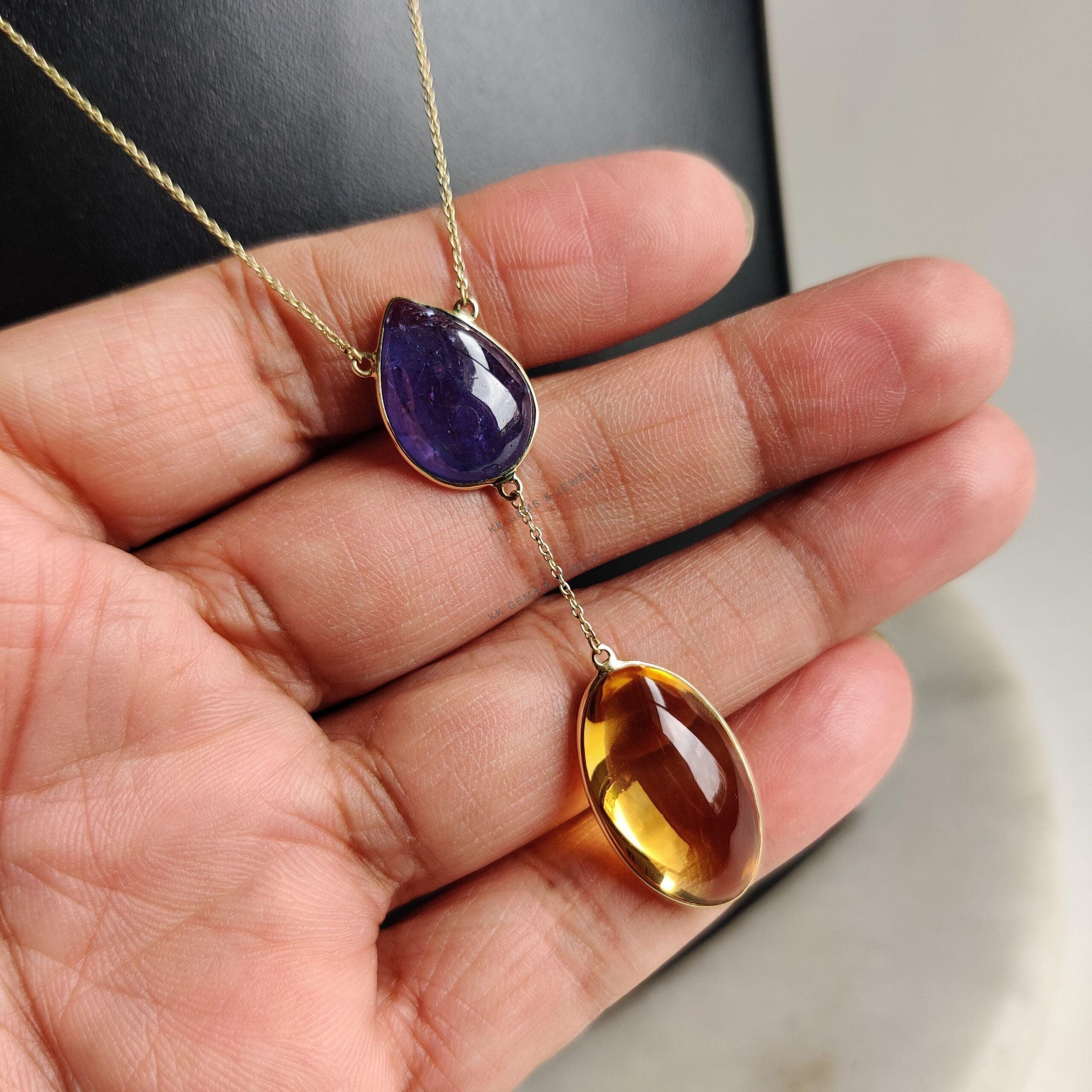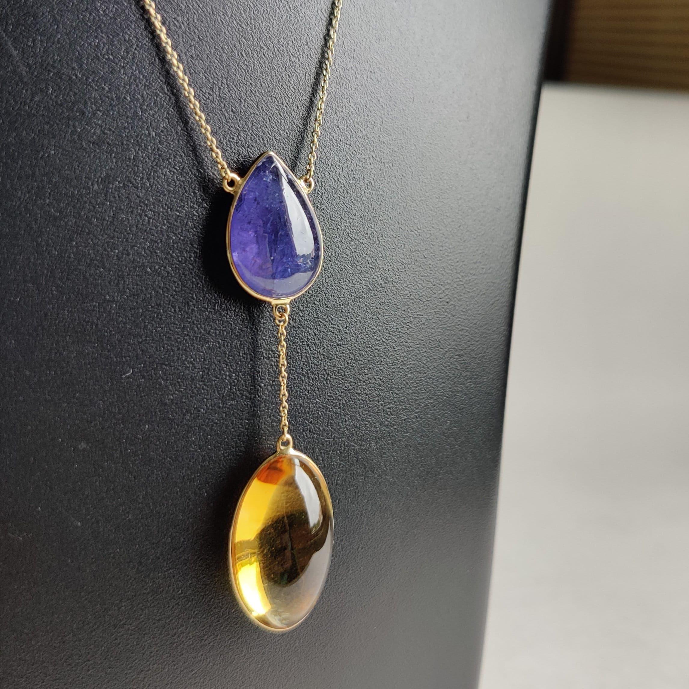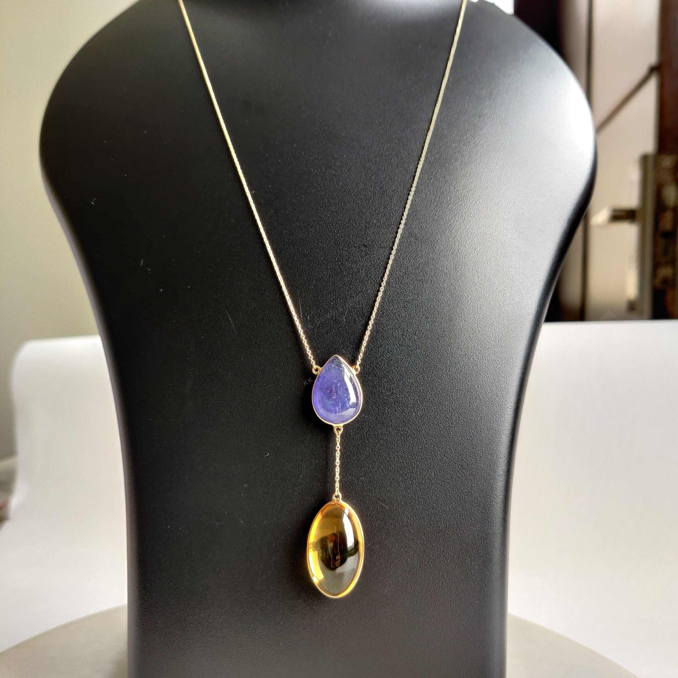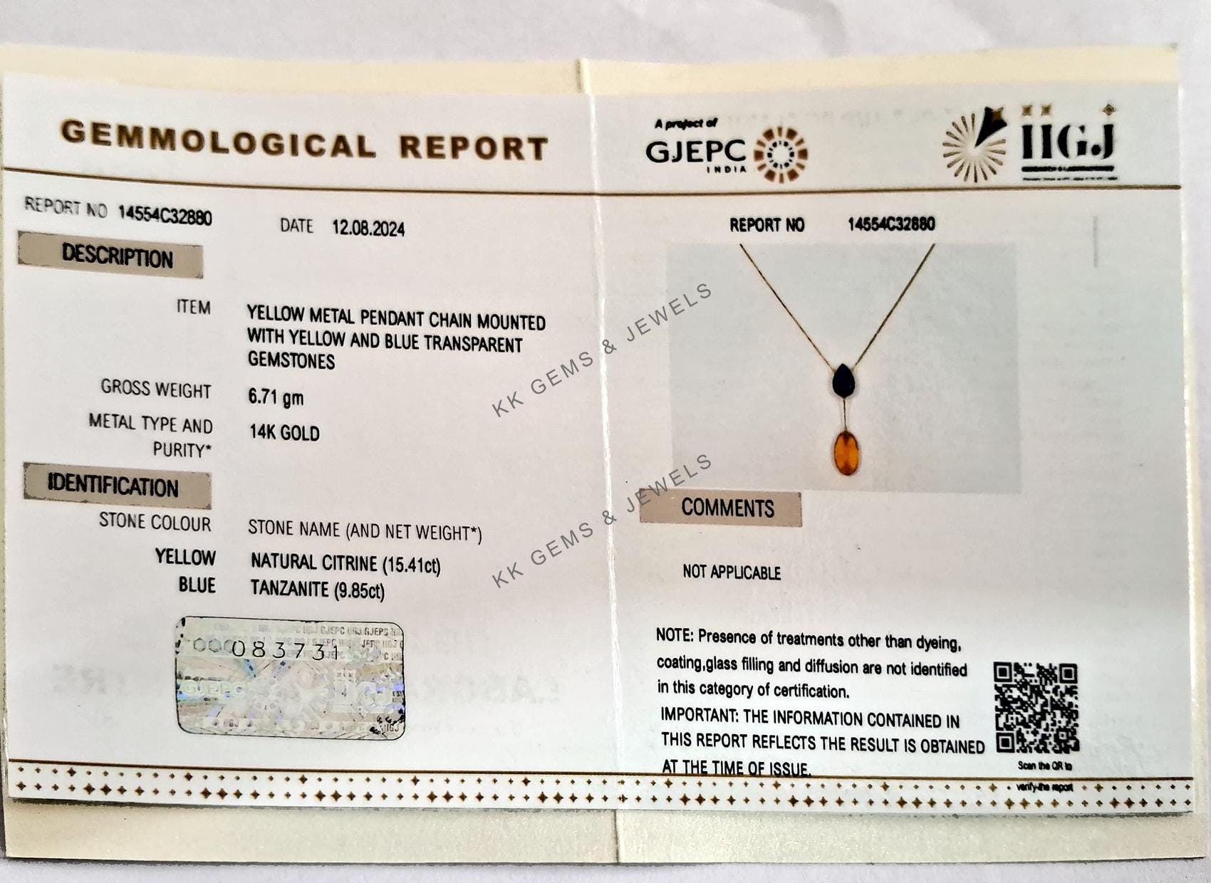 This stunning pendant is set in 14k Solid Yellow Gold with Natural Tanzanite and Citrine with utmost precision. It is an unique gemstone pendant for nearly every occasion and is completely hassle-free jewelry.