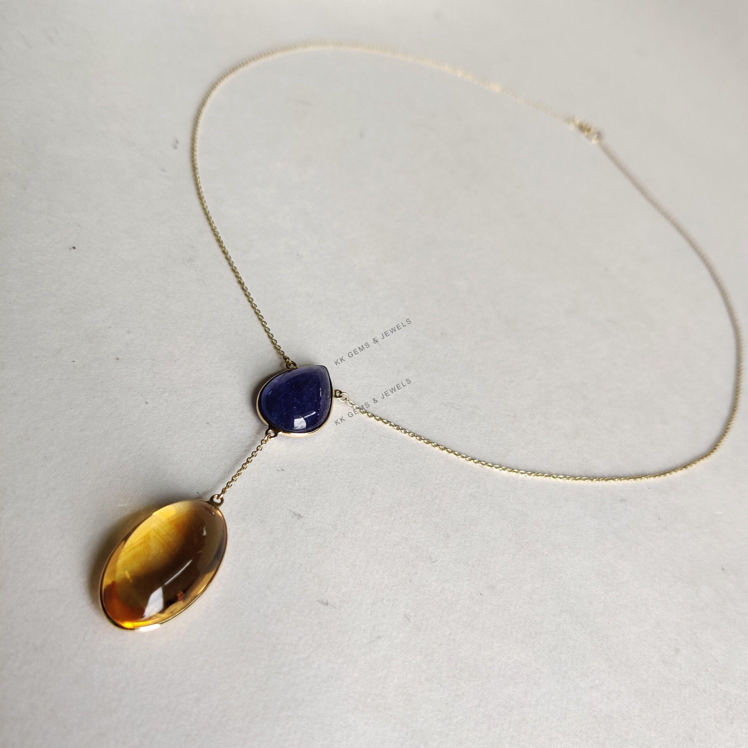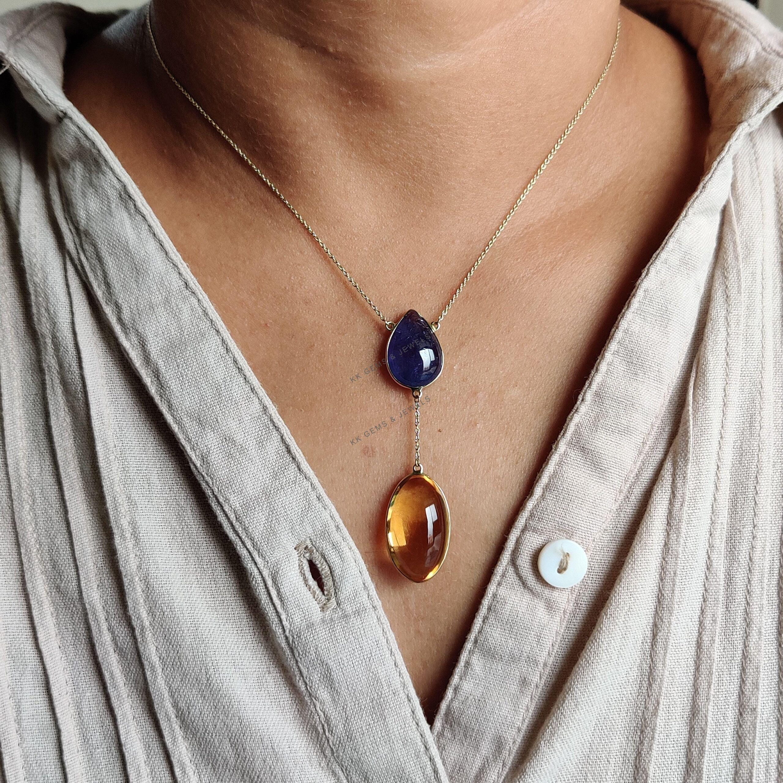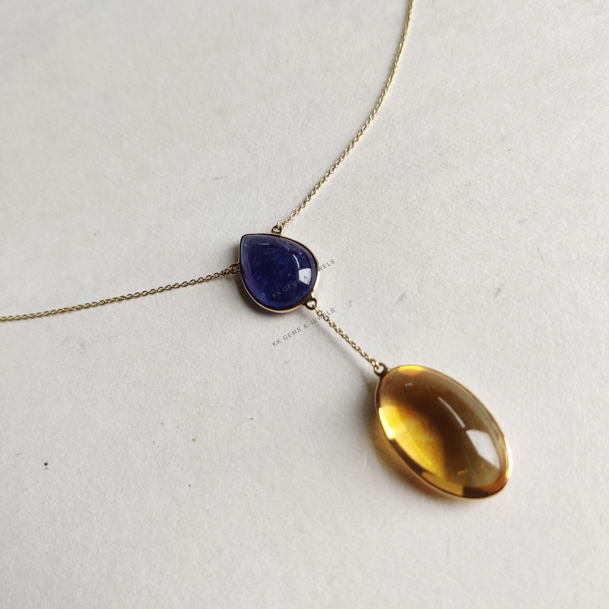 This stunning pendant is set in 14k Solid Yellow Gold with Natural Tanzanite and Citrine with utmost precision. It is an unique gemstone pendant for nearly every occasion and is completely hassle-free jewelry. ✓ ABOUT GEMSTONE Tanzanite is a mesmerizing…