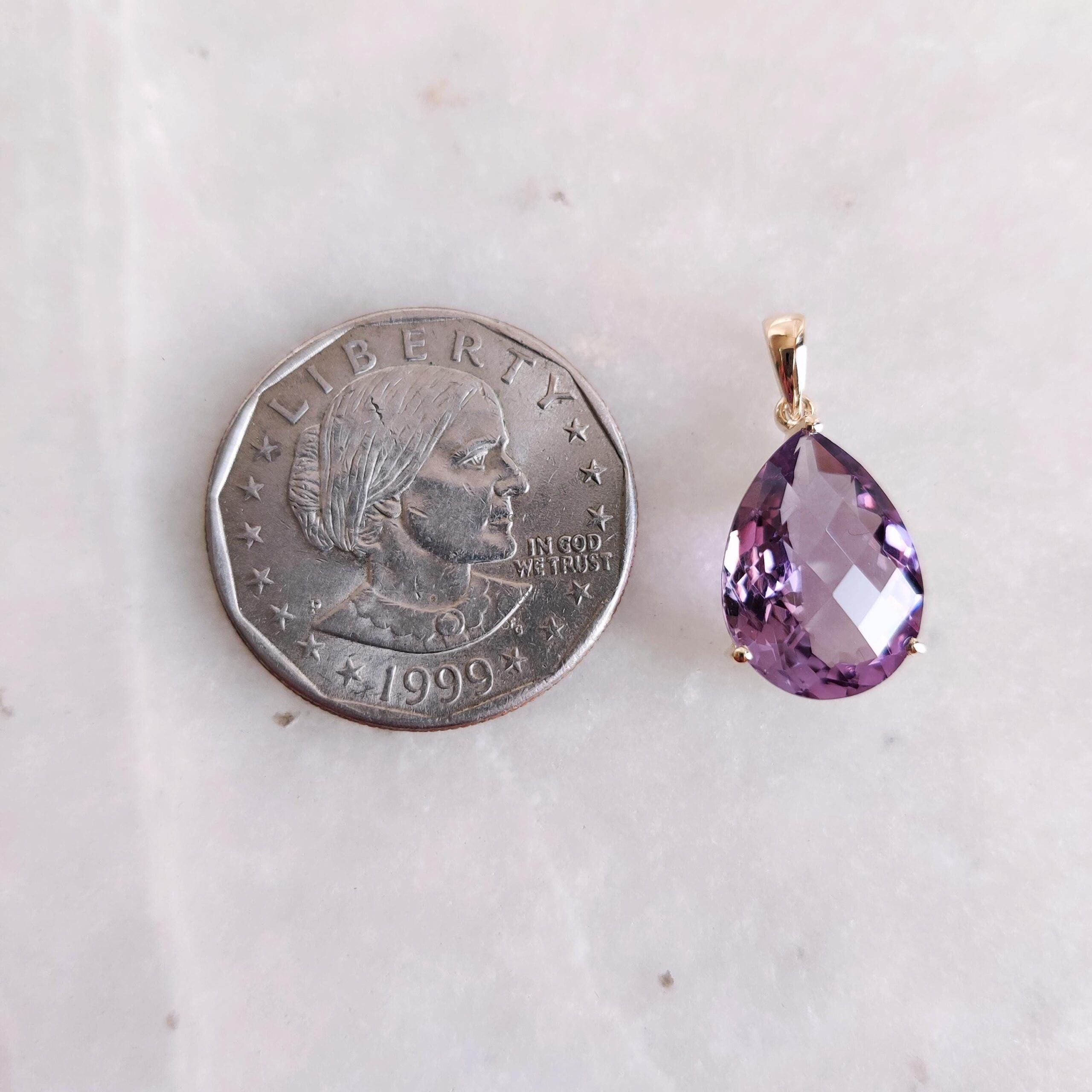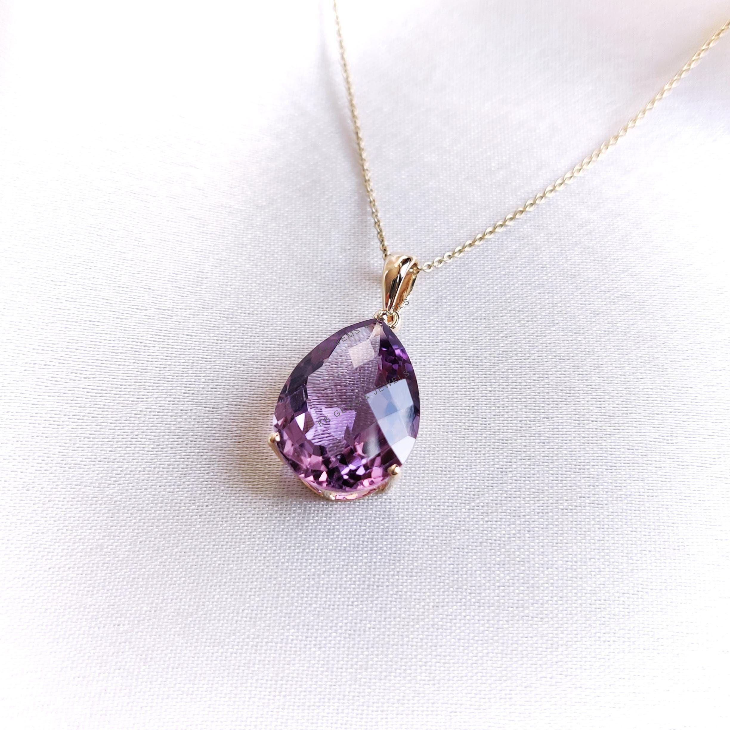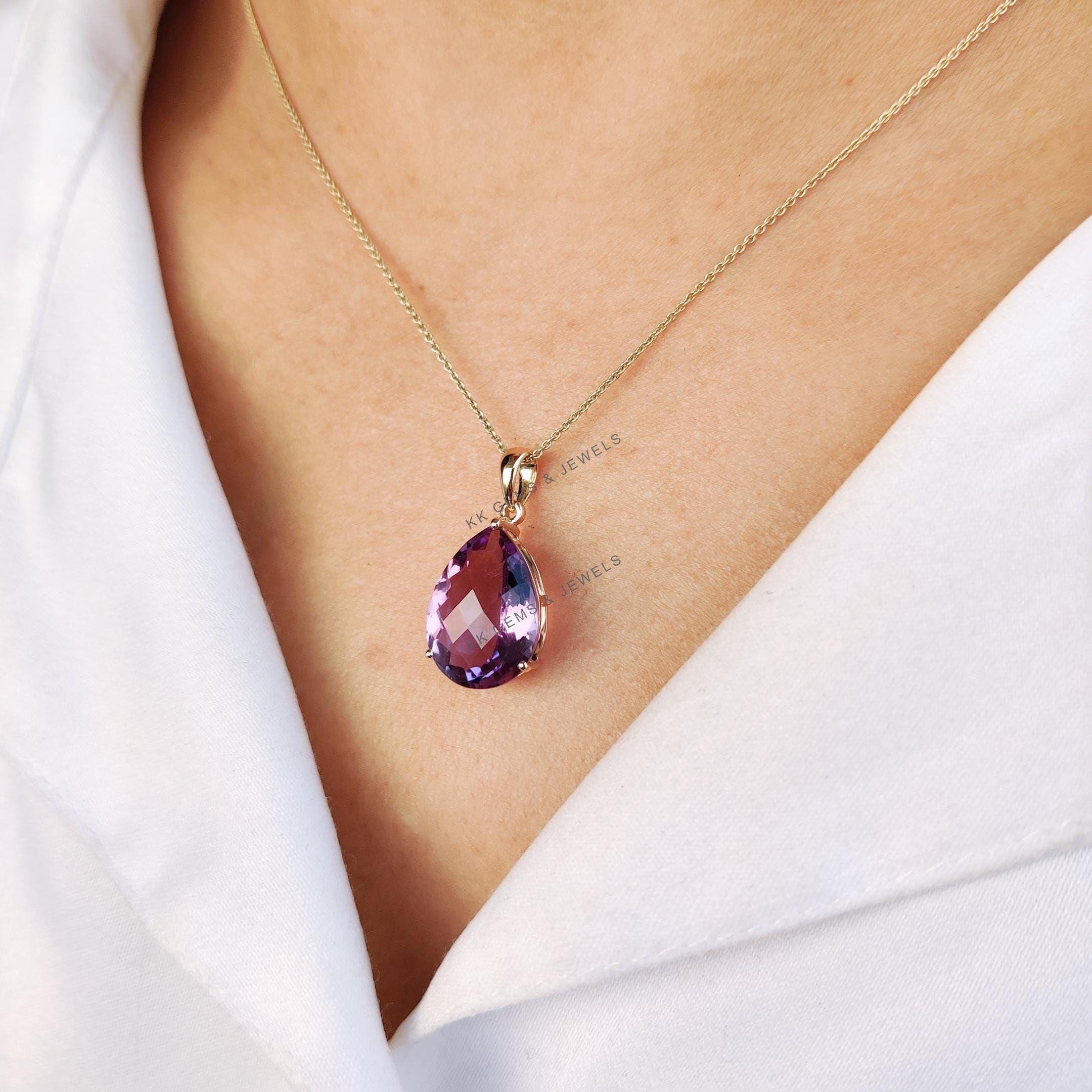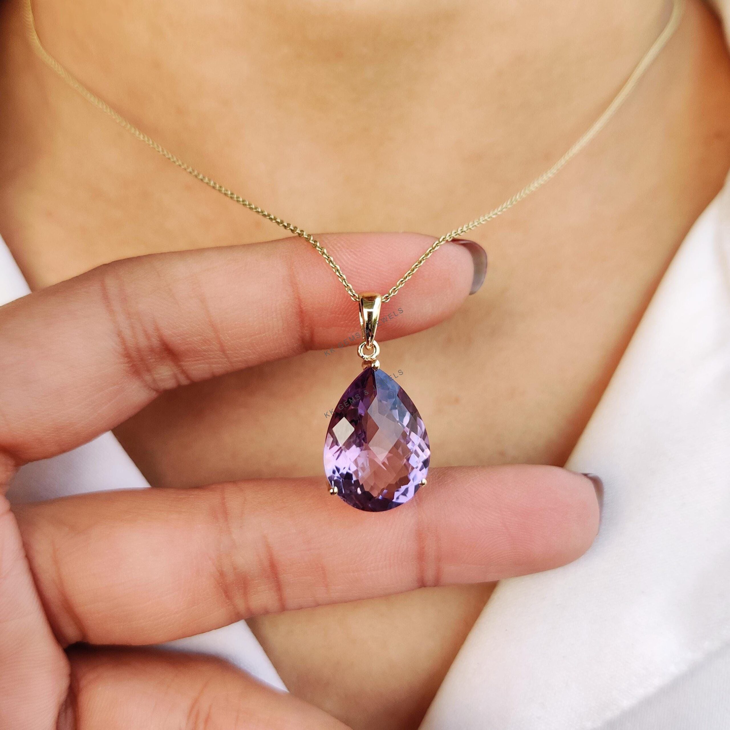 This stunning pendant is set in 14K Solid Yellow Gold with Natural Purple Amethyst with utmost precision. It is an unique gemstone pendant for nearly every occasion and is completely hassle-free jewelry.