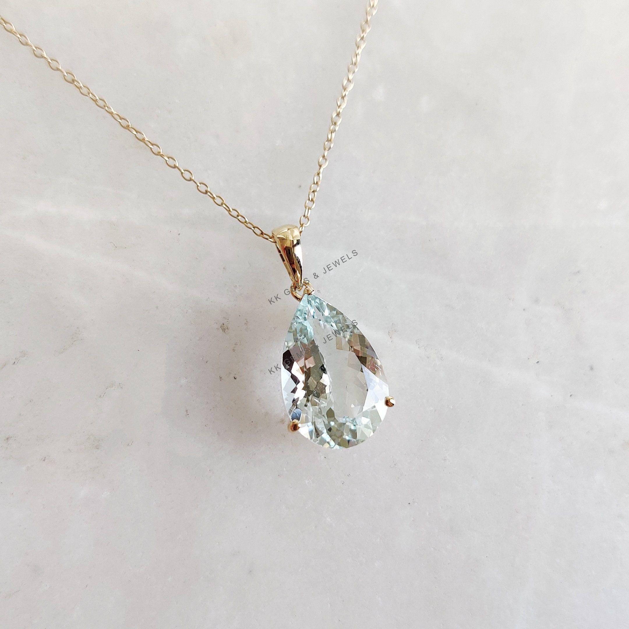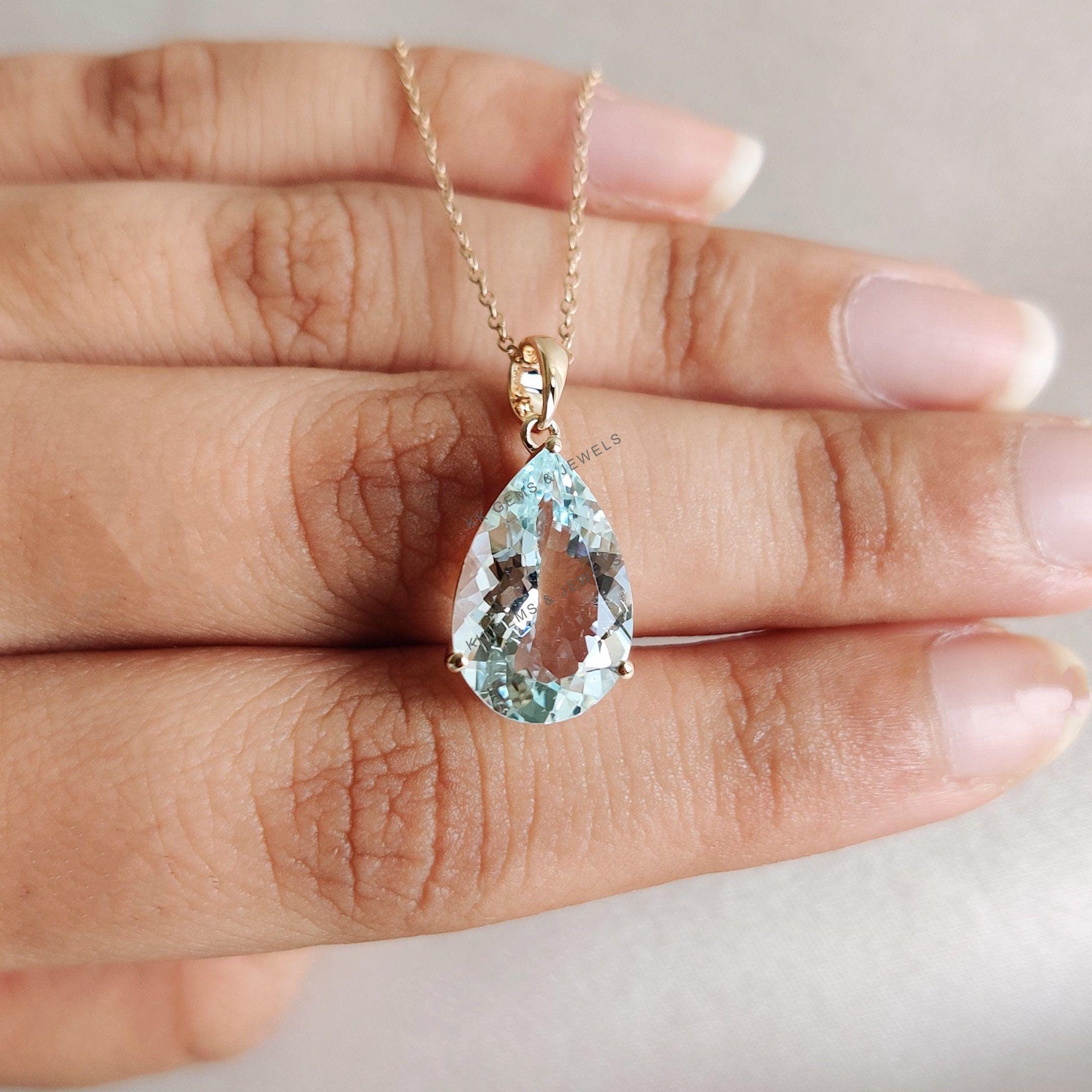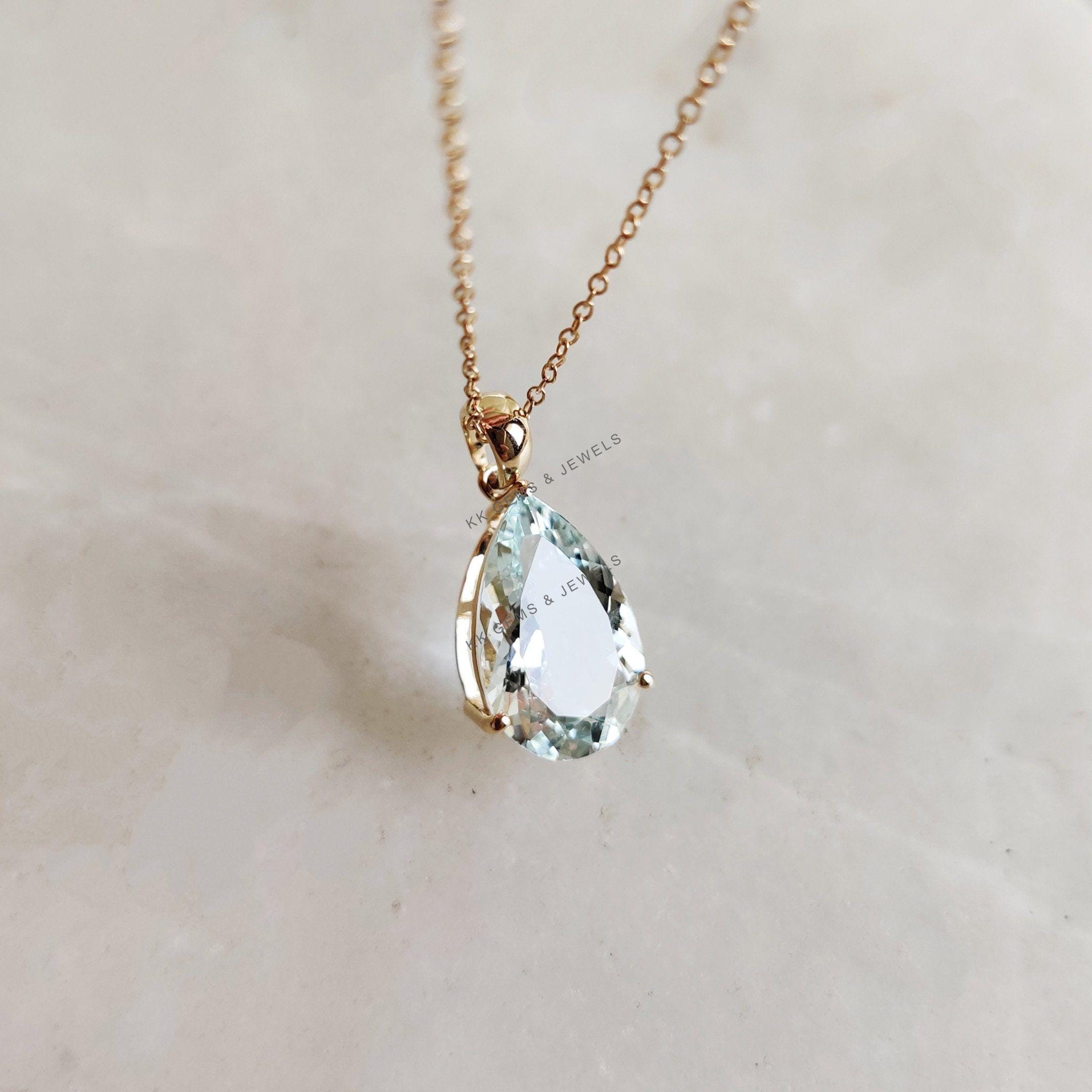 1 review for Pear Cut Natural Aquamarine Birthstone Pendant Set in 14K Solid Gold