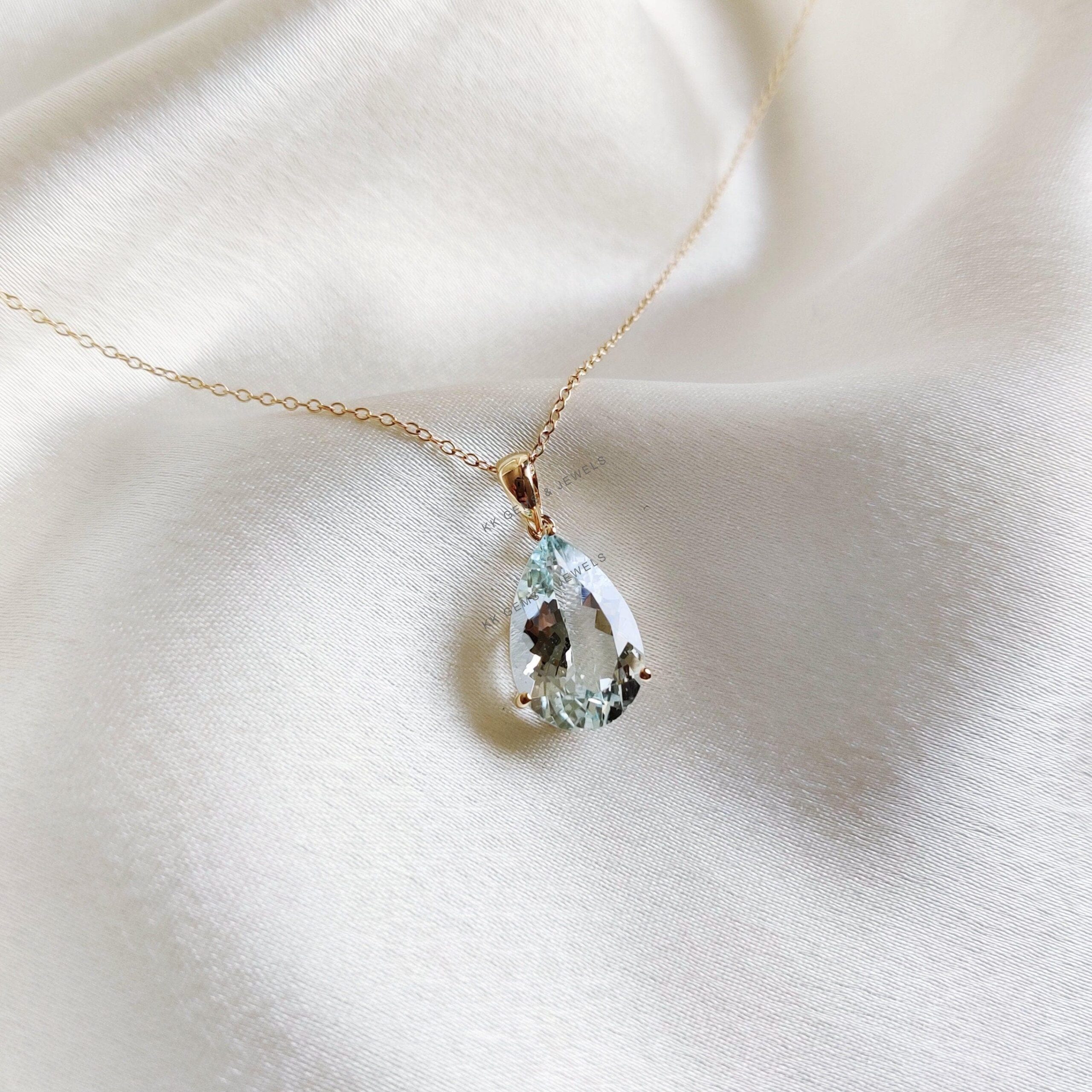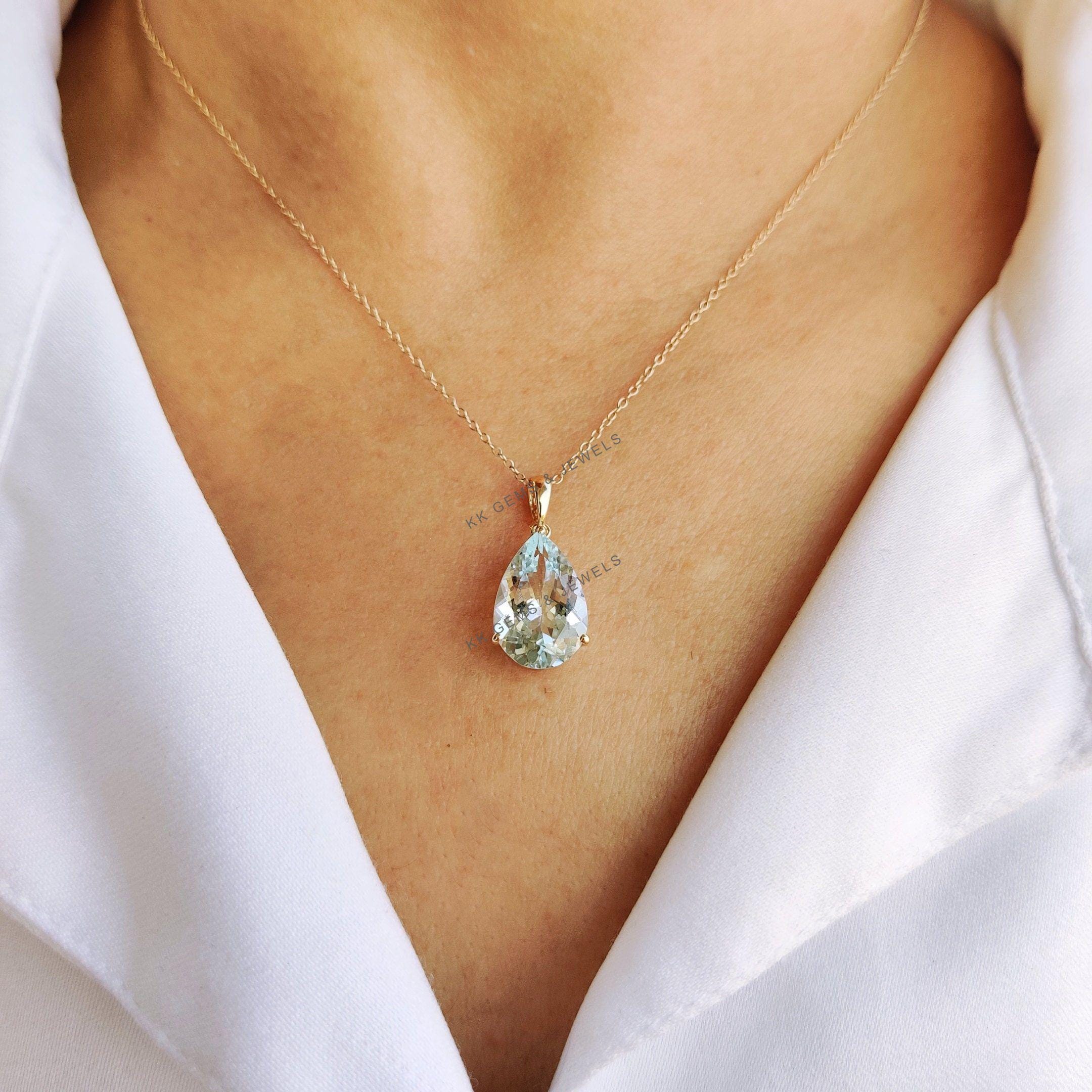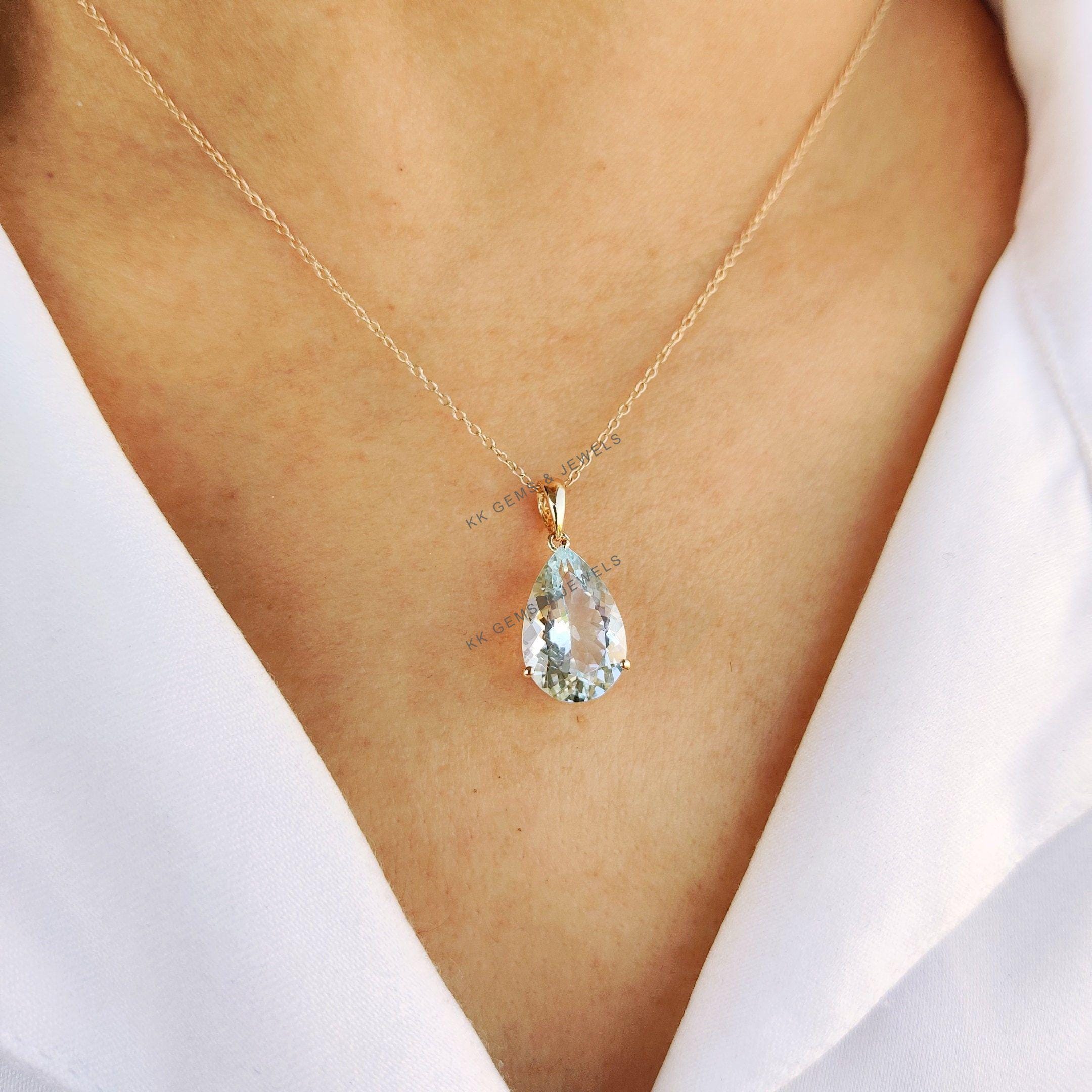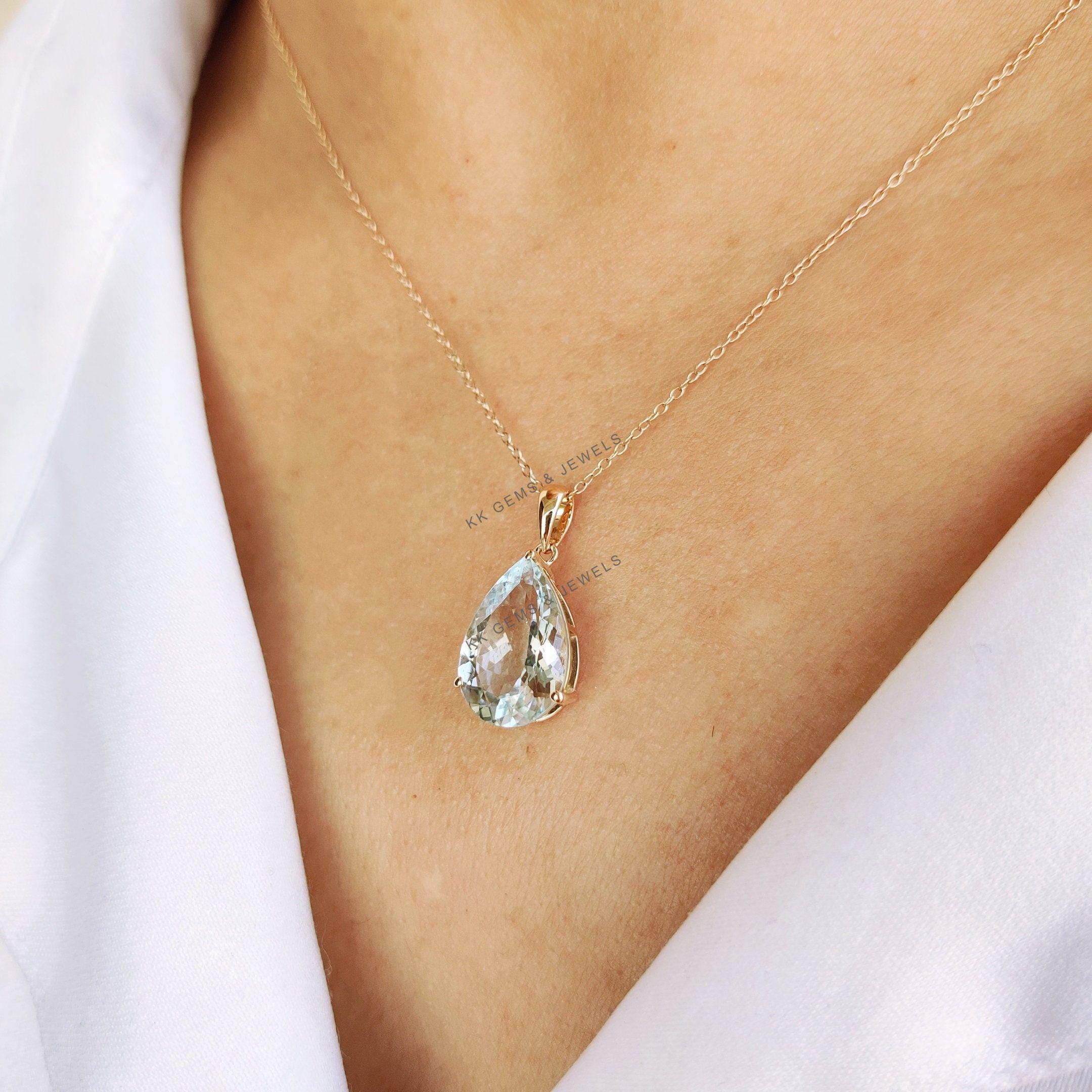 1 review for Pear Cut Natural Aquamarine Birthstone Pendant Set in 14K Solid Gold