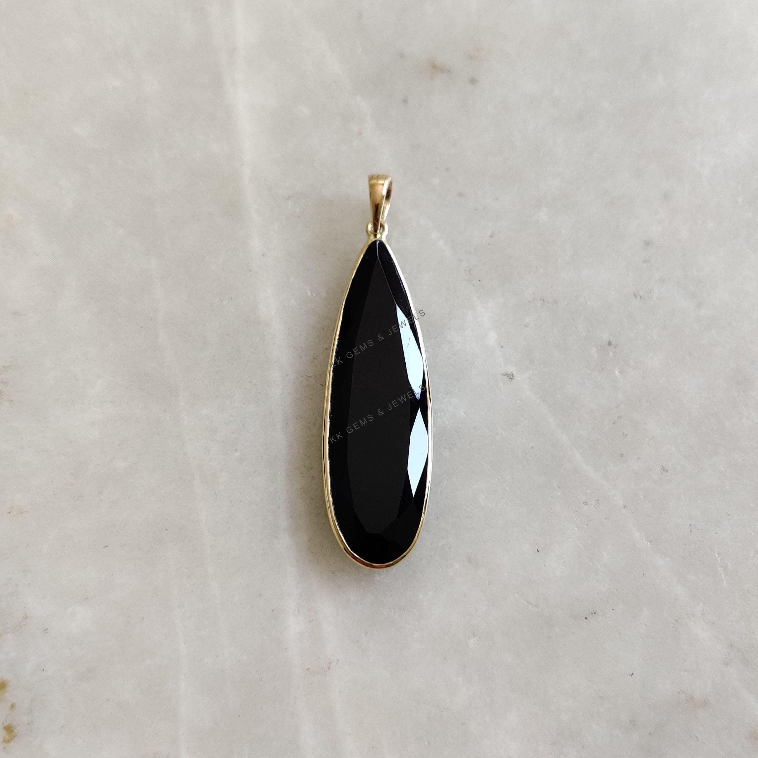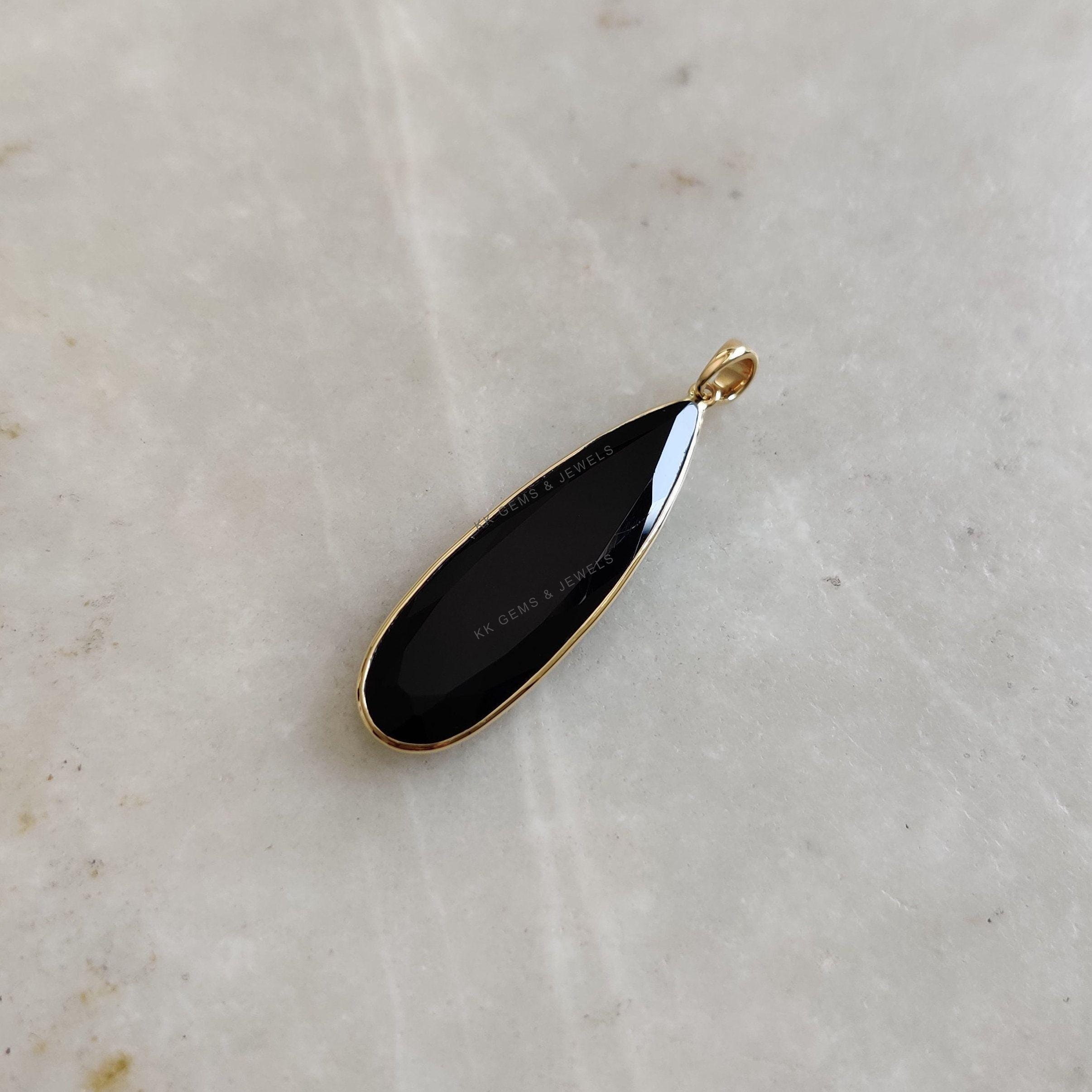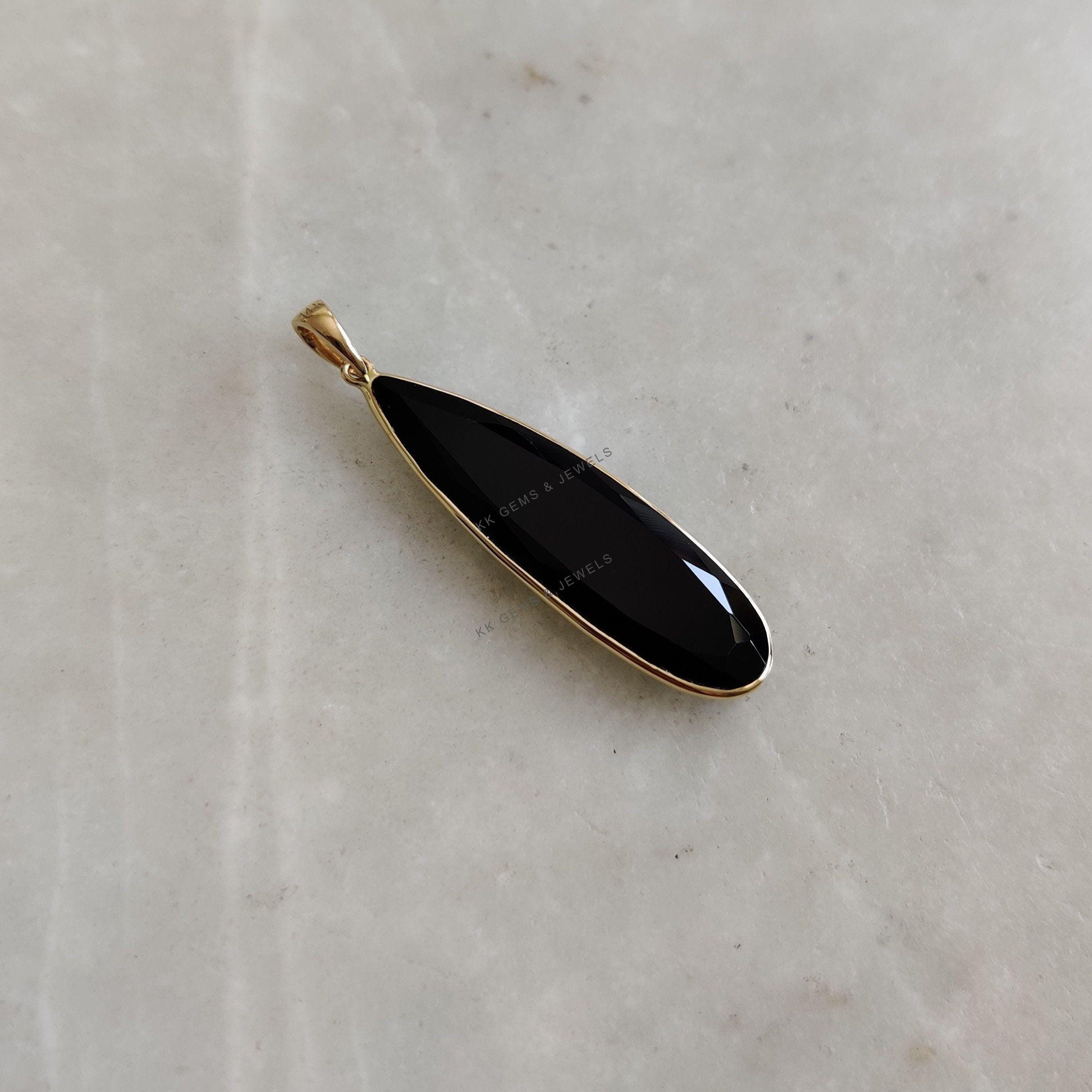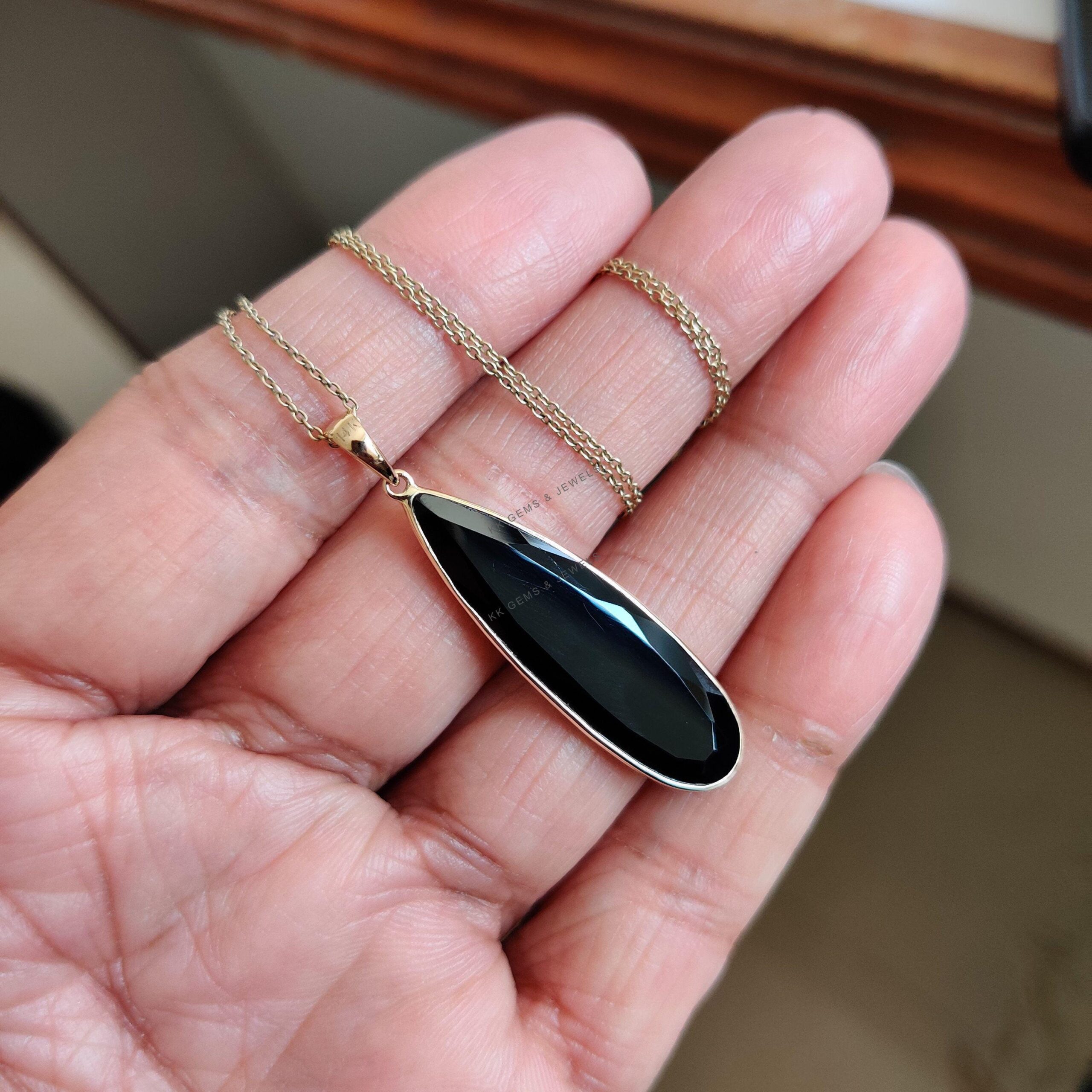 1 review for Pear Cut Natural Black Onyx Birthstone Pendant Set in 14K Solid Gold