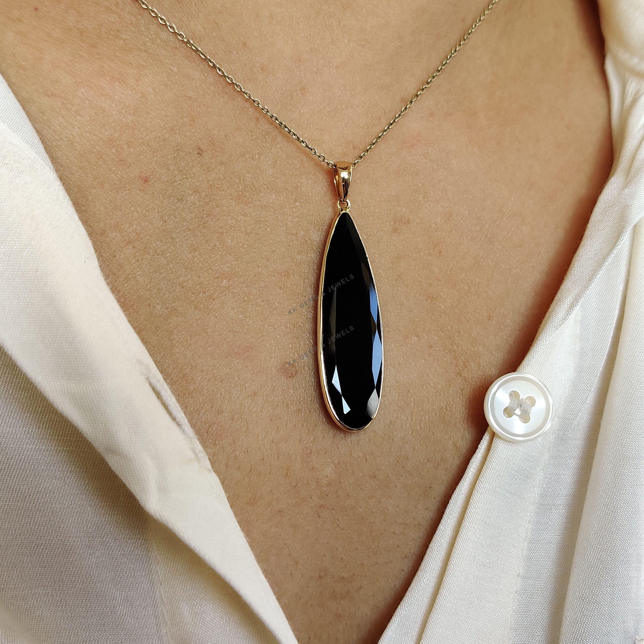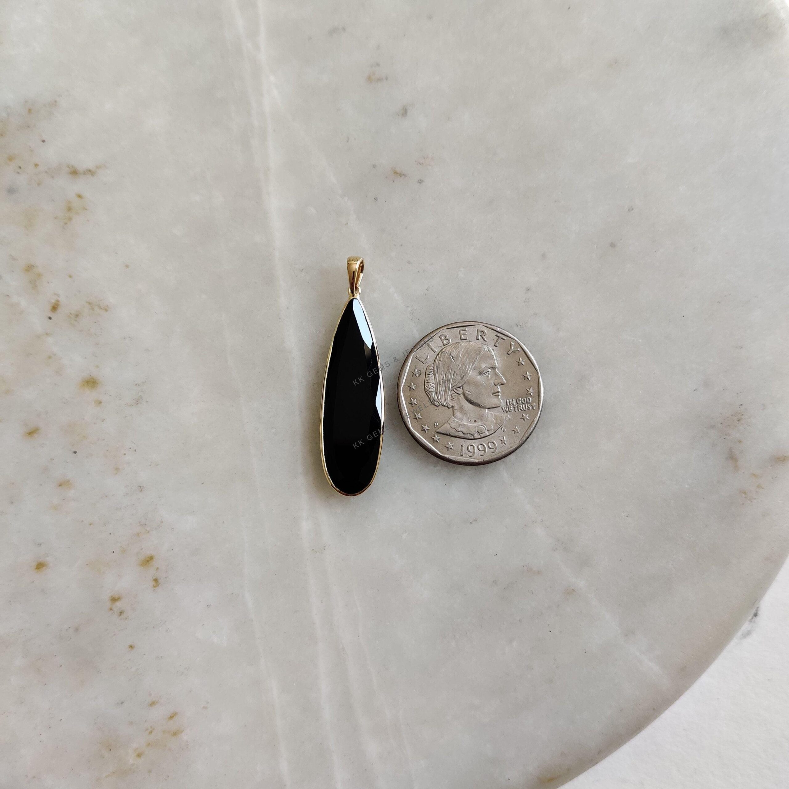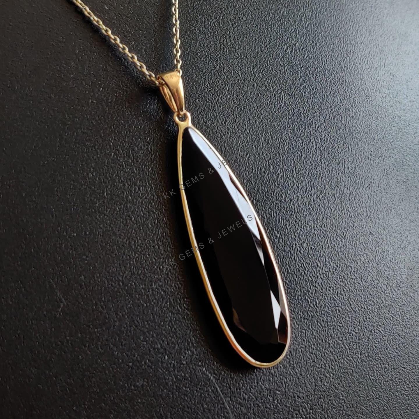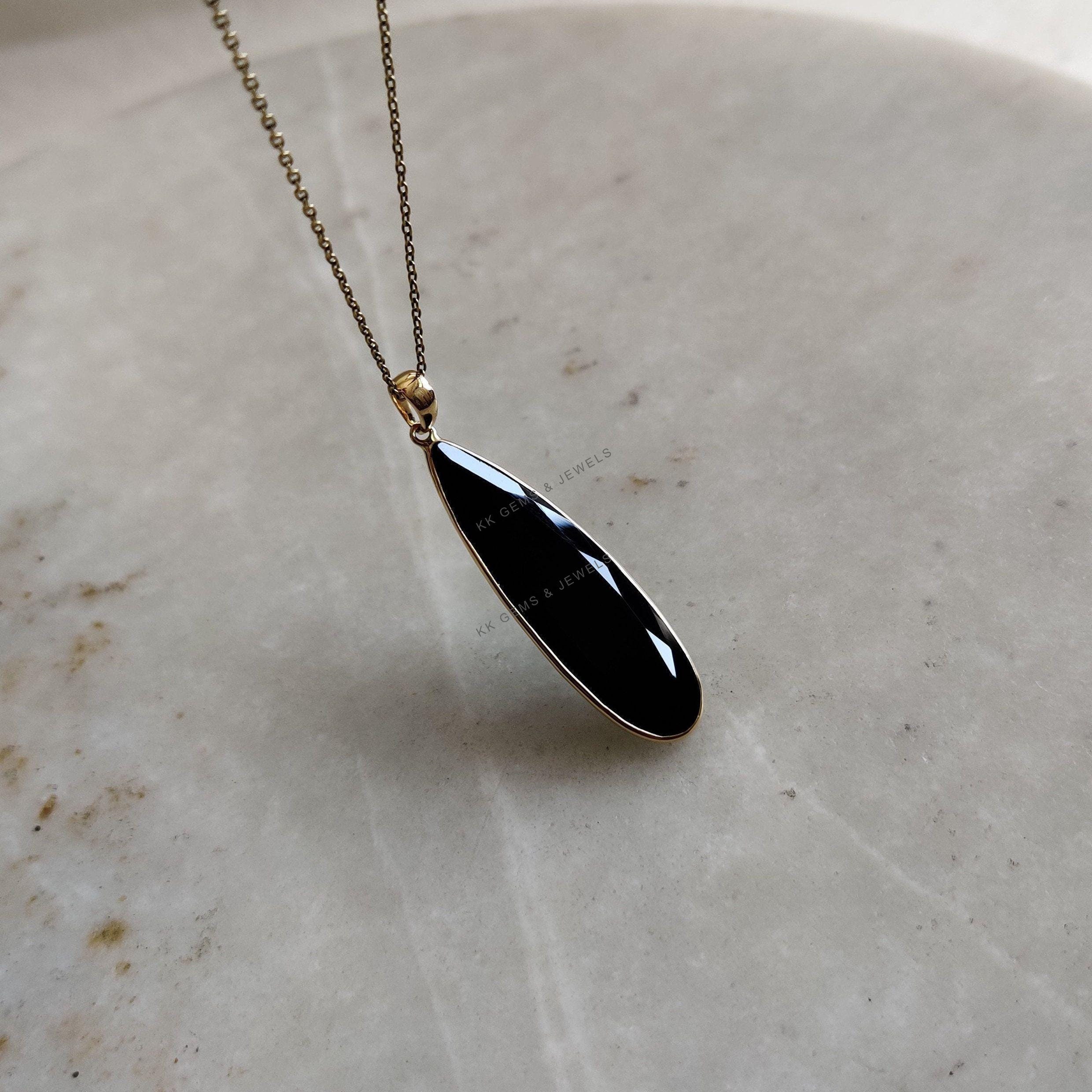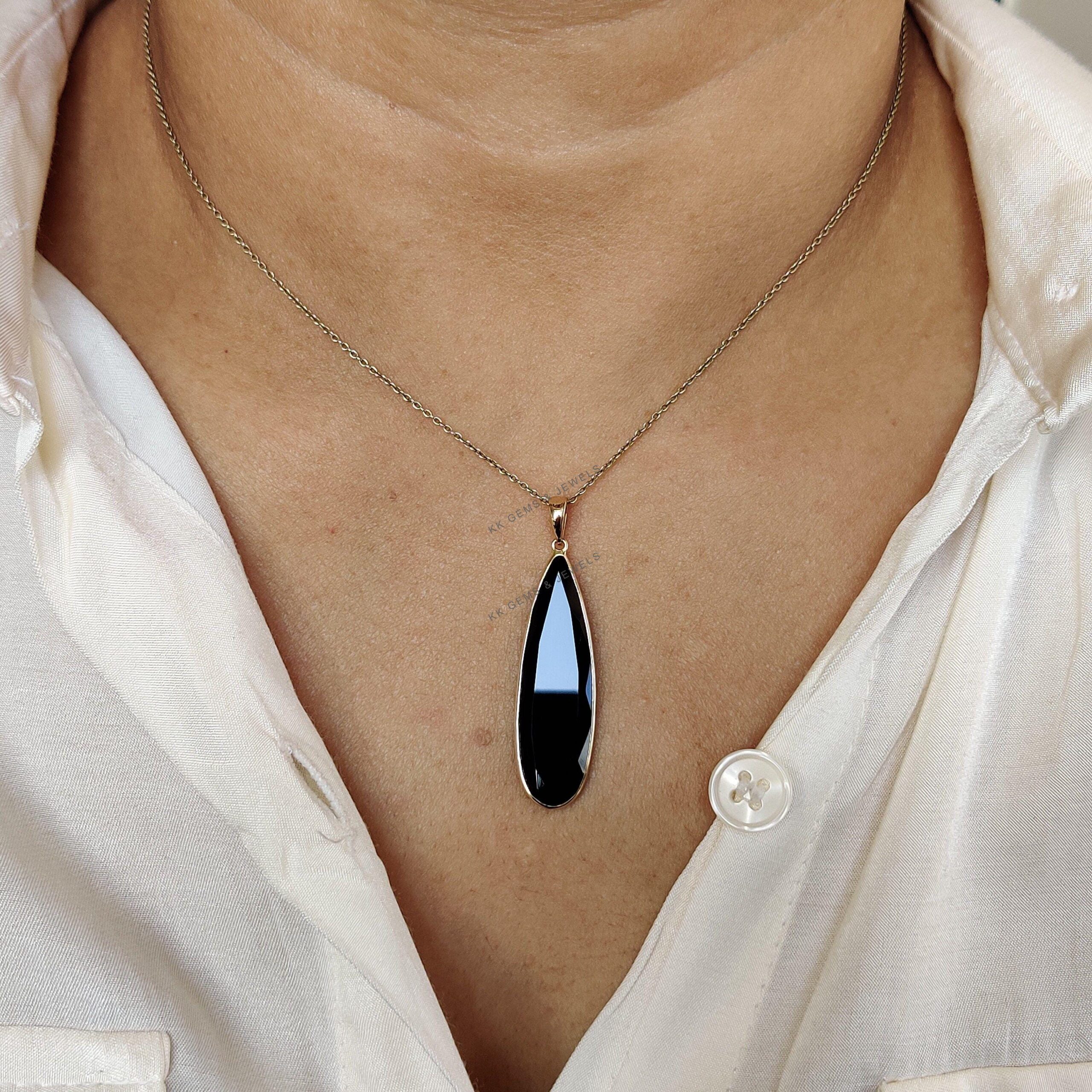 1 review for Pear Cut Natural Black Onyx Birthstone Pendant Set in 14K Solid Gold