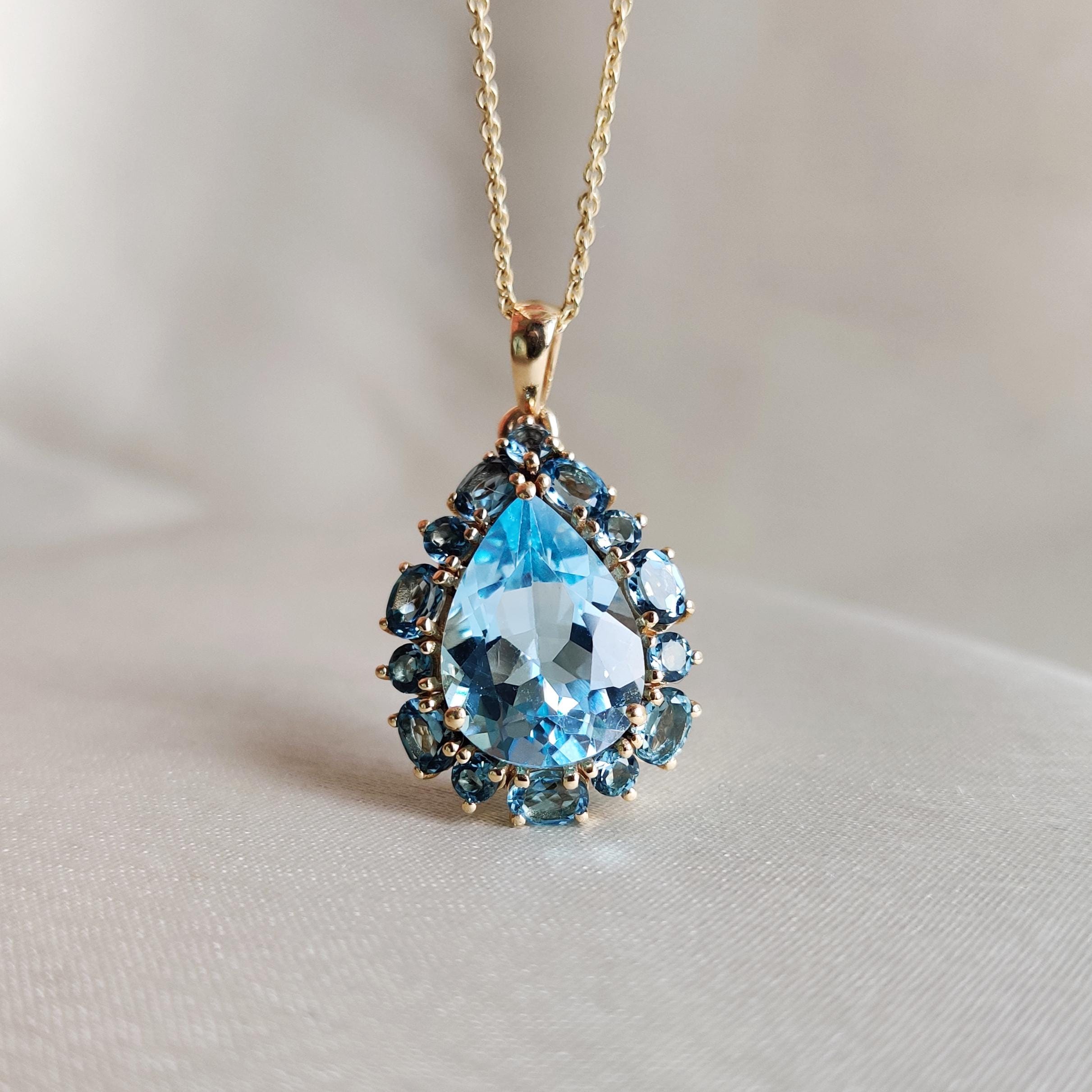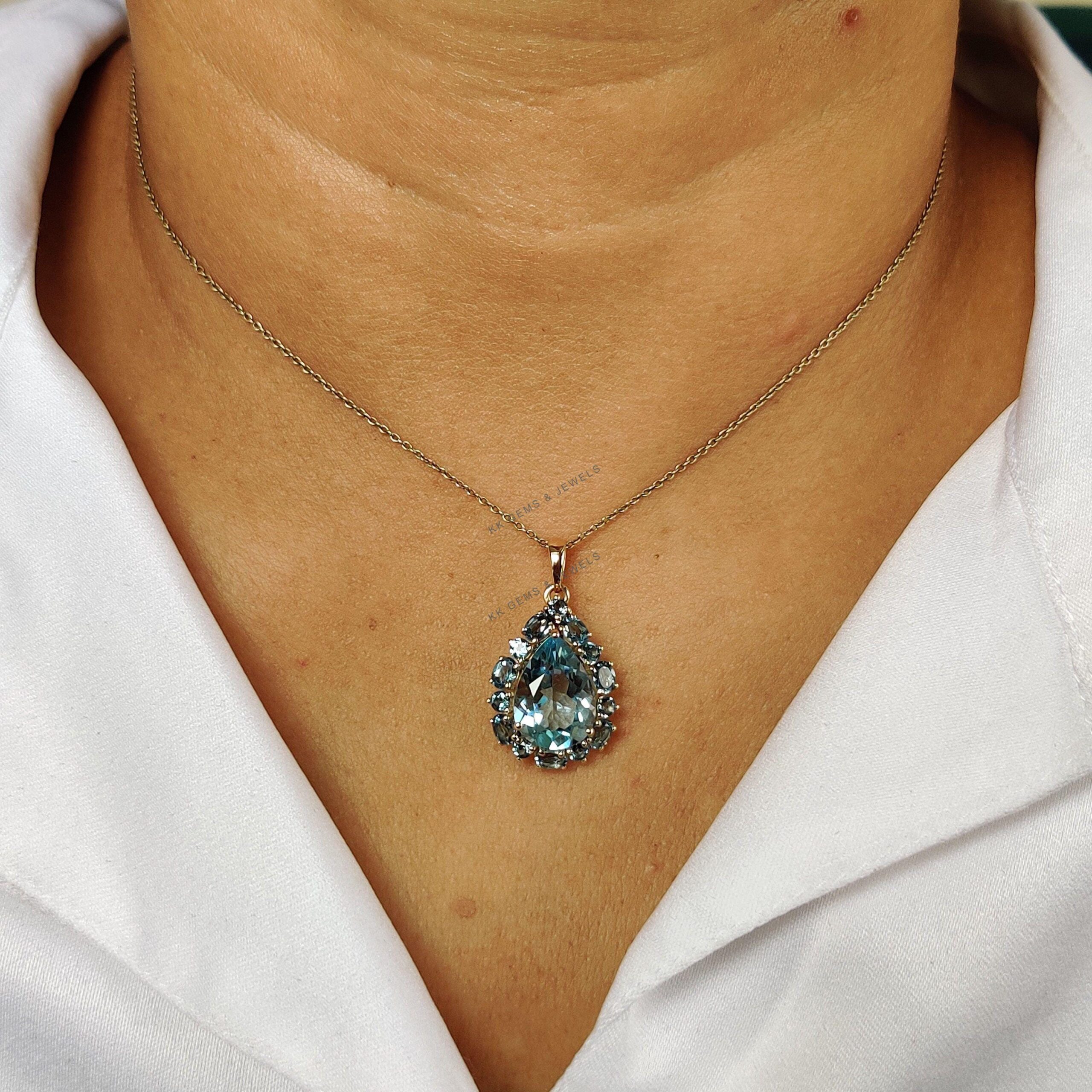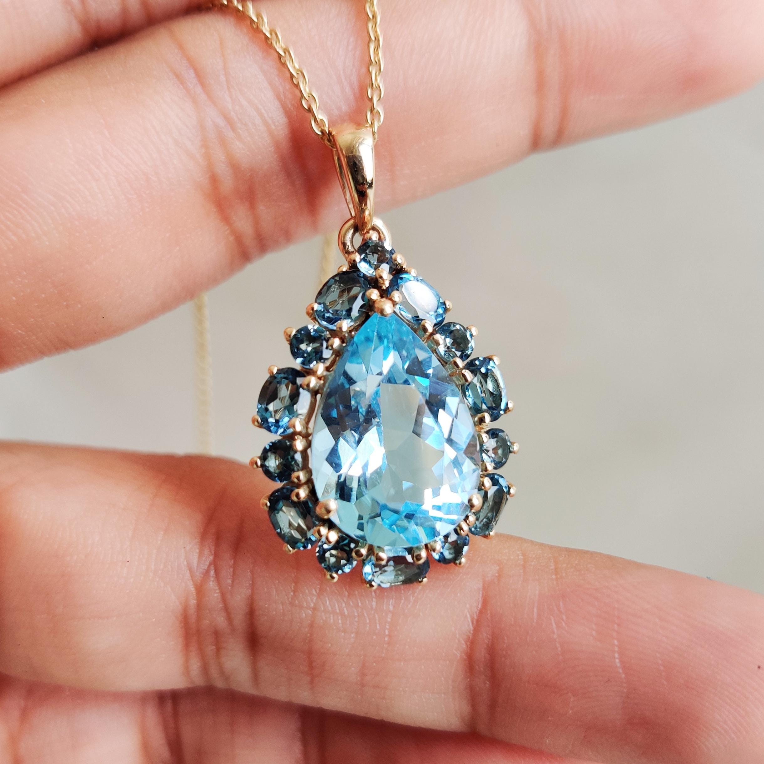 Be the first to review “Pear Cut Natural Blue Topaz Multi Stone Pendant Set in 14K Solid Gold”