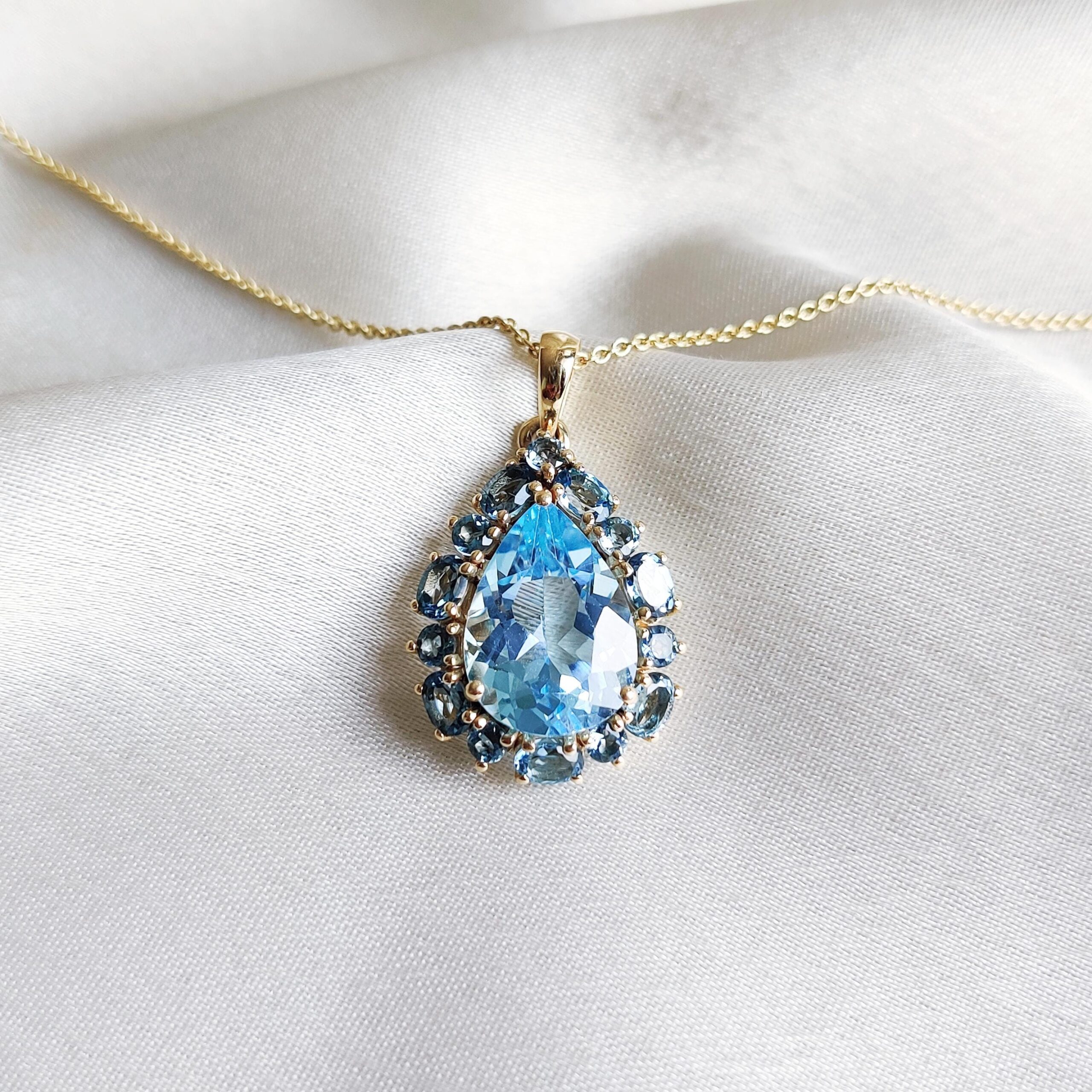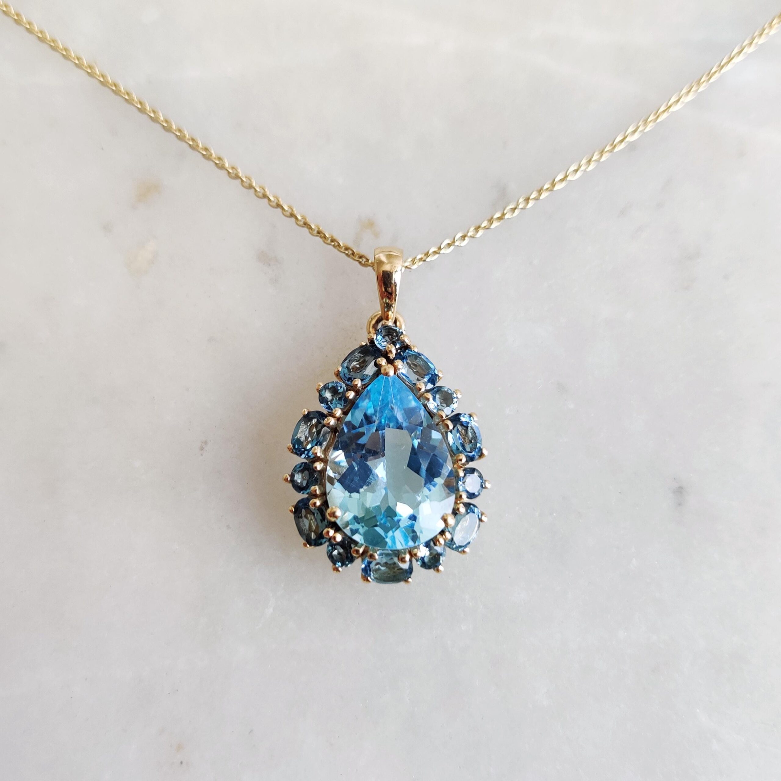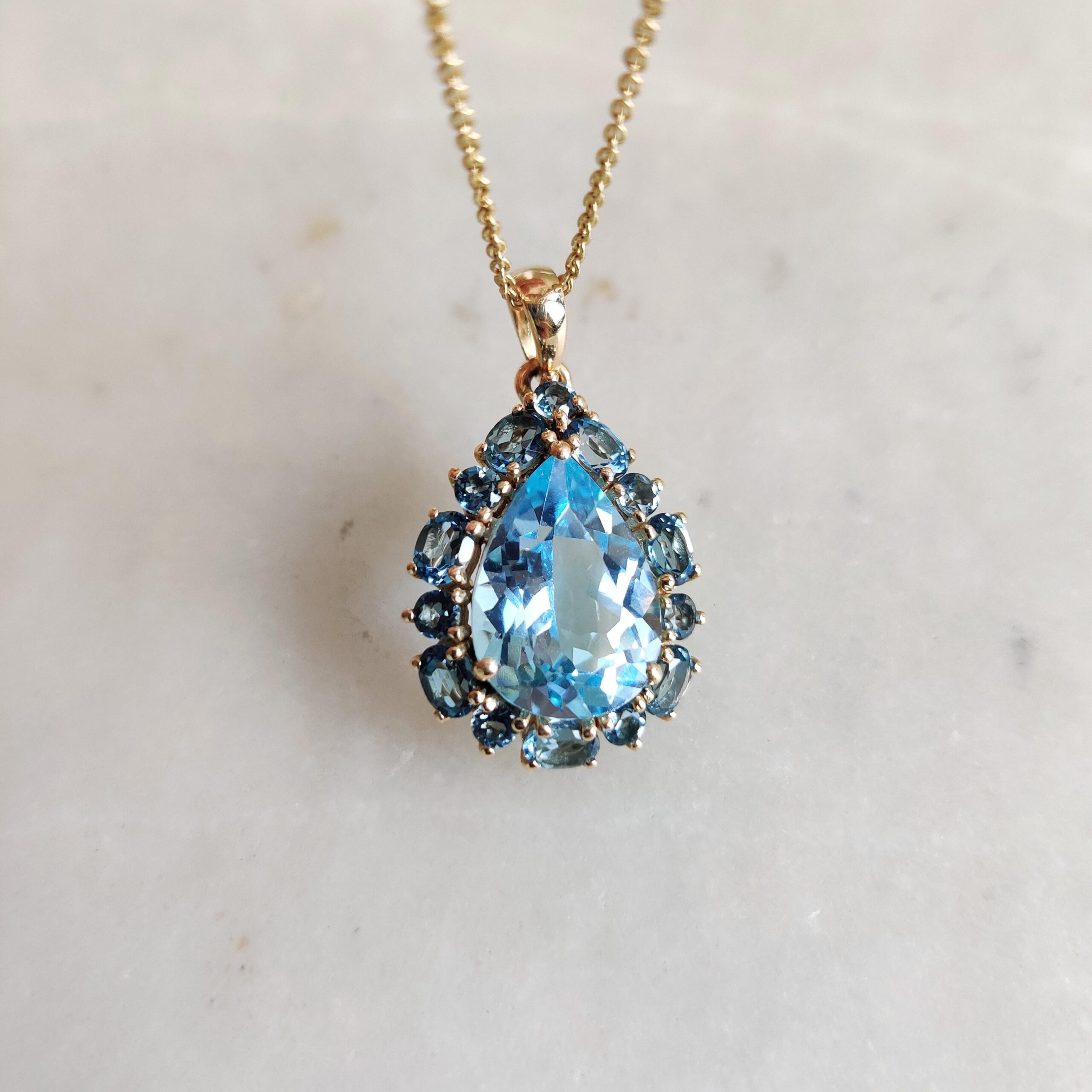 Be the first to review “Pear Cut Natural Blue Topaz Multi Stone Pendant Set in 14K Solid Gold”