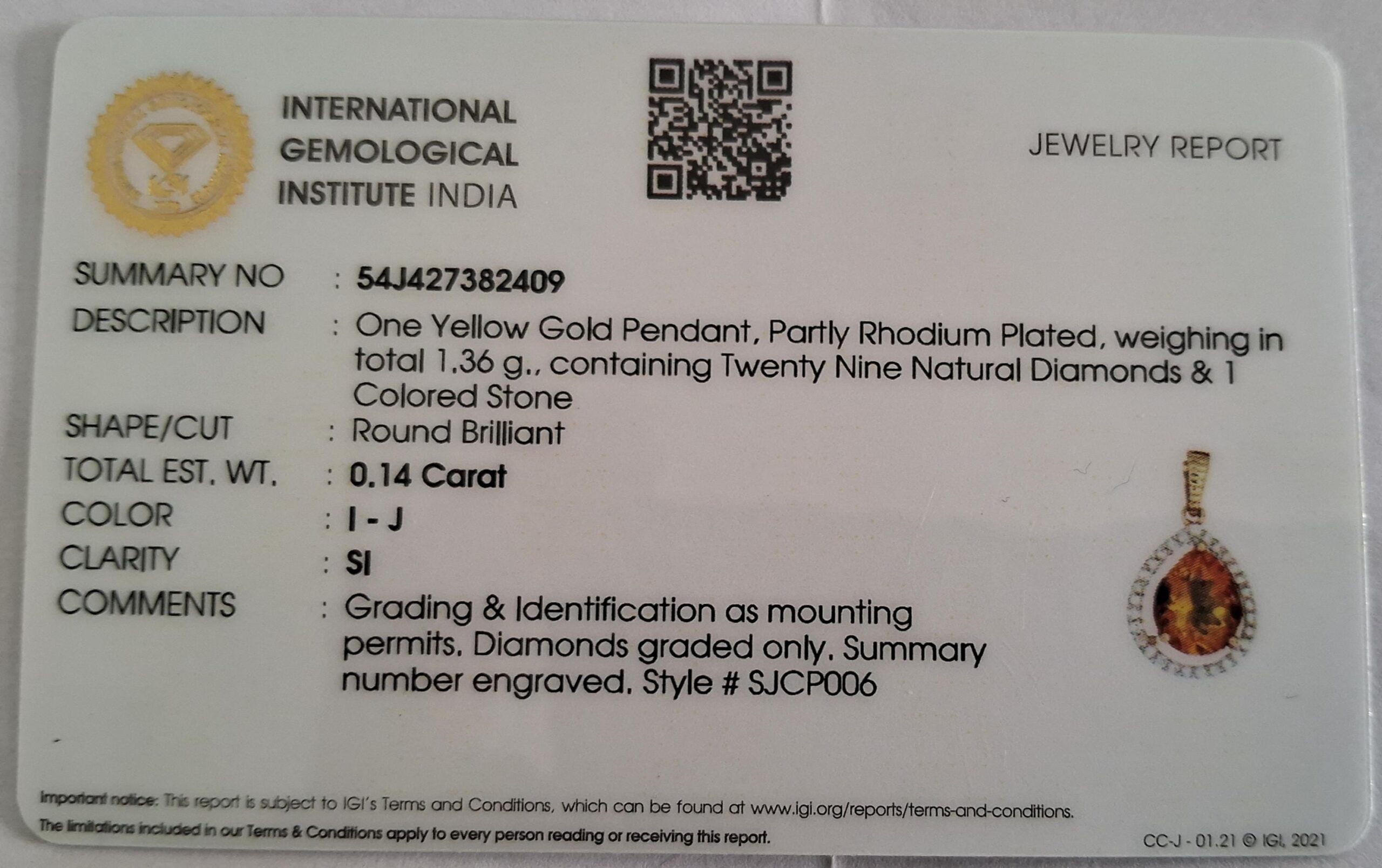 • Total Weight of the Pendant: 1.36 gram