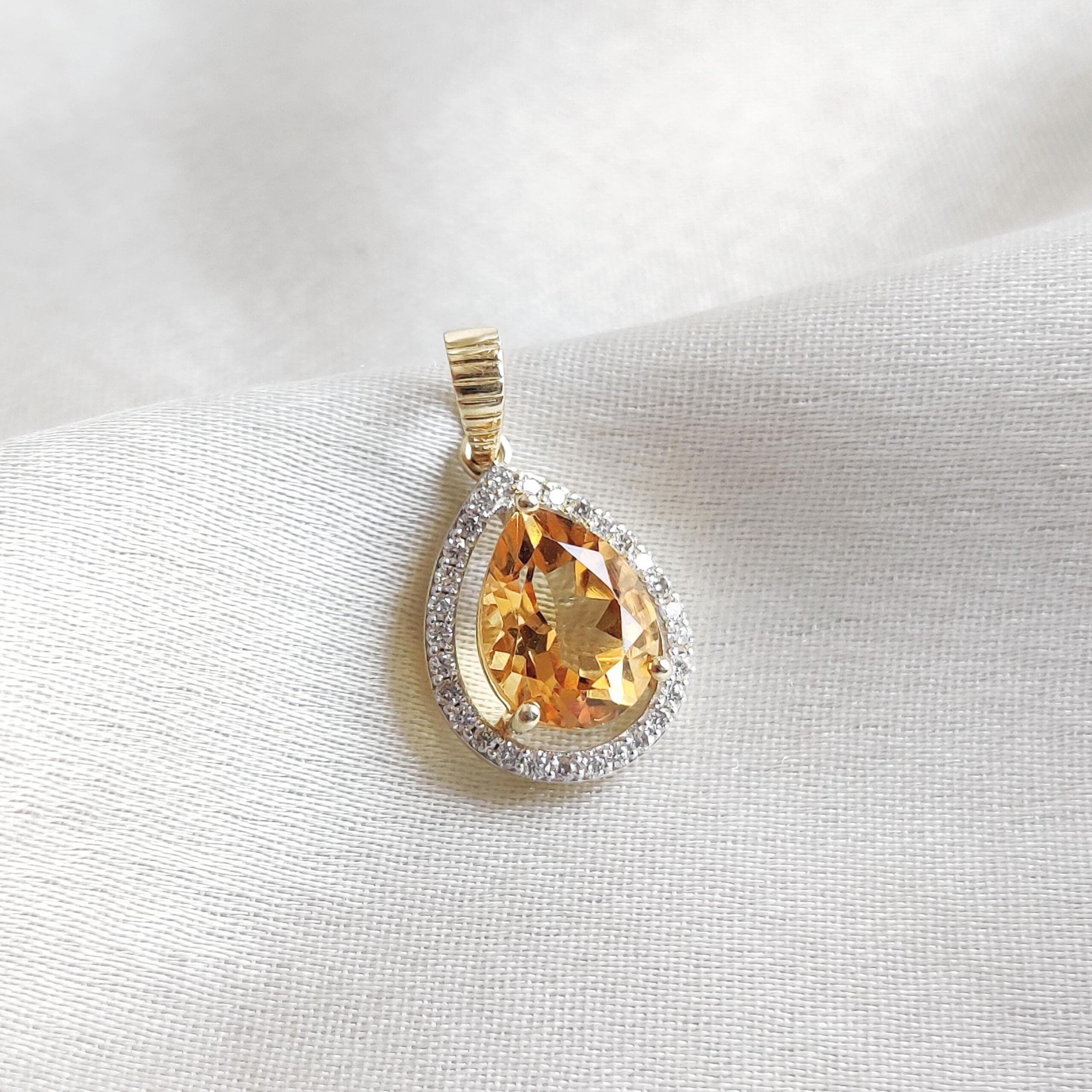 This stunning pendant is set in 14k Solid Yellow Gold with Natural Citrine and Diamond with utmost precision. It is an unique gemstone pendant for nearly every occasion and is completely hassle-free jewelry.