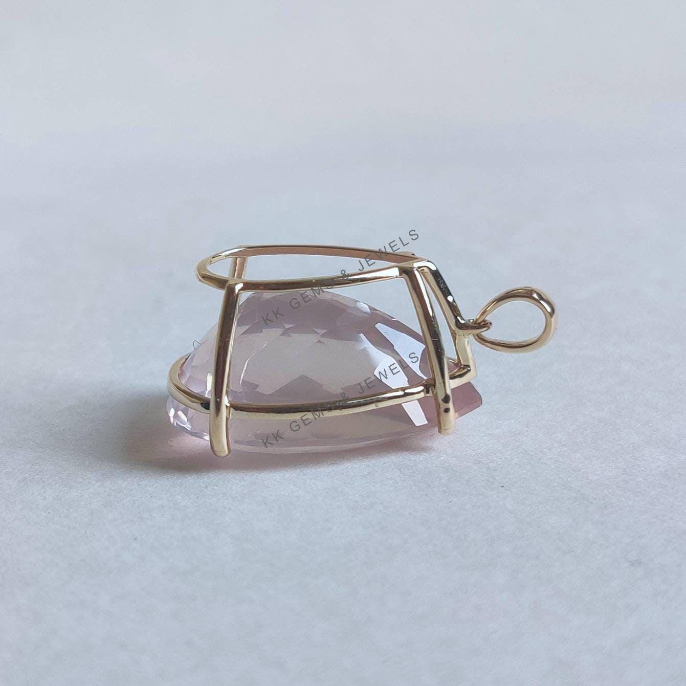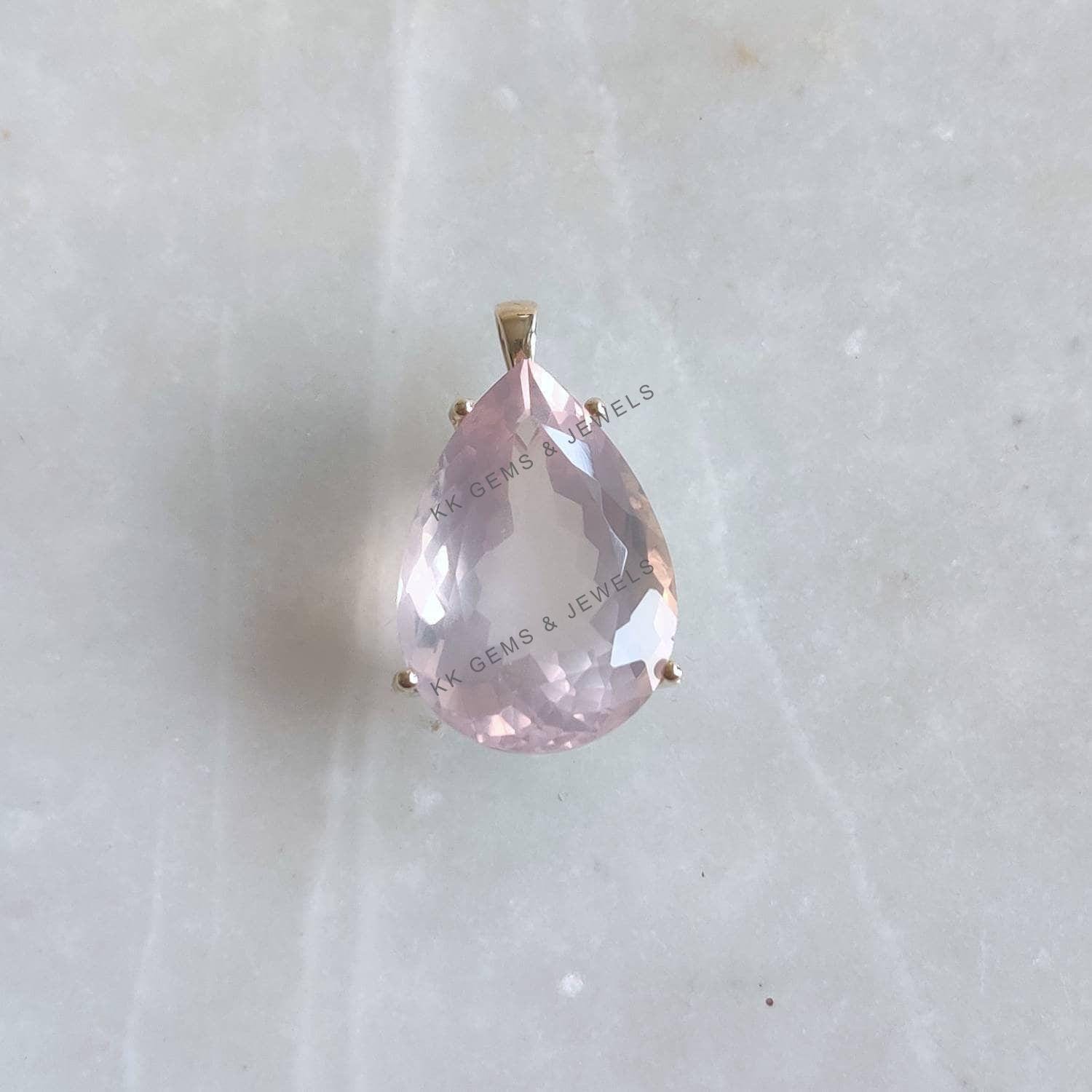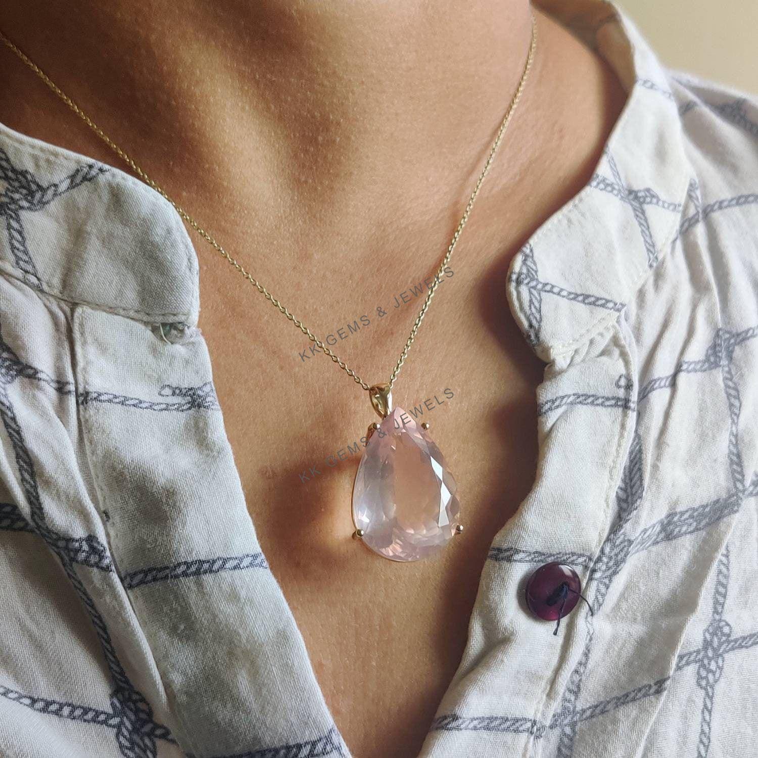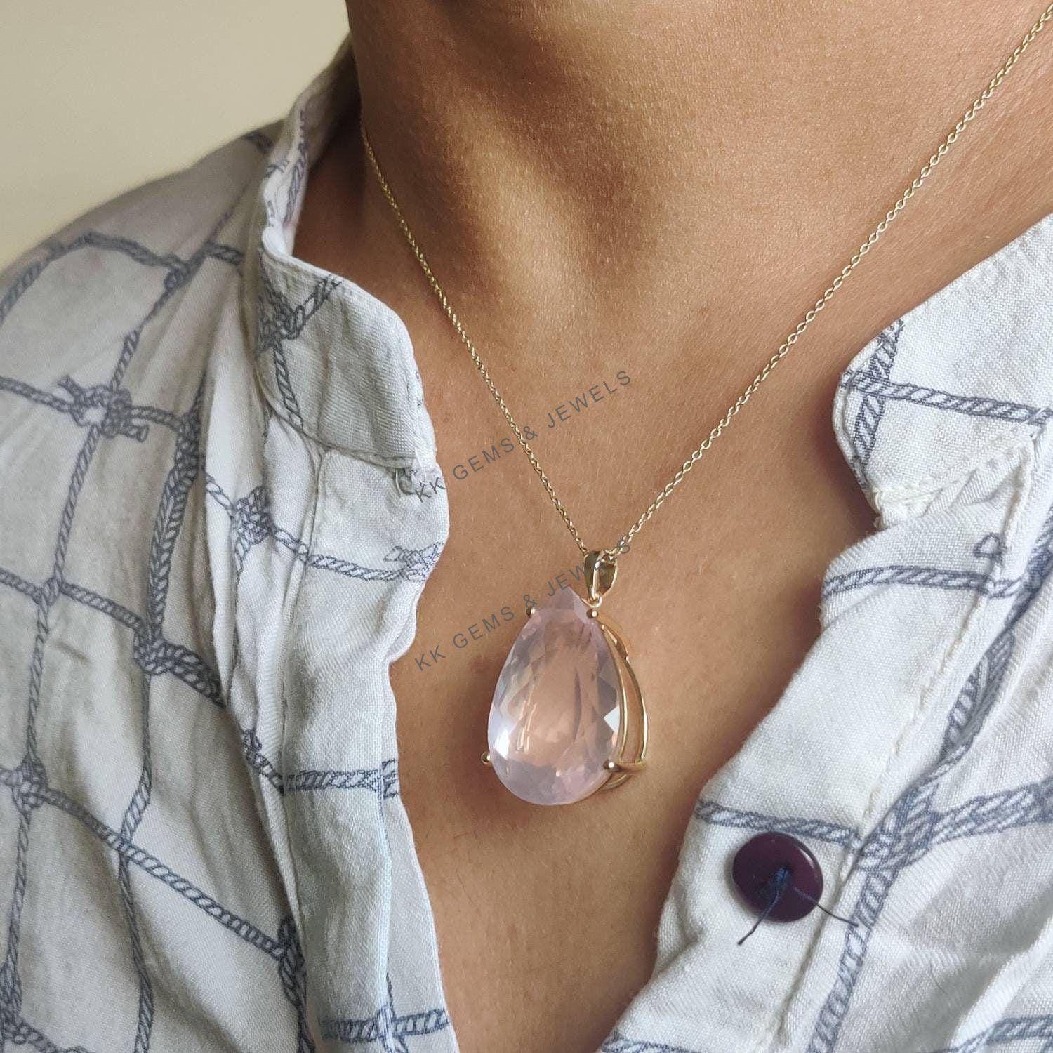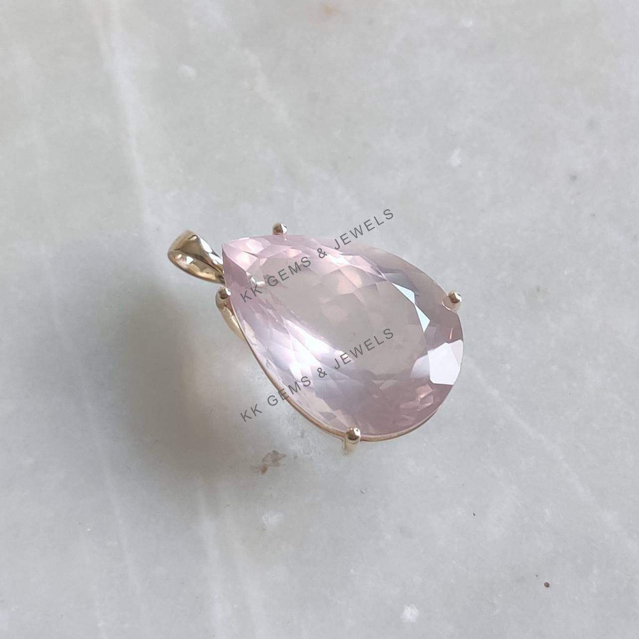Be the first to review “Pear Cut Natural Rose Quartz Birthstone Pendant, Set in 14K Solid Gold”