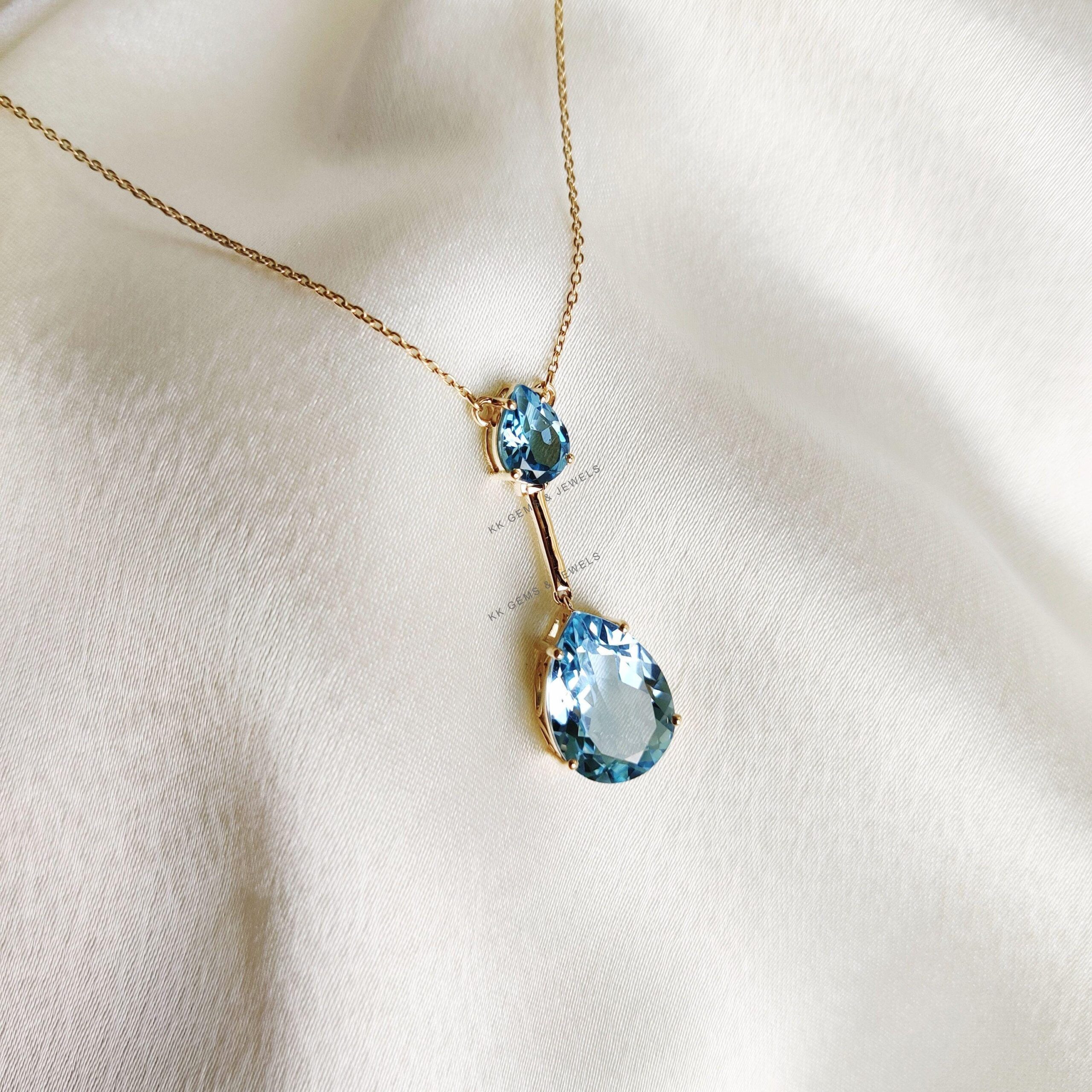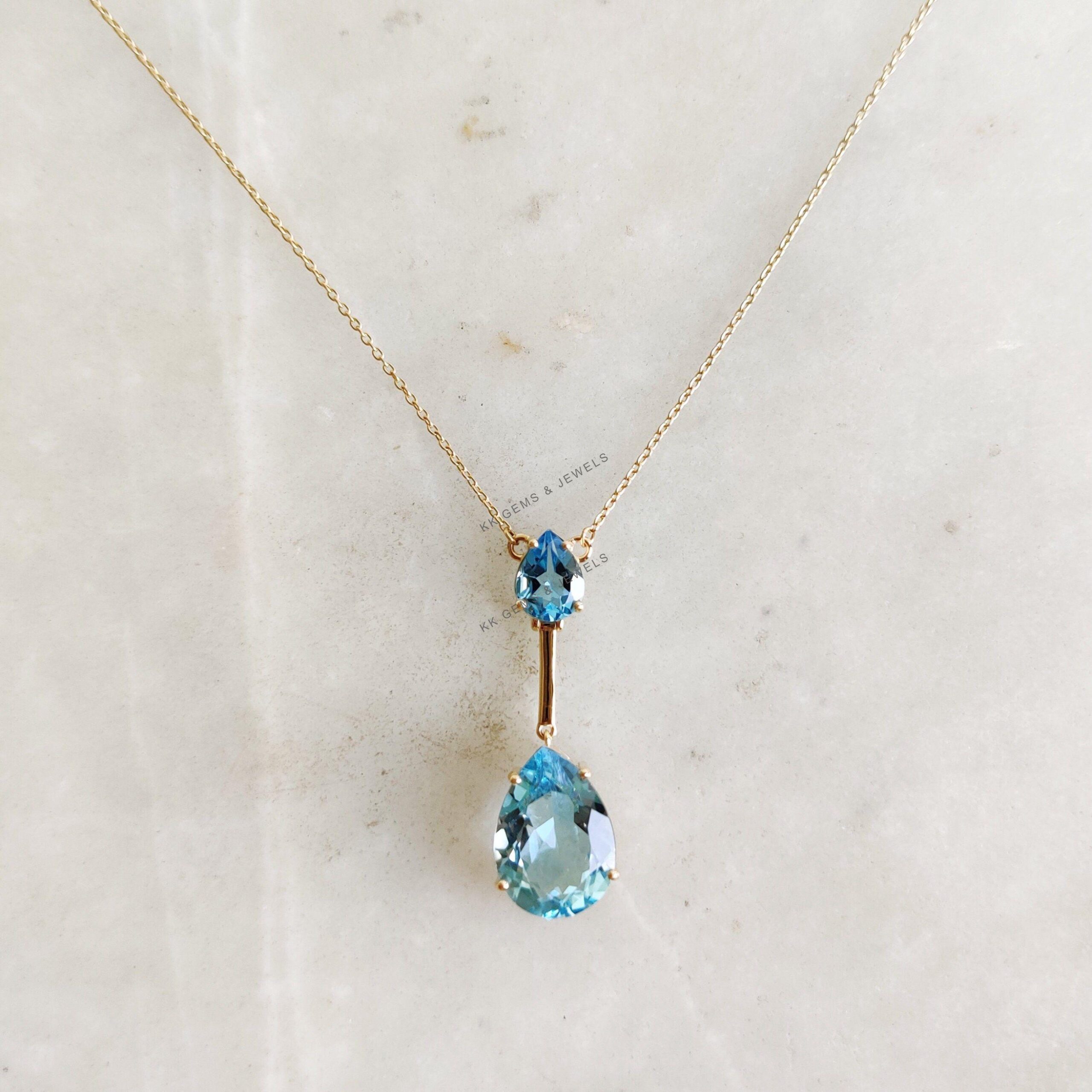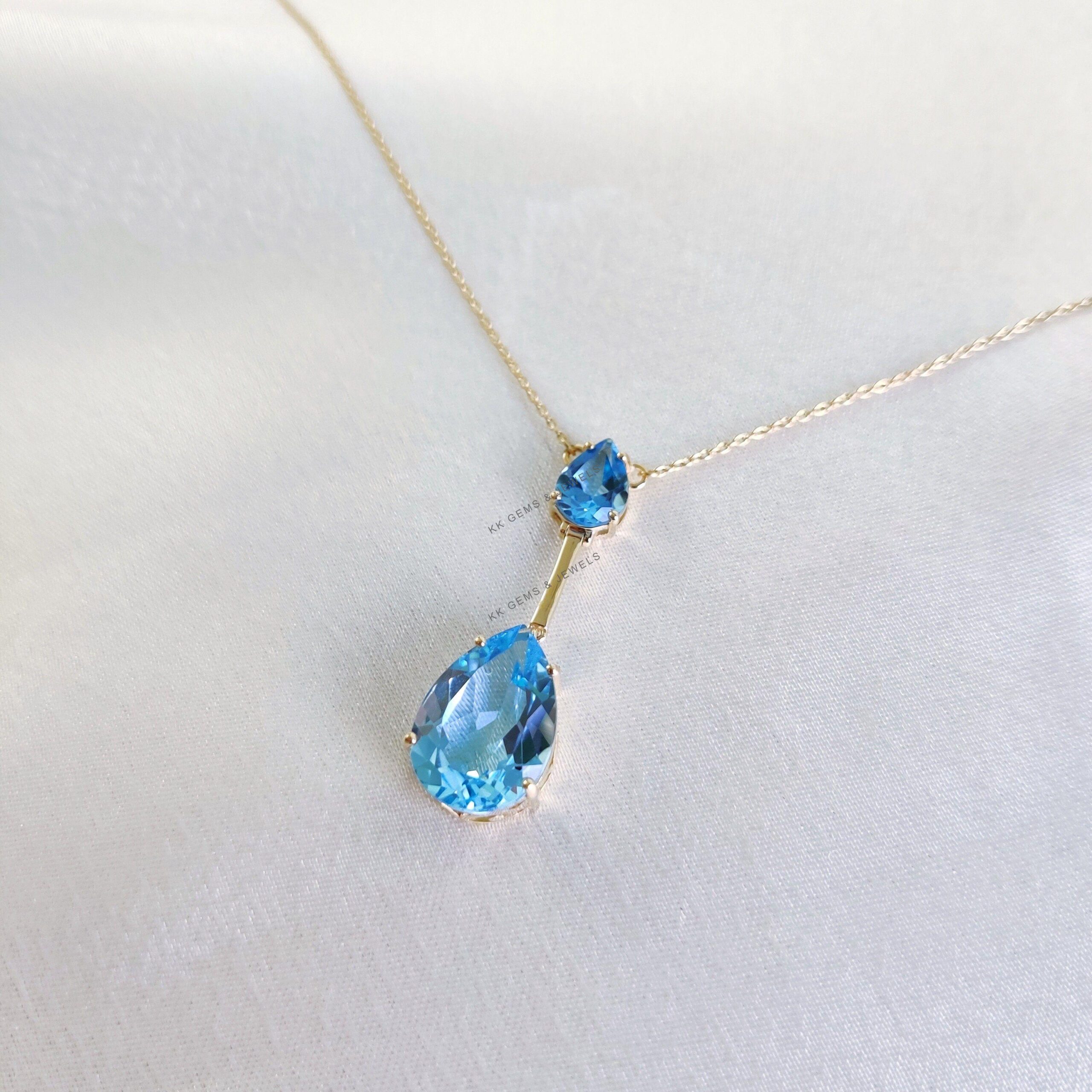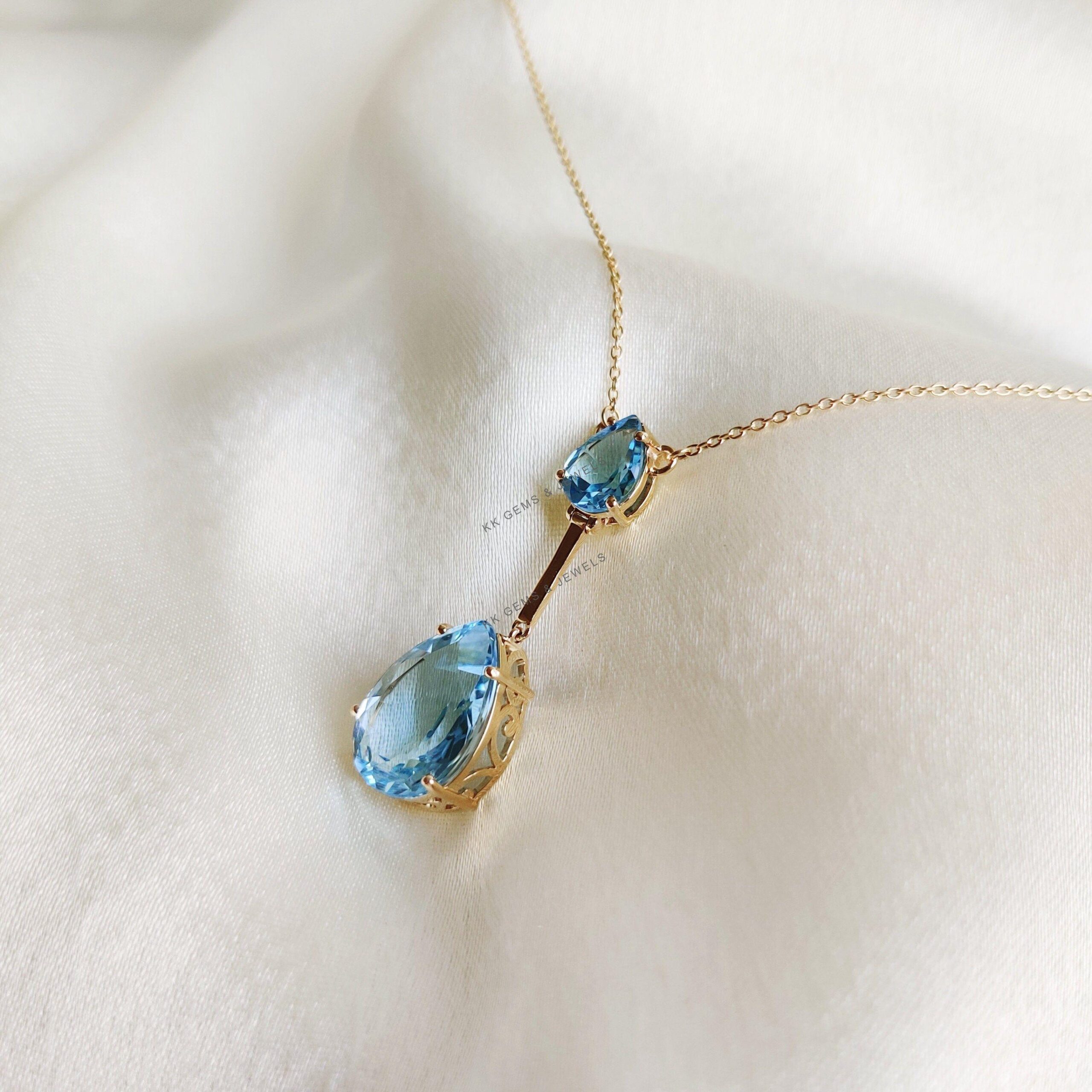 This stunning necklace is set in 14K Solid Yellow Gold with Natural Sky Blue Topaz gemstones. It is an unique minimalist necklace and is therefore completely hassle-free jewelry. ✓ ABOUT GEMSTONE Sky Blue Topaz is a mesmerizing gemstone admired for…