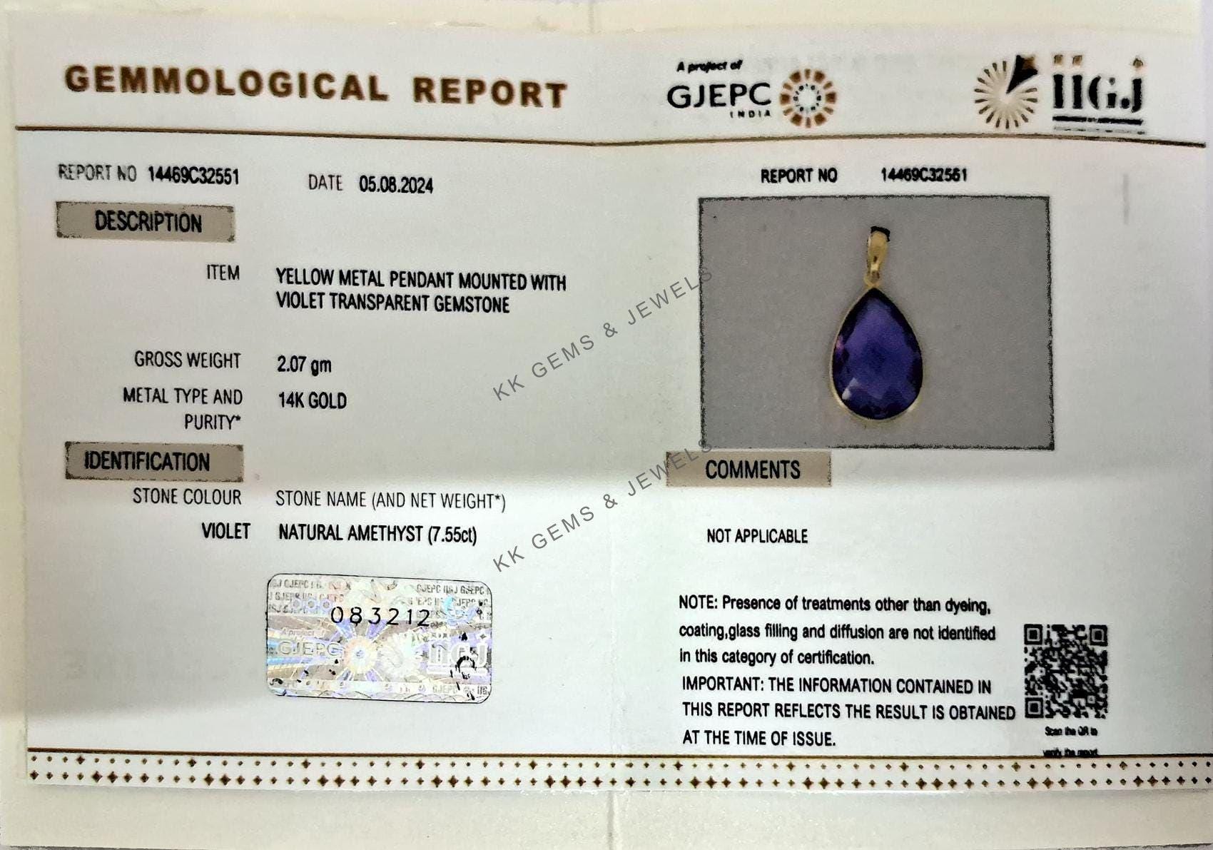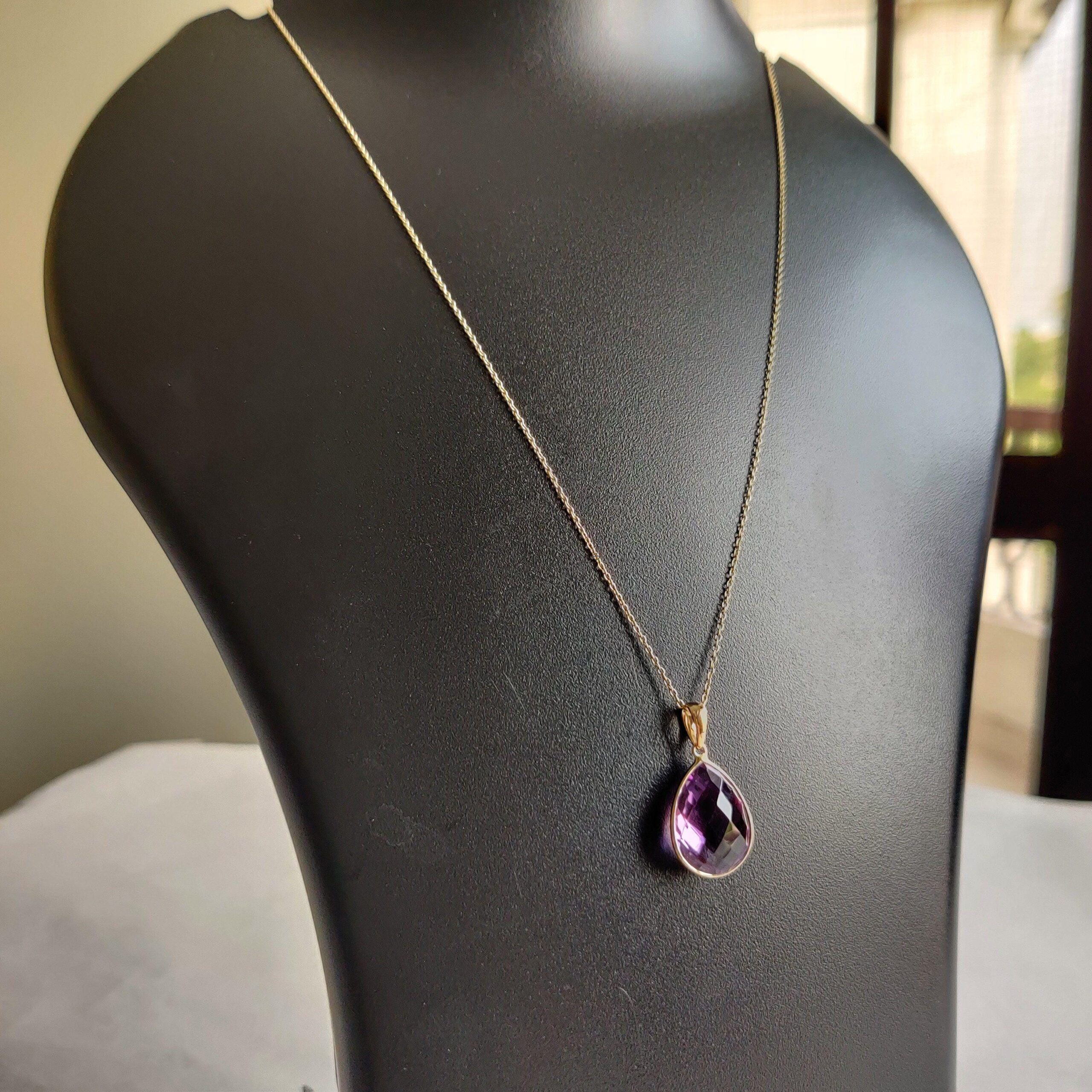 This stunning pendant is set in 14k Solid Yellow Gold with Natural Purple Amethyst with utmost precision. It is an unique gemstone pendant for nearly every occasion and is completely hassle-free jewelry.