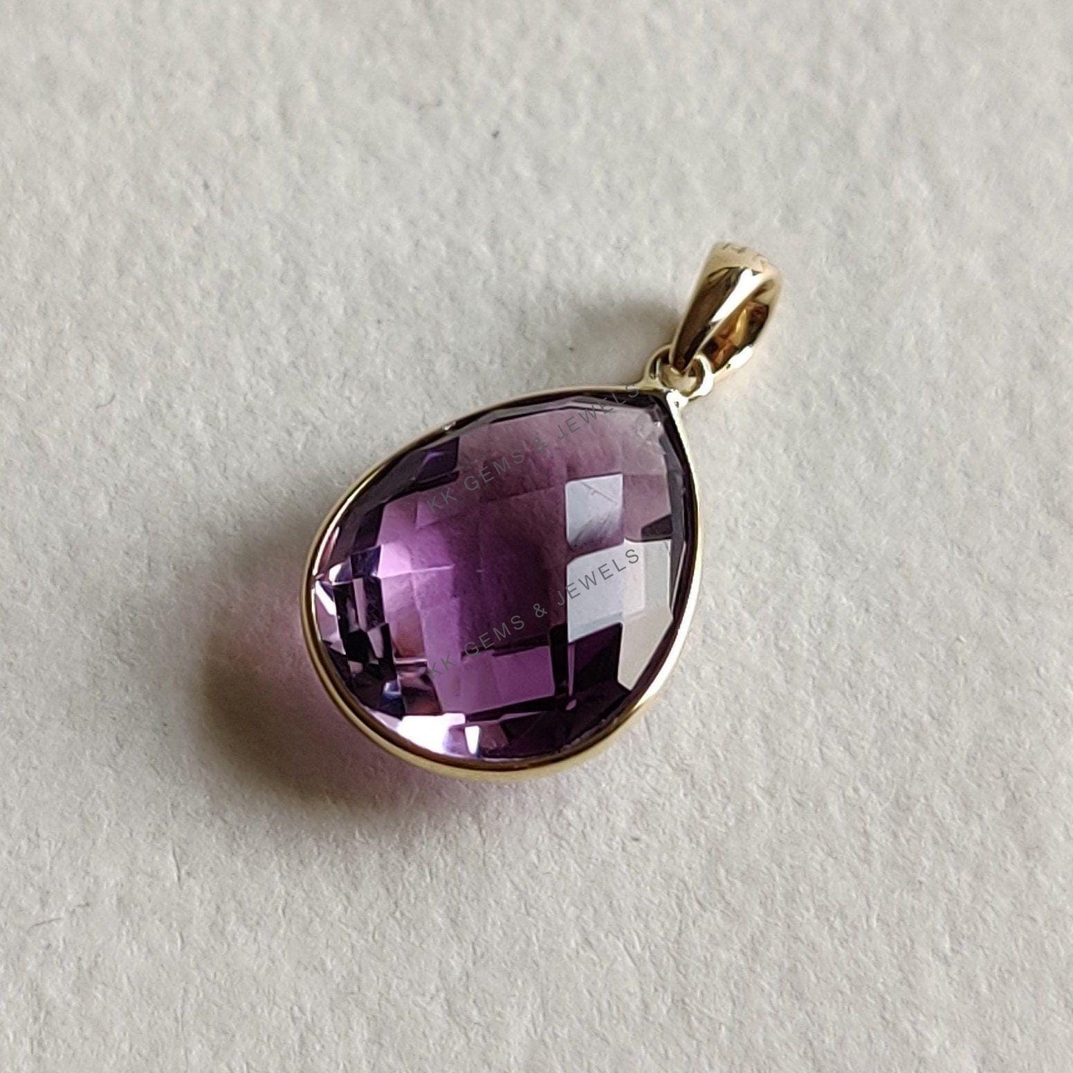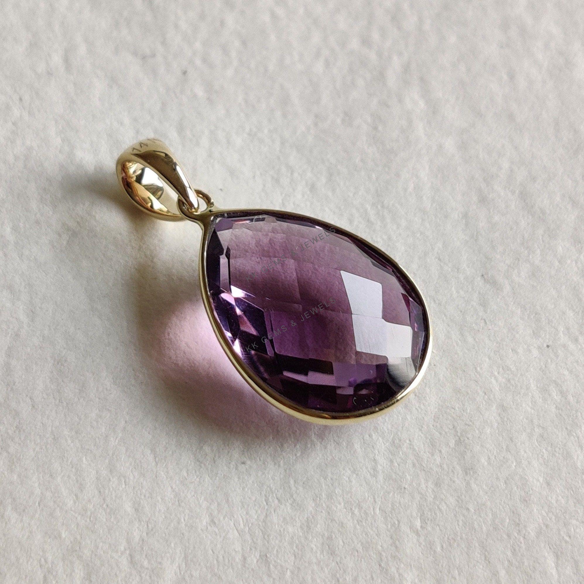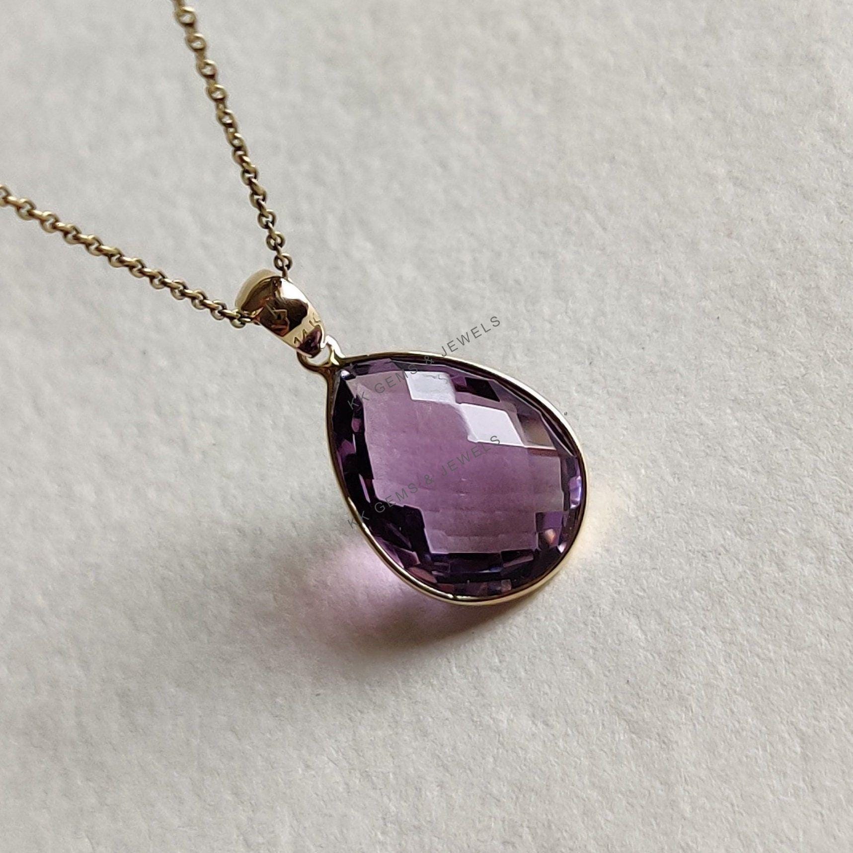 1 review for Pear Shape Natural Purple Amethyst Birthstone Pendant, Bezel Set in 14K Solid Gold