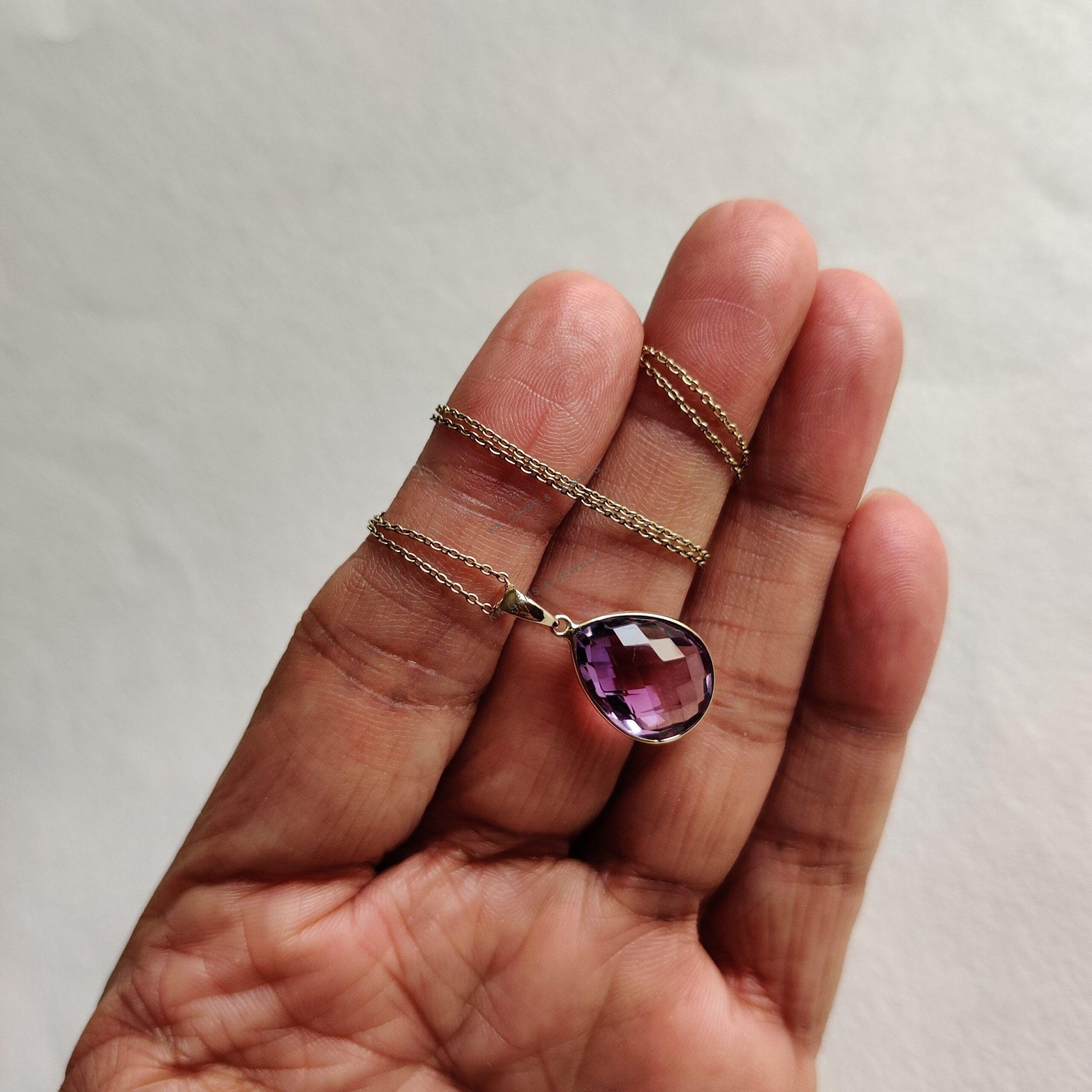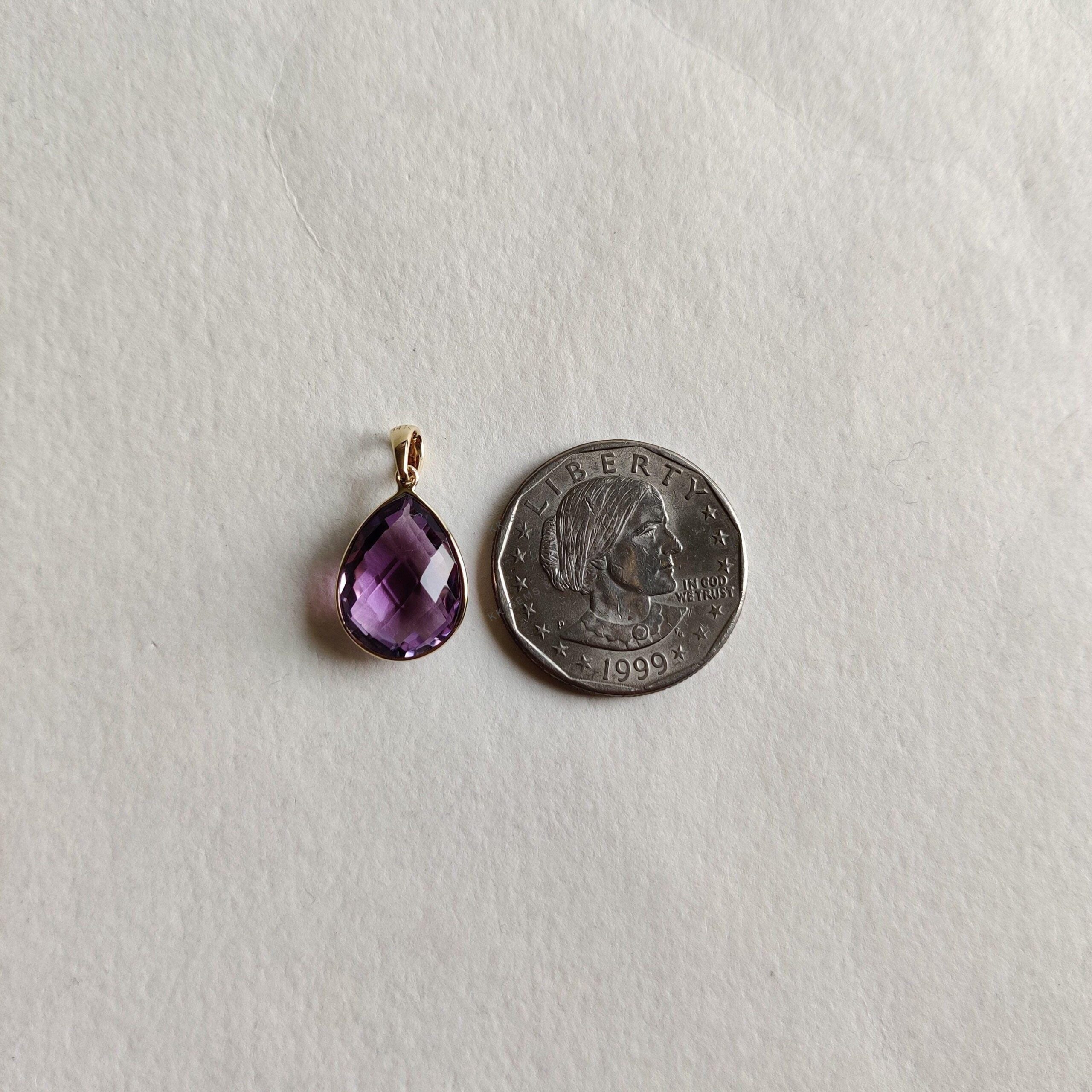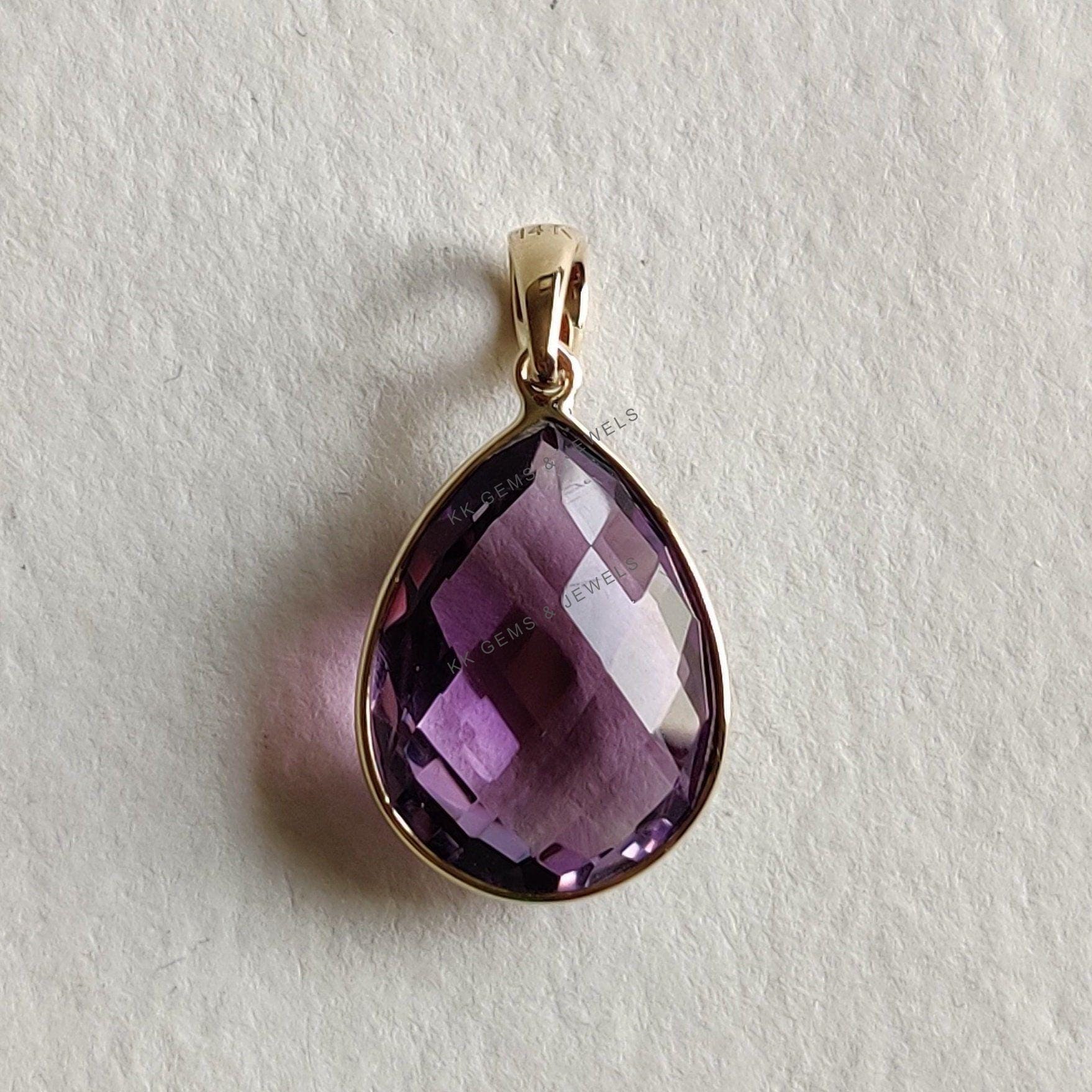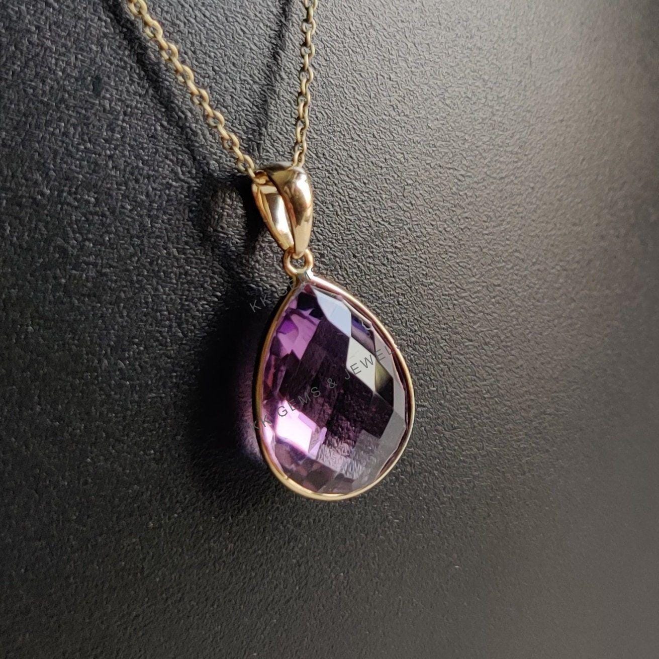 1 review for Pear Shape Natural Purple Amethyst Birthstone Pendant, Bezel Set in 14K Solid Gold