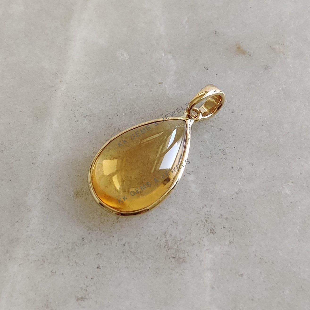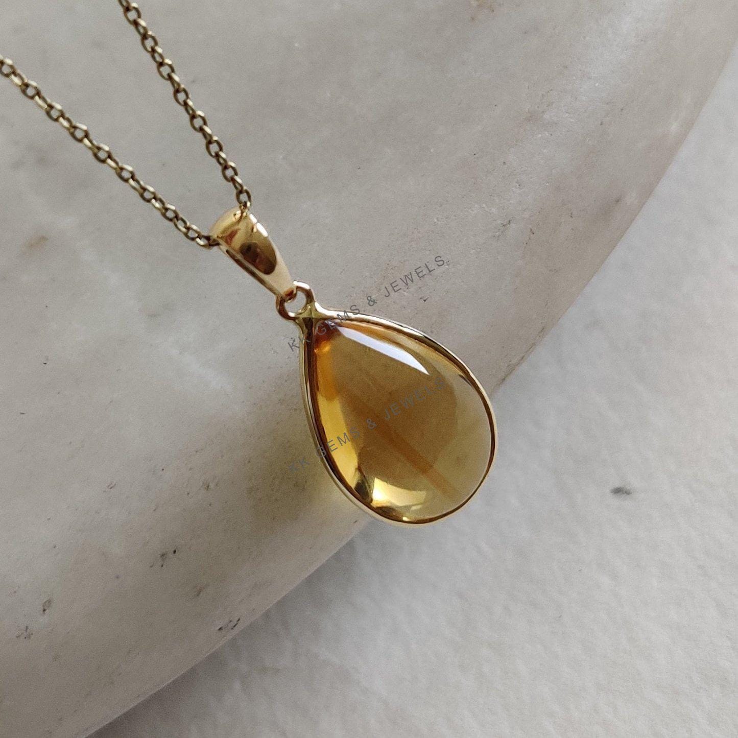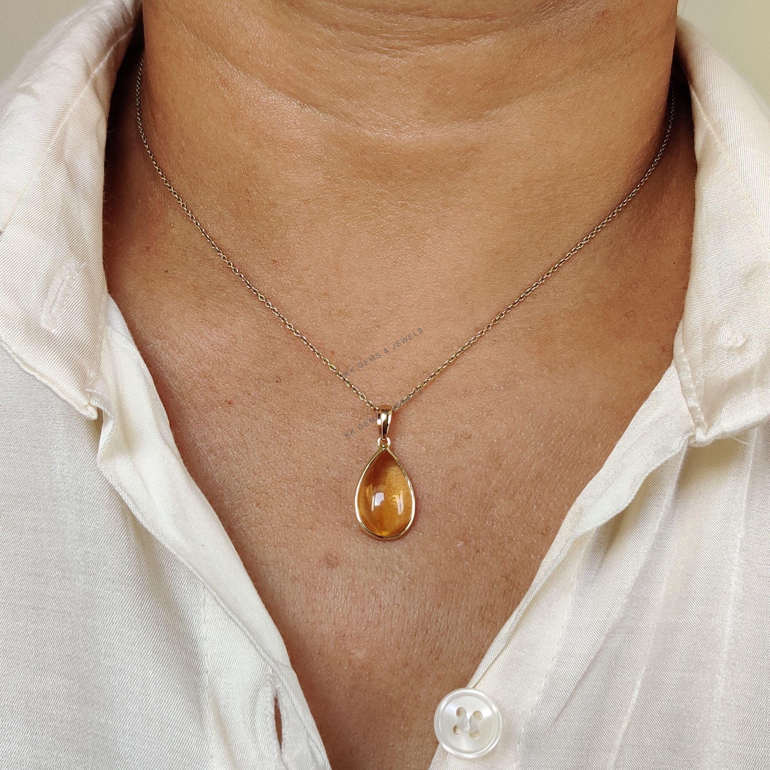 1 review for Pear Shape Natural Citrine Birthstone Pendant Set in 14K Solid Gold, Bezel Setting