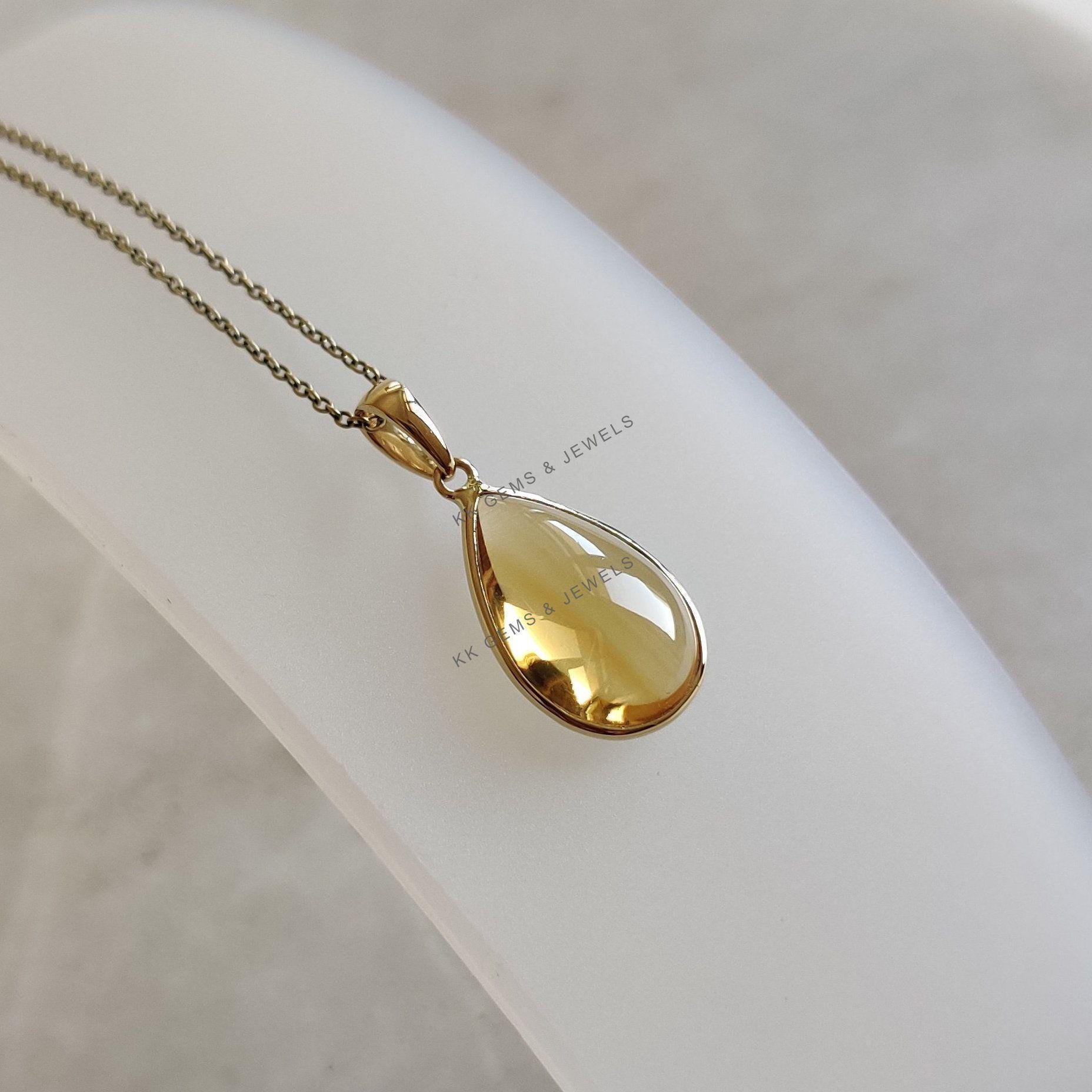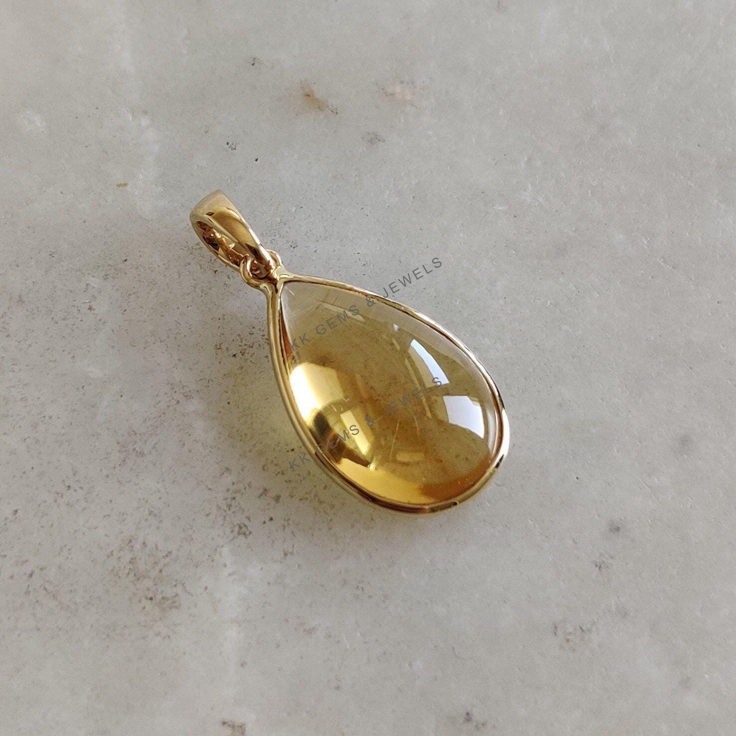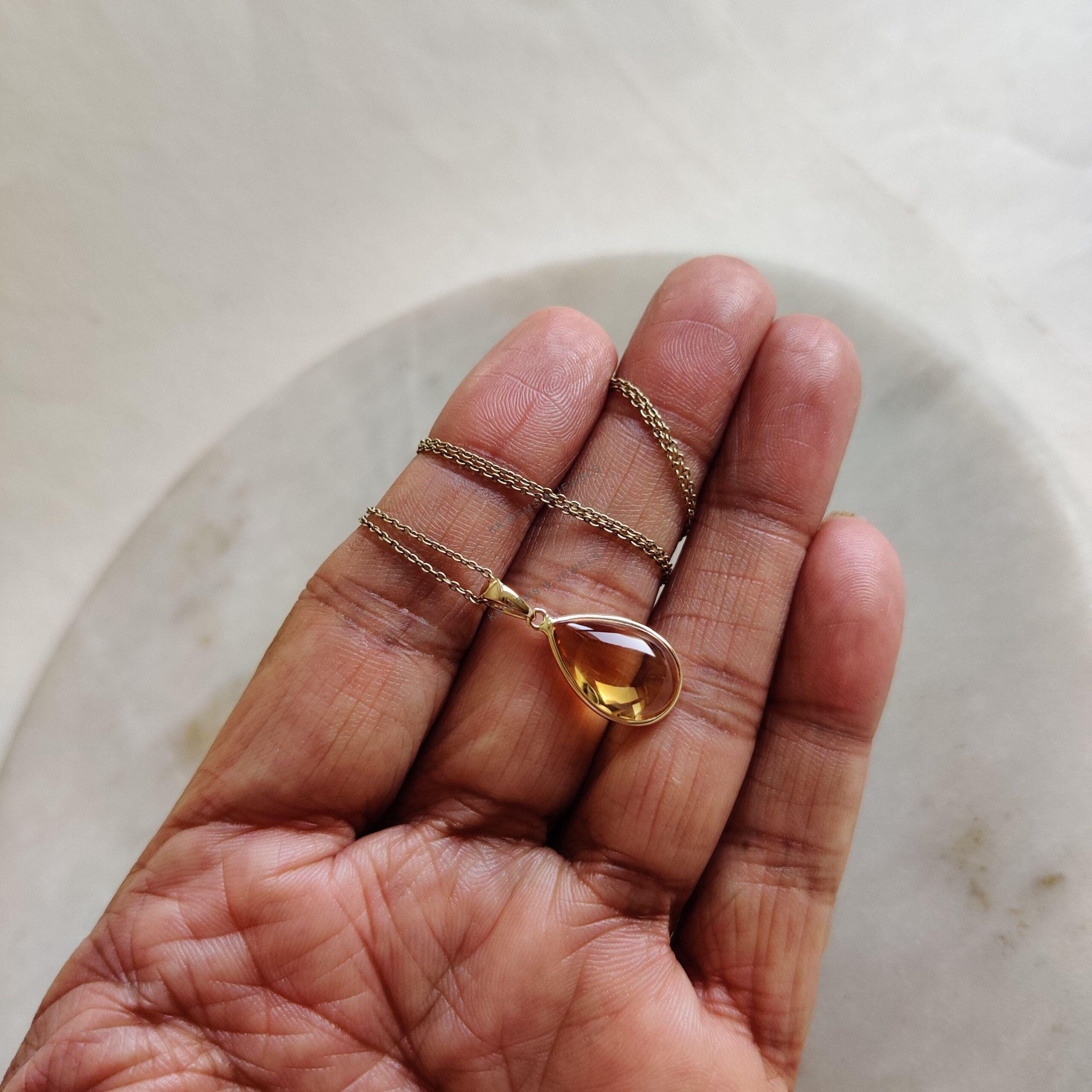 1 review for Pear Shape Natural Citrine Birthstone Pendant Set in 14K Solid Gold, Bezel Setting