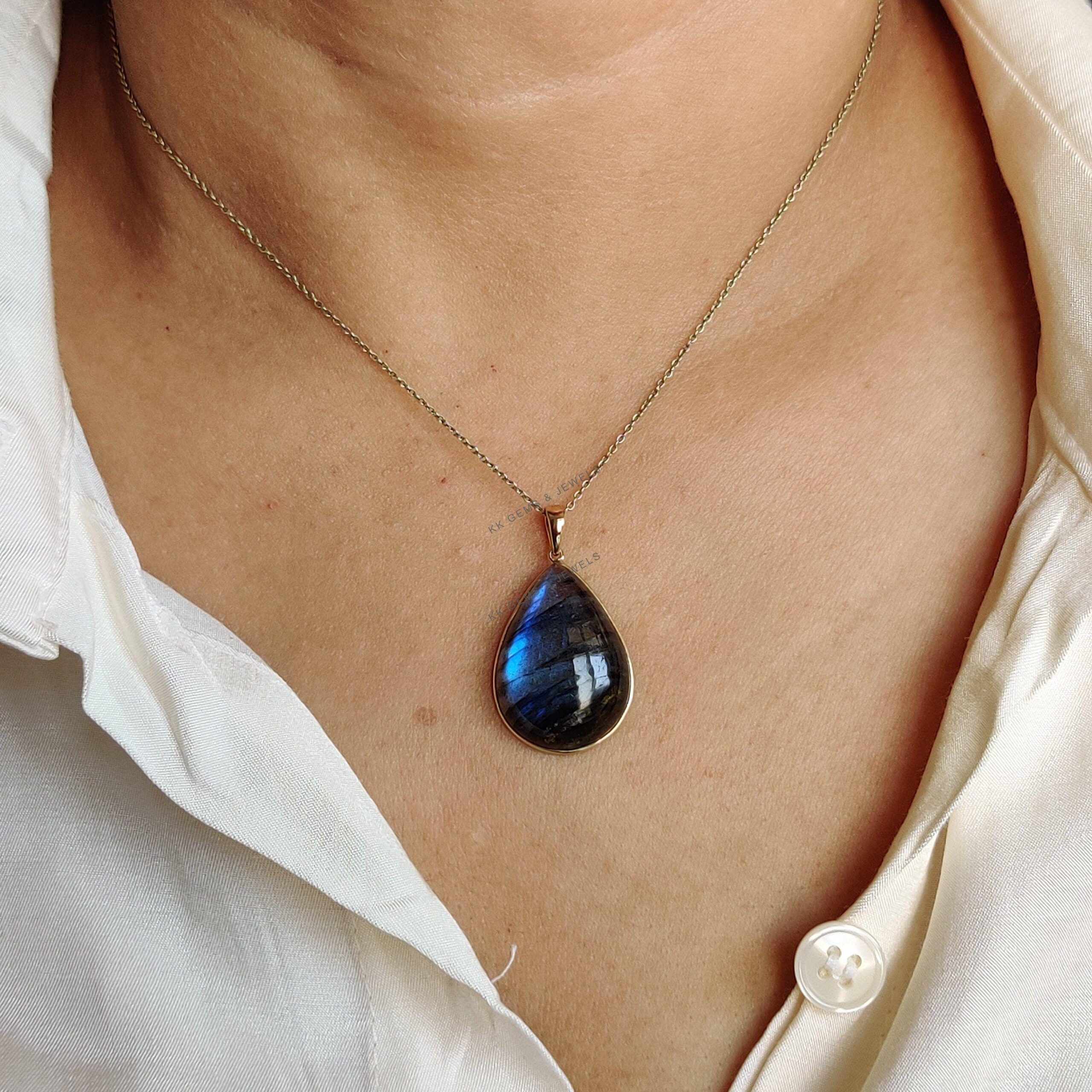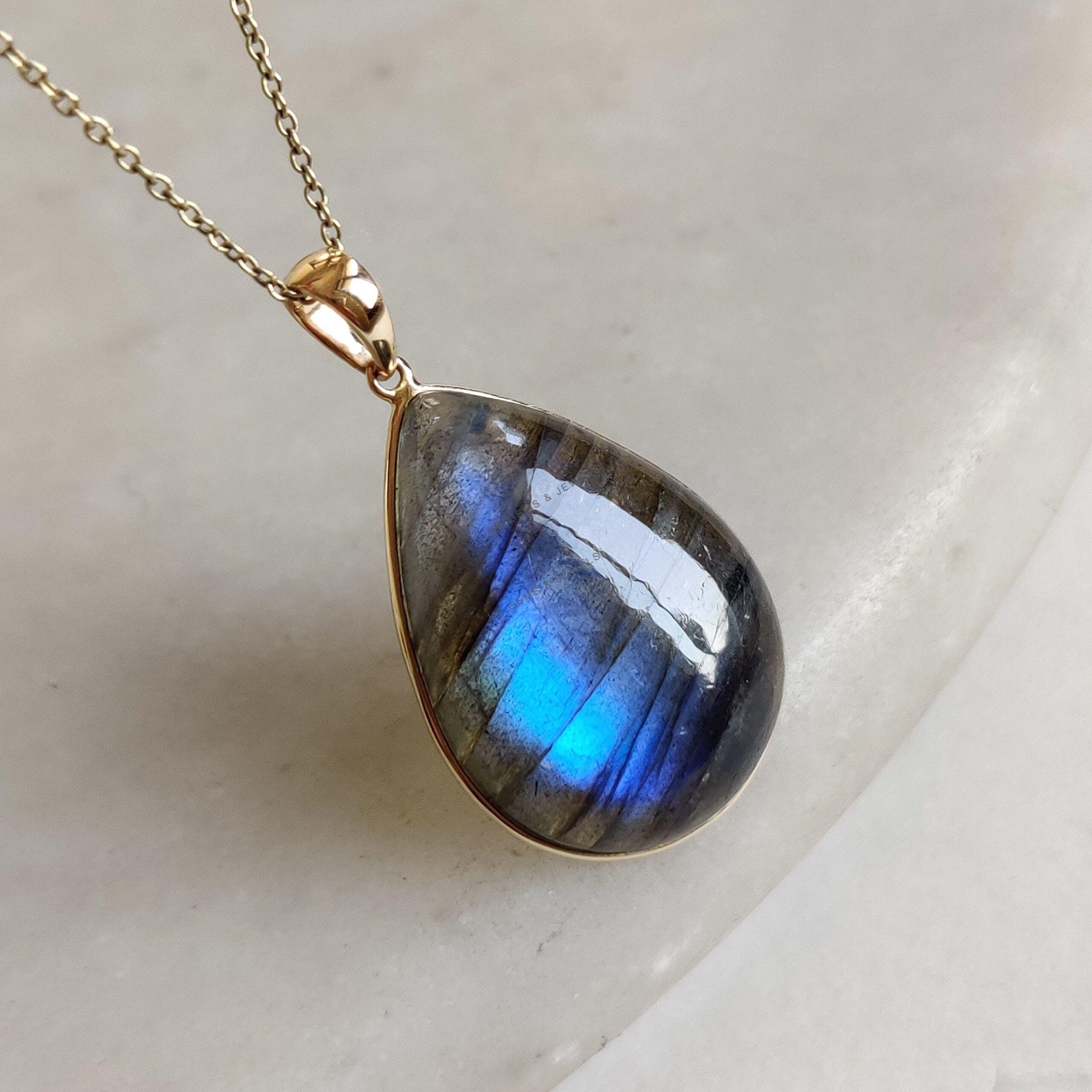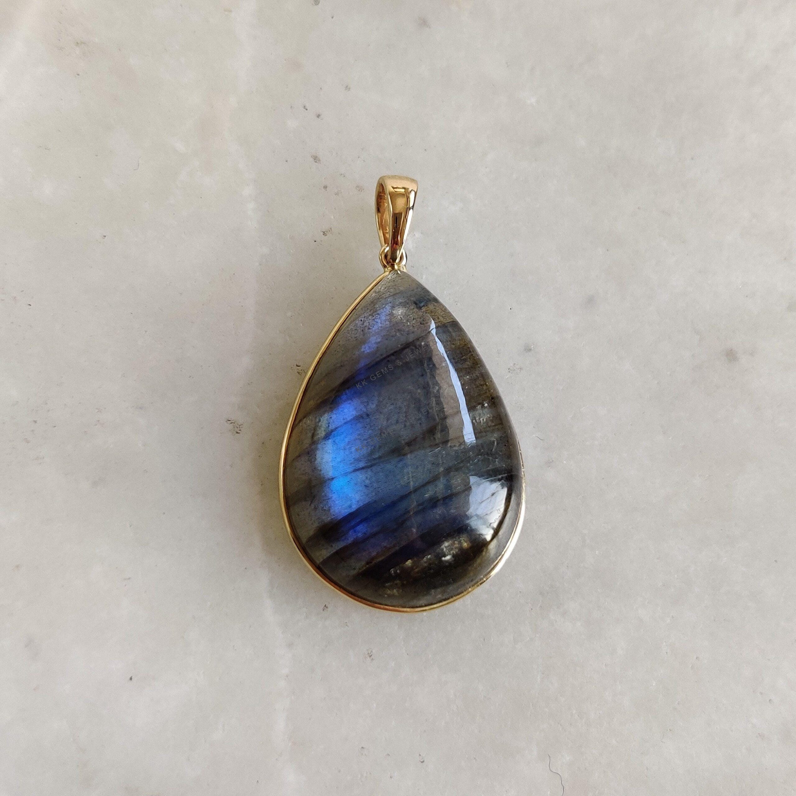 This stunning pendant is set in 14k Solid Yellow Gold with Natural Labradorite having a beautiful blue sheen. It is an unique gemstone pendant for nearly every occasion and is completely hassle-free jewelry. ✓ ABOUT GEMSTONE: Labradorite is a mesmerizing…