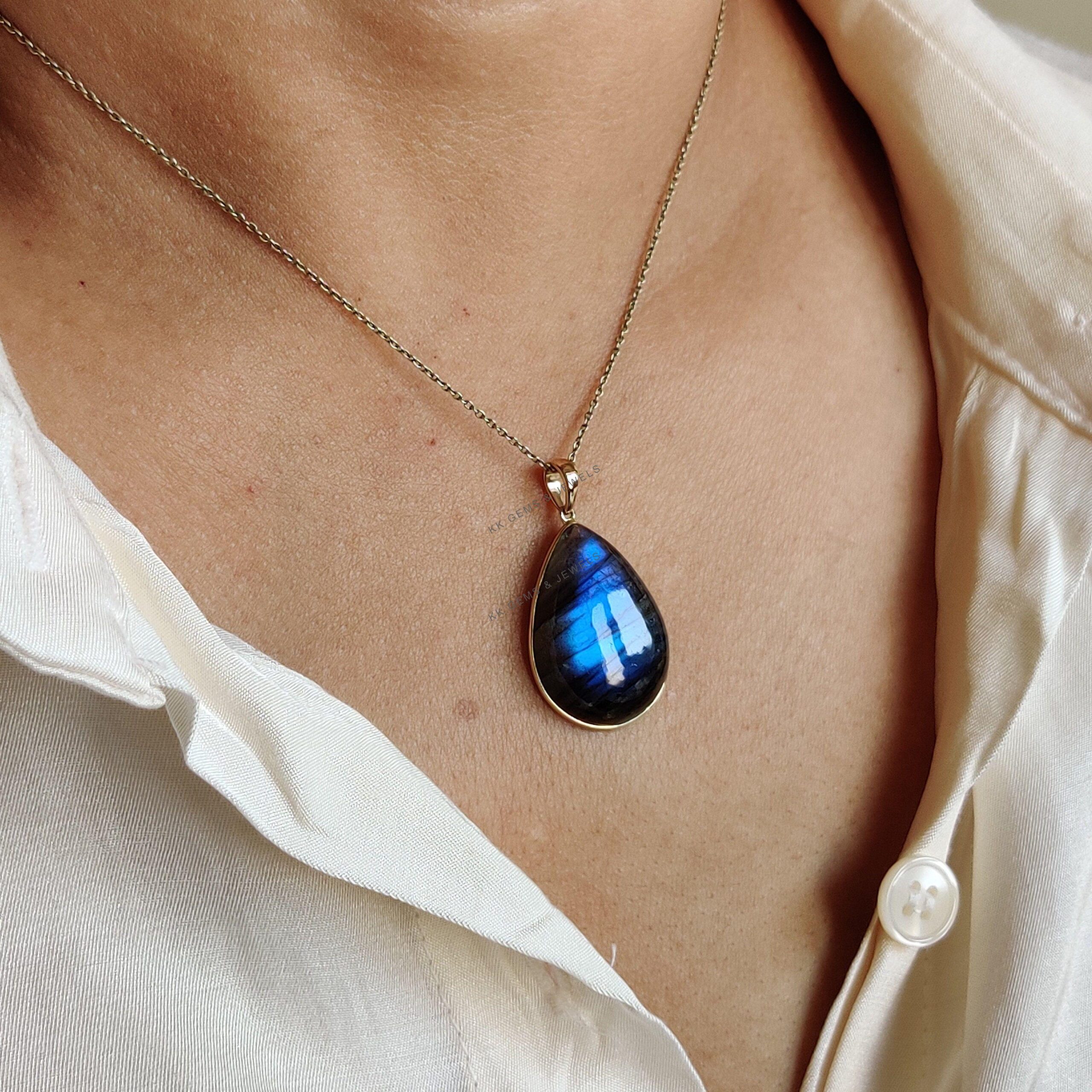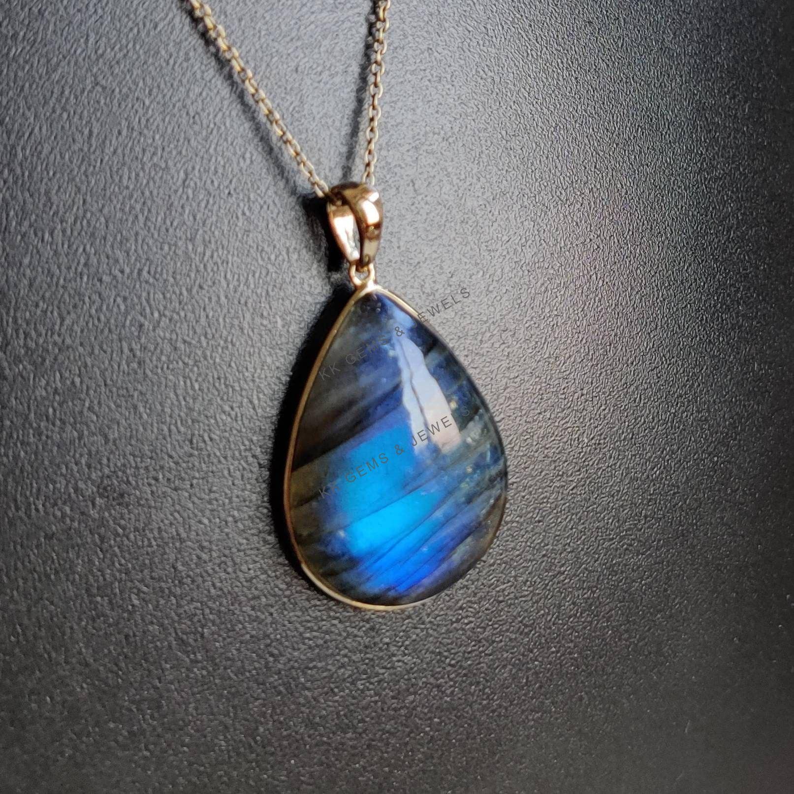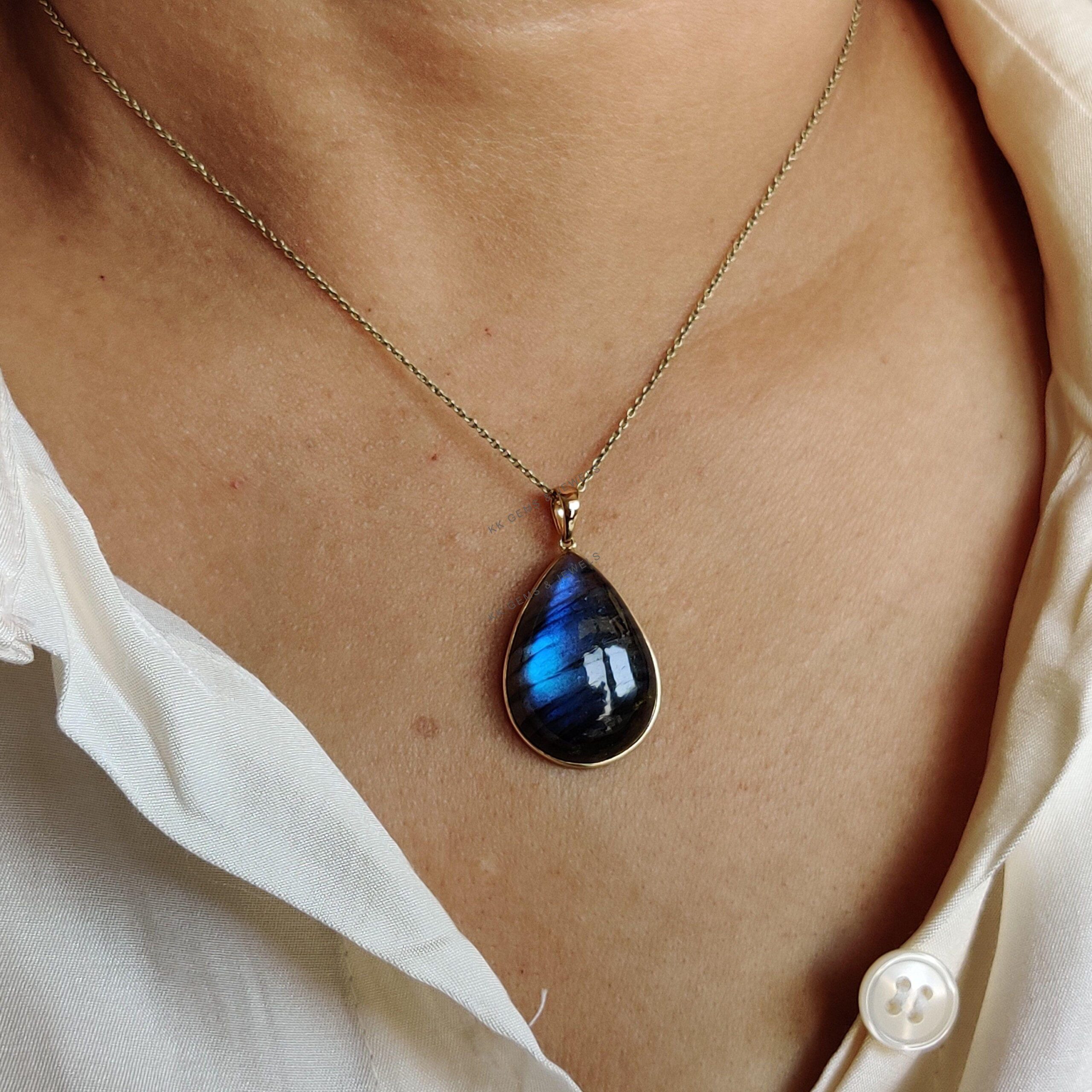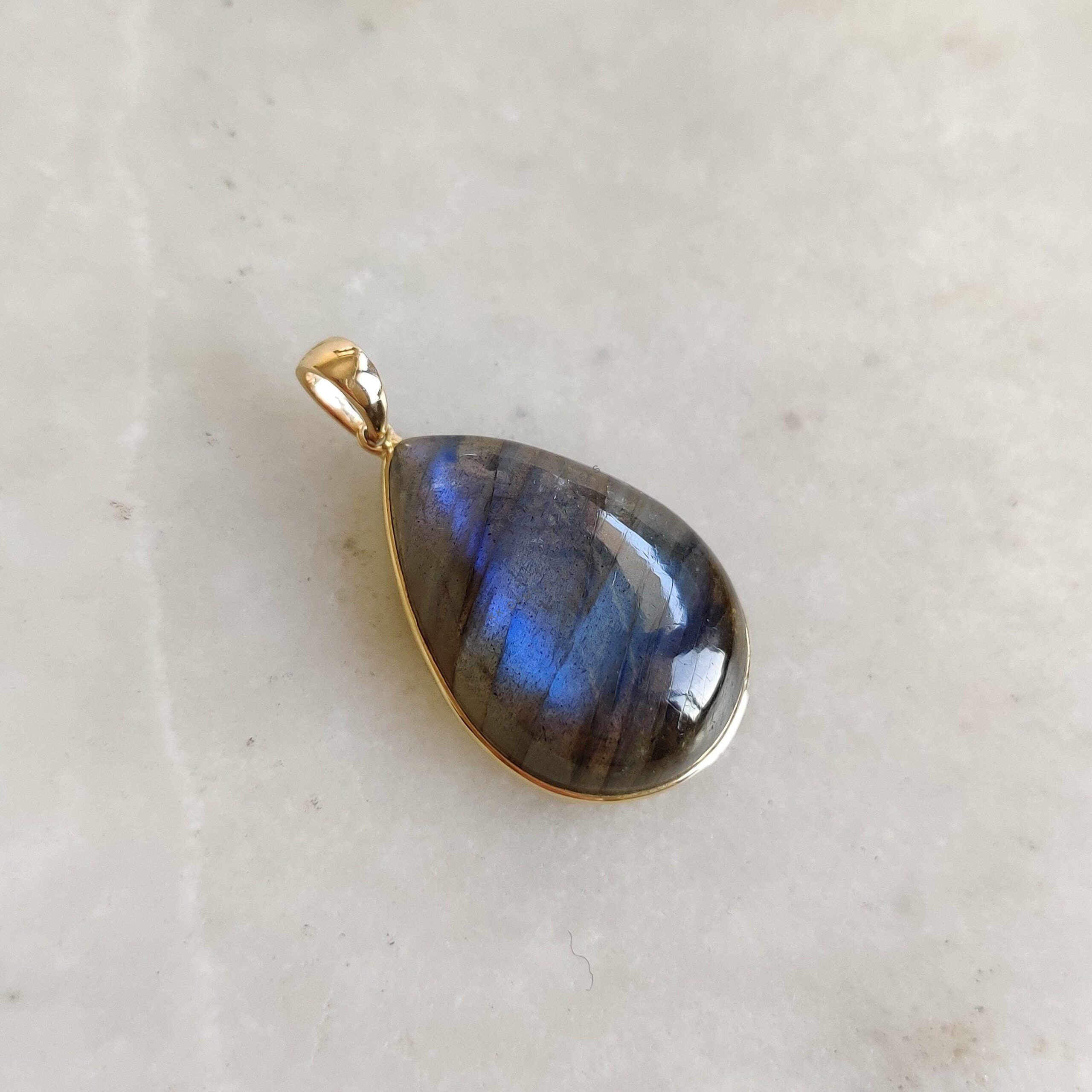 This stunning pendant is set in 14k Solid Yellow Gold with Natural Labradorite having a beautiful blue sheen. It is an unique gemstone pendant for nearly every occasion and is completely hassle-free jewelry. ✓ ABOUT GEMSTONE: Labradorite is a mesmerizing…