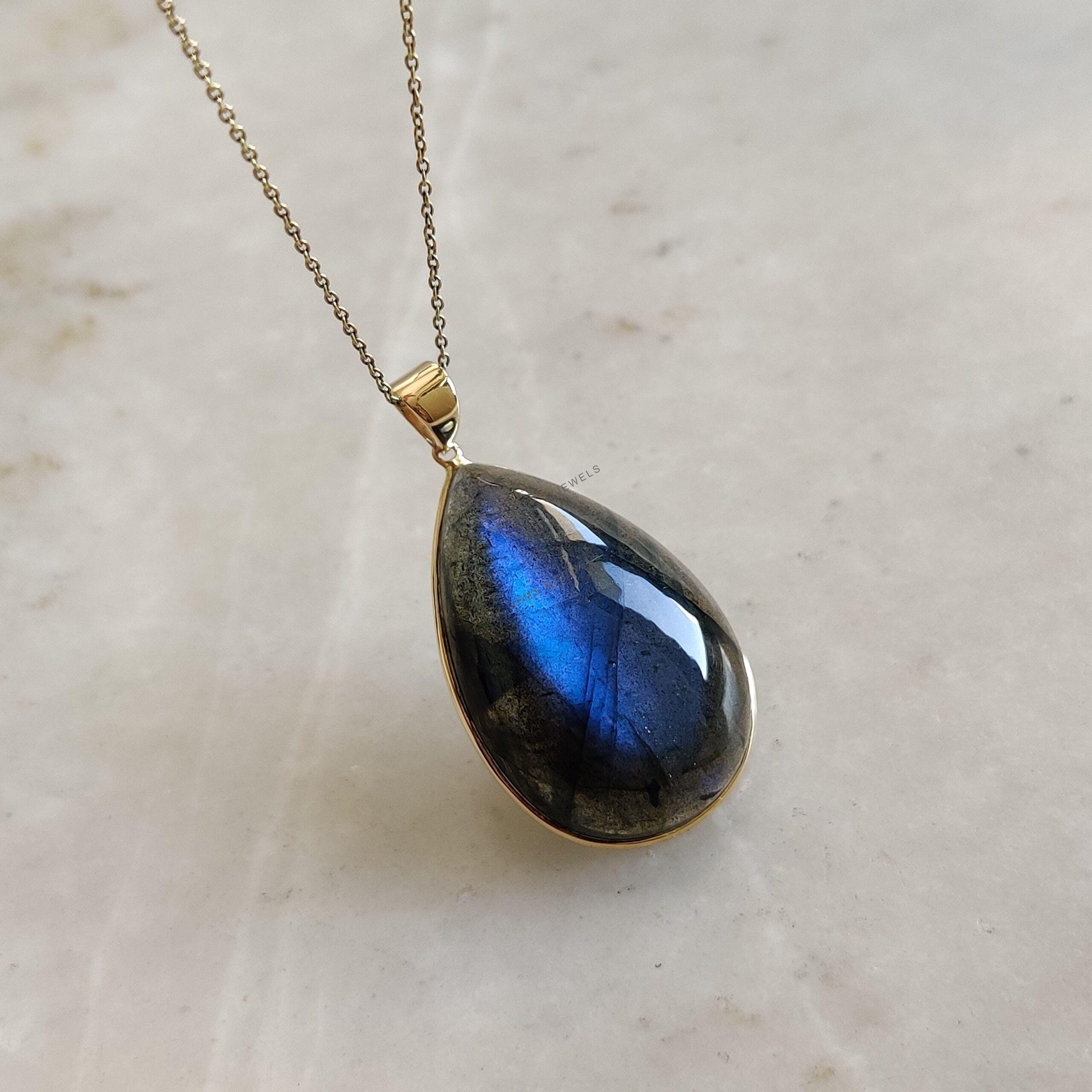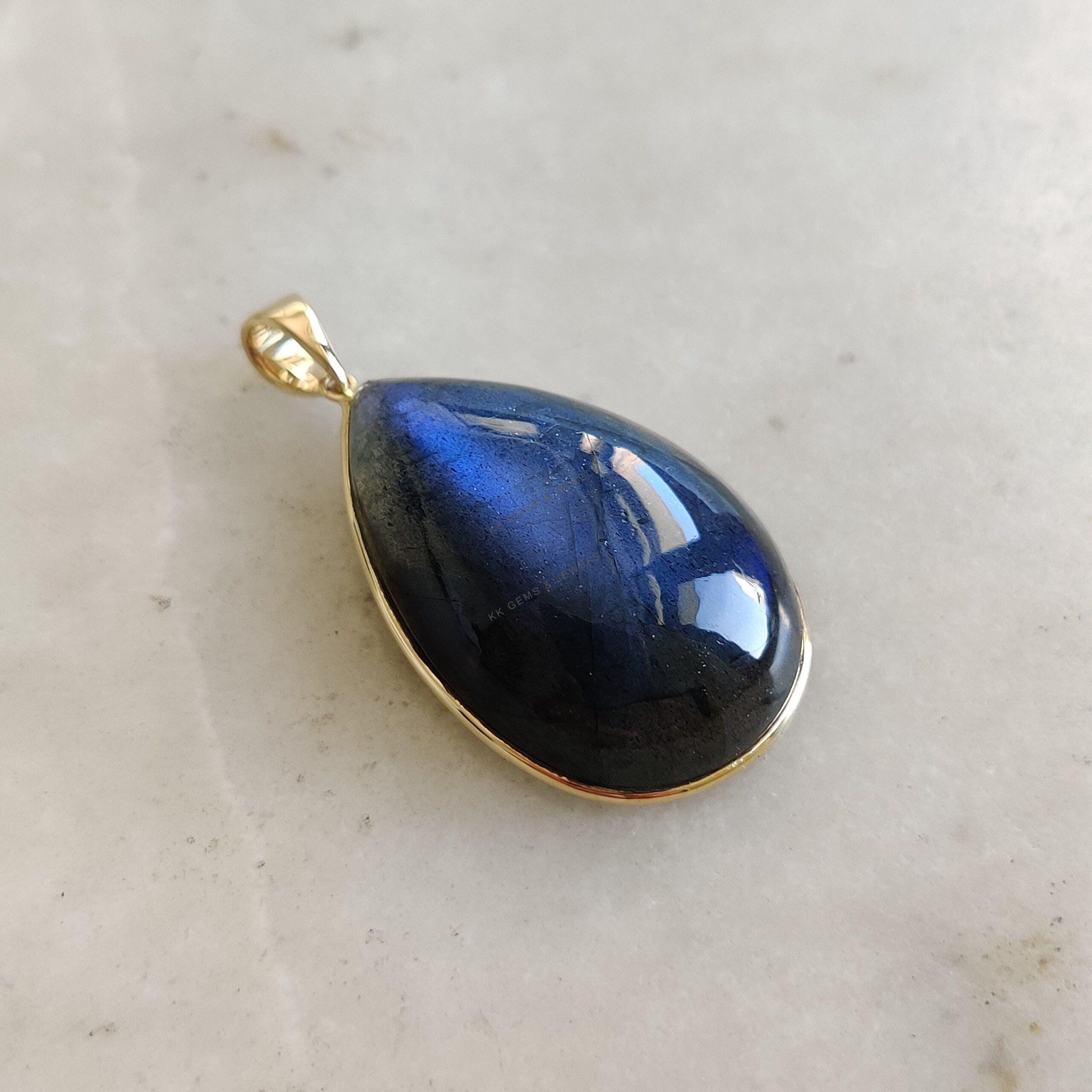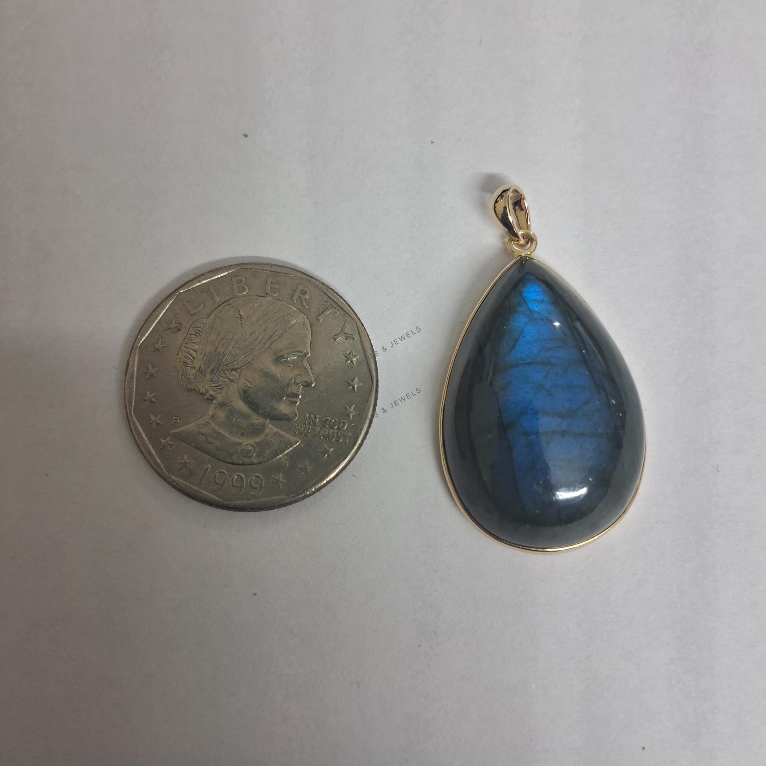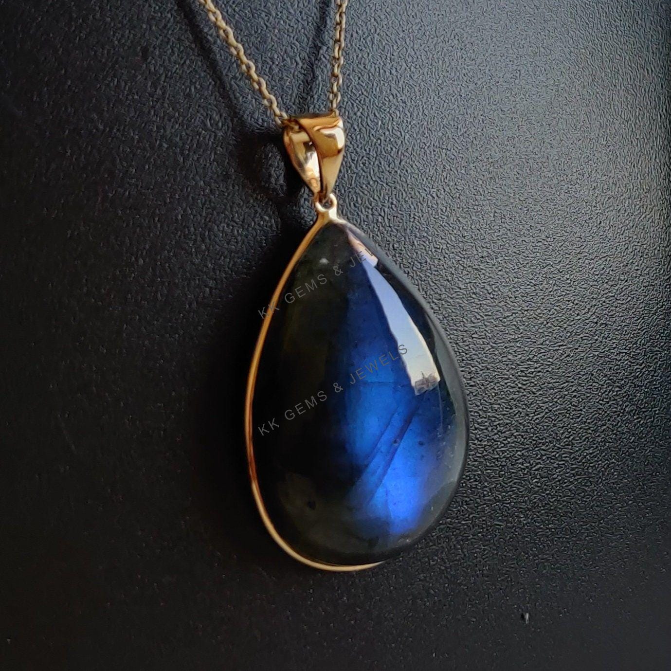 This stunning pendant is set in 14k Solid Yellow Gold with Natural Labradorite having a beautiful blue sheen. It is an unique gemstone pendant for nearly every occasion and is completely hassle-free jewelry.