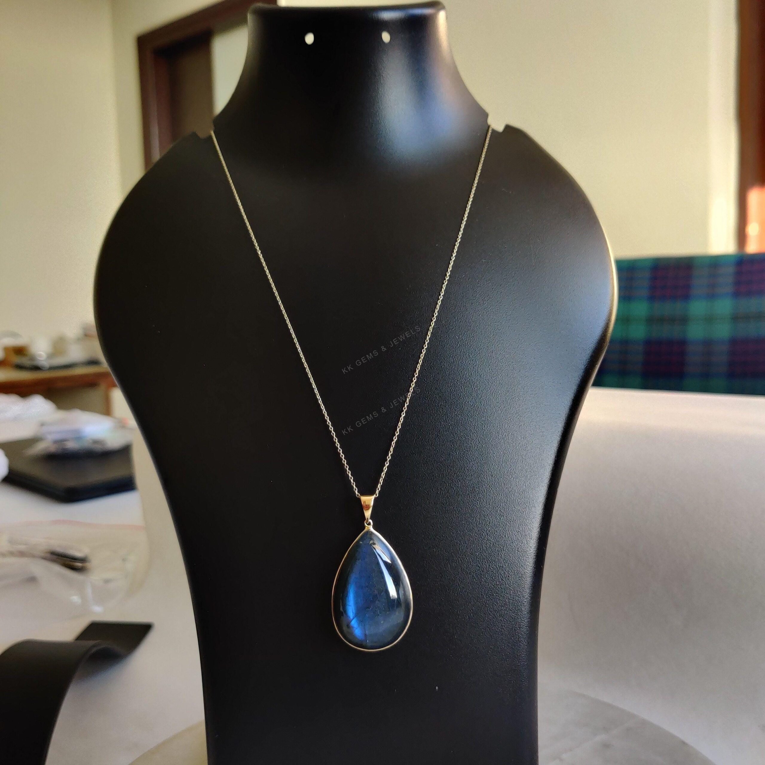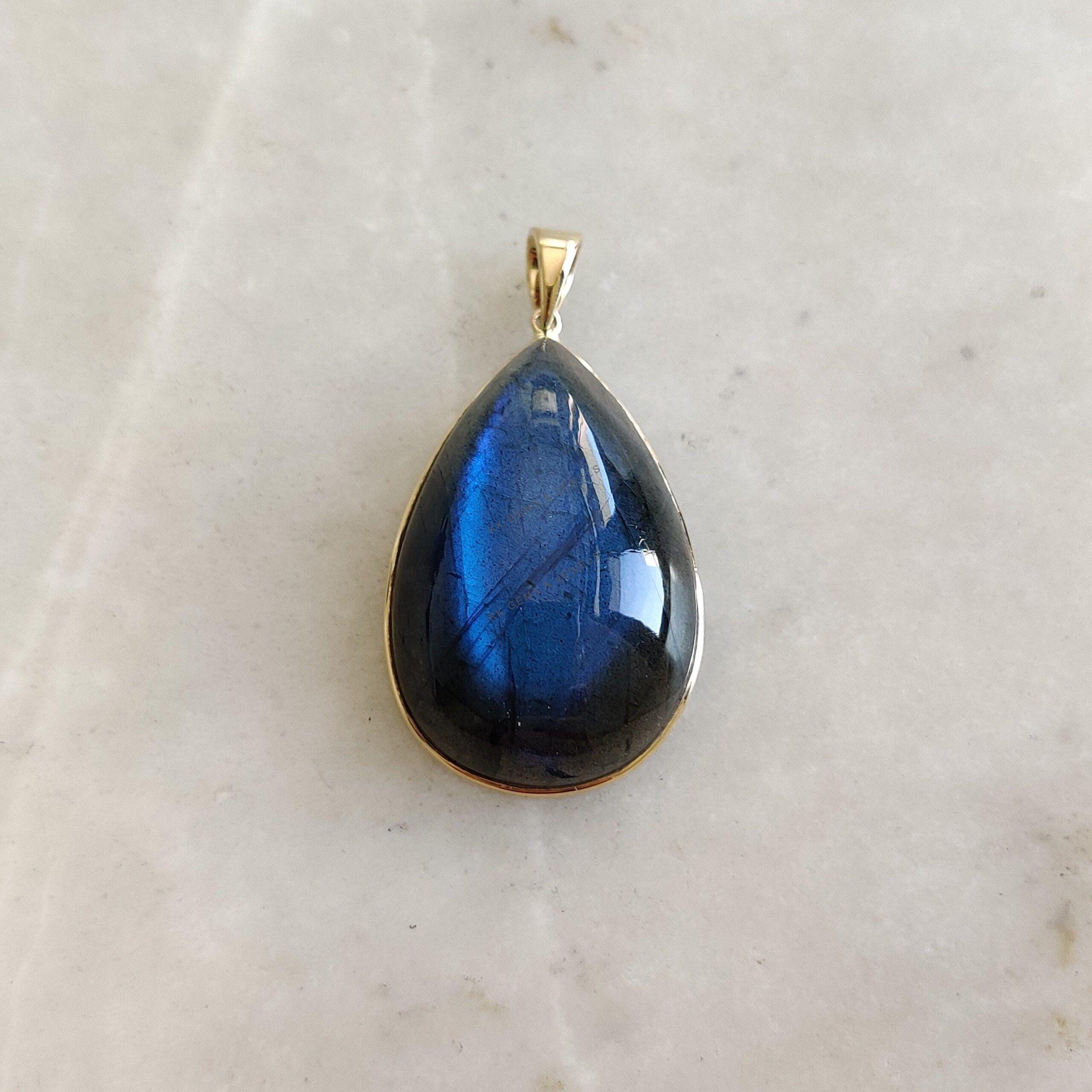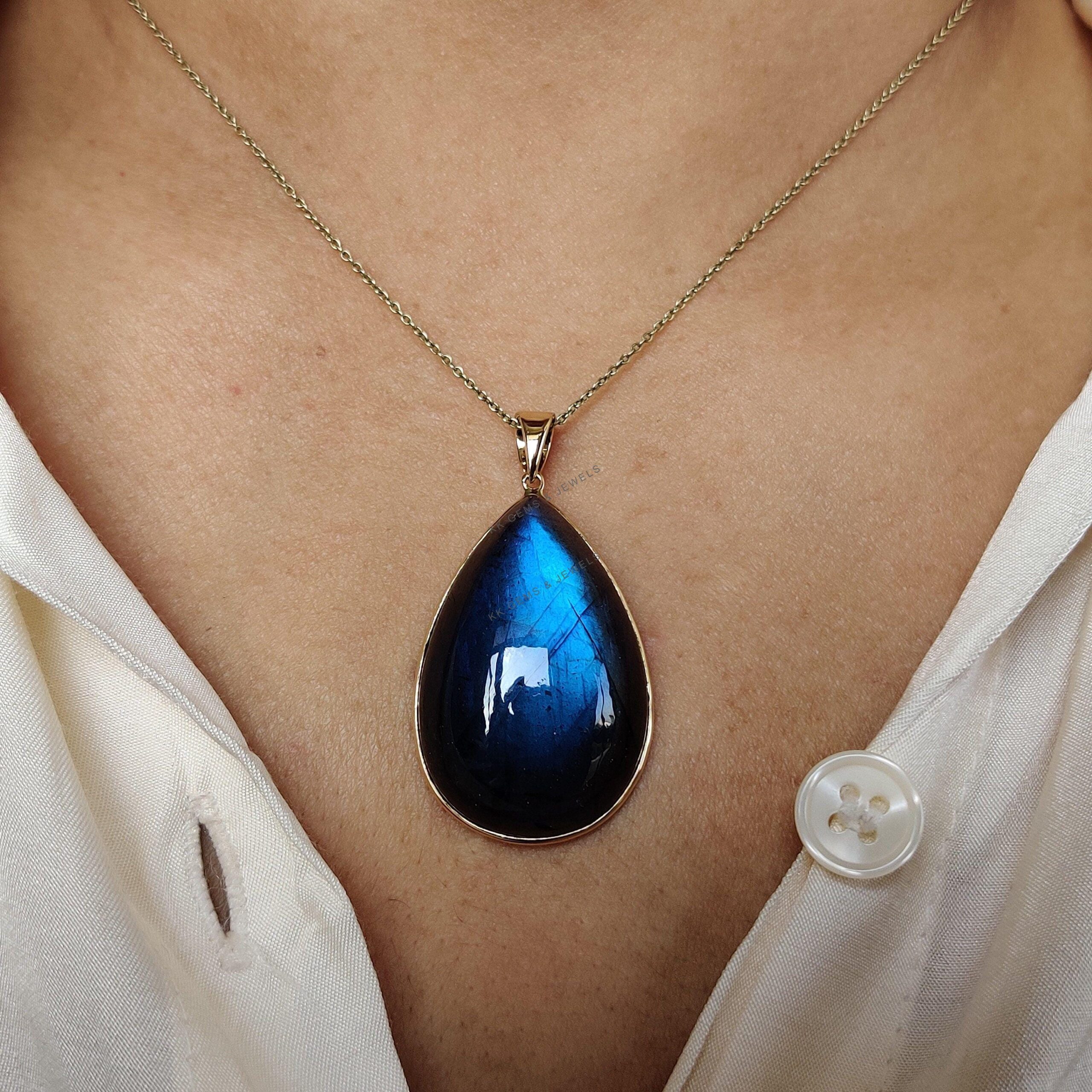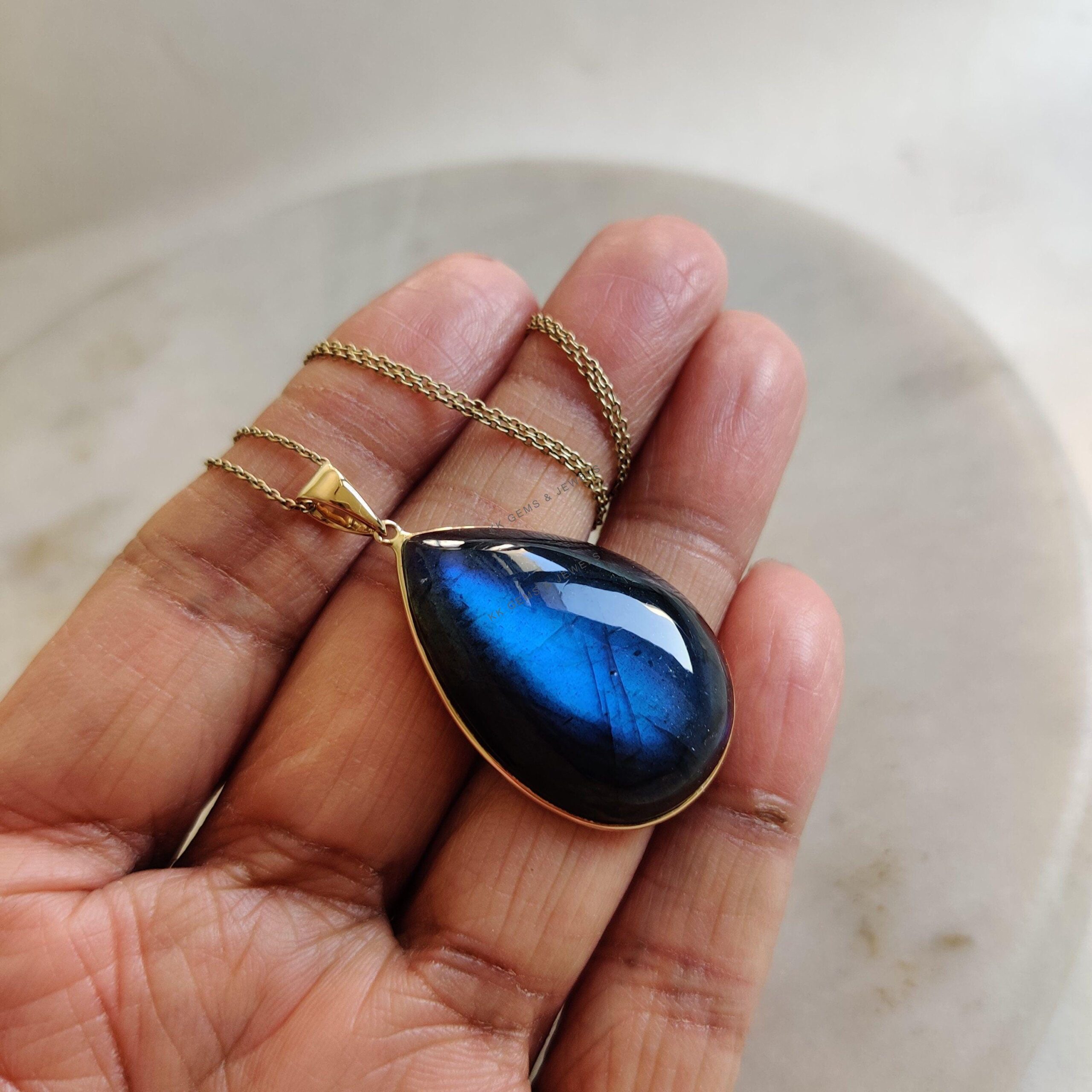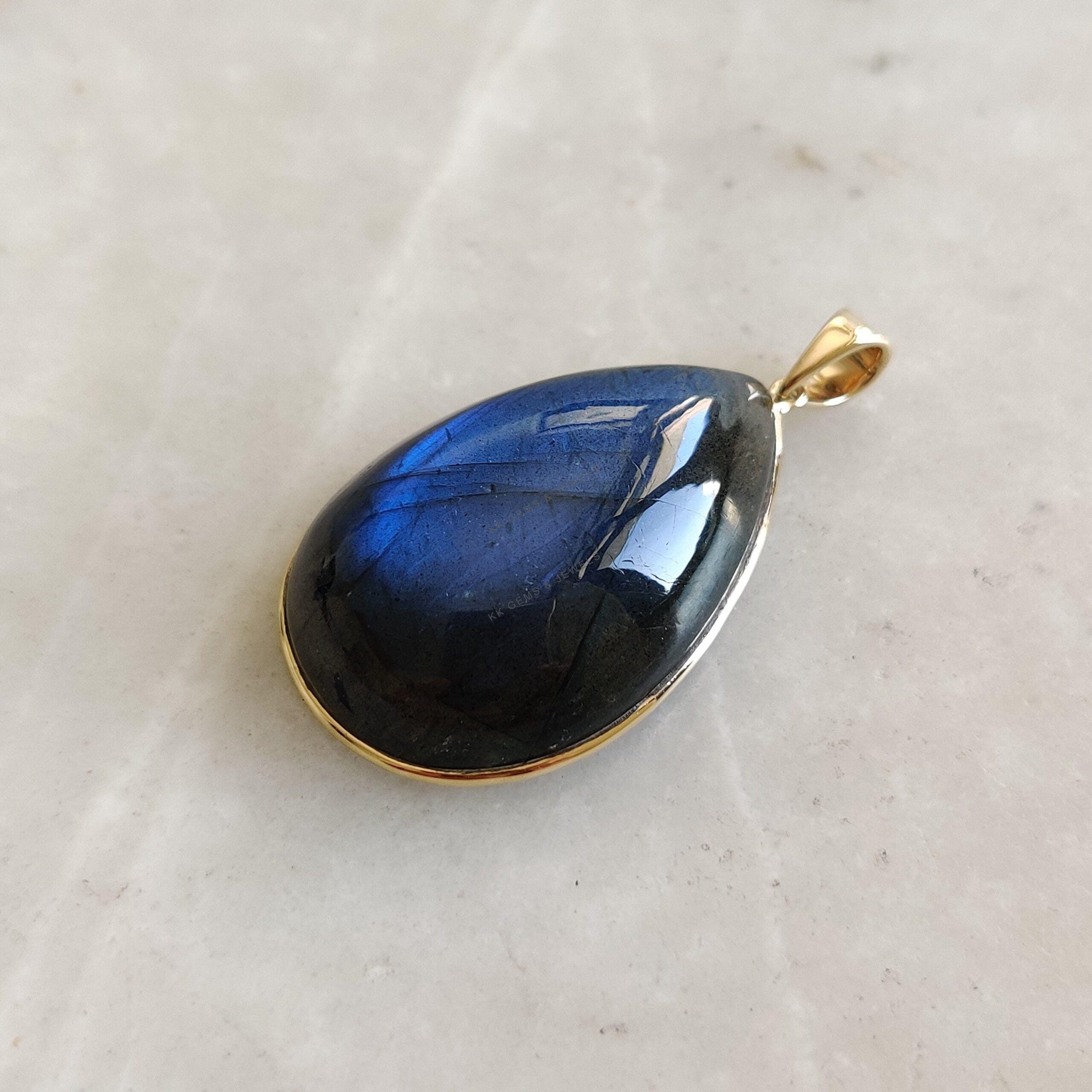 This stunning pendant is set in 14k Solid Yellow Gold with Natural Labradorite having a beautiful blue sheen. It is an unique gemstone pendant for nearly every occasion and is completely hassle-free jewelry.