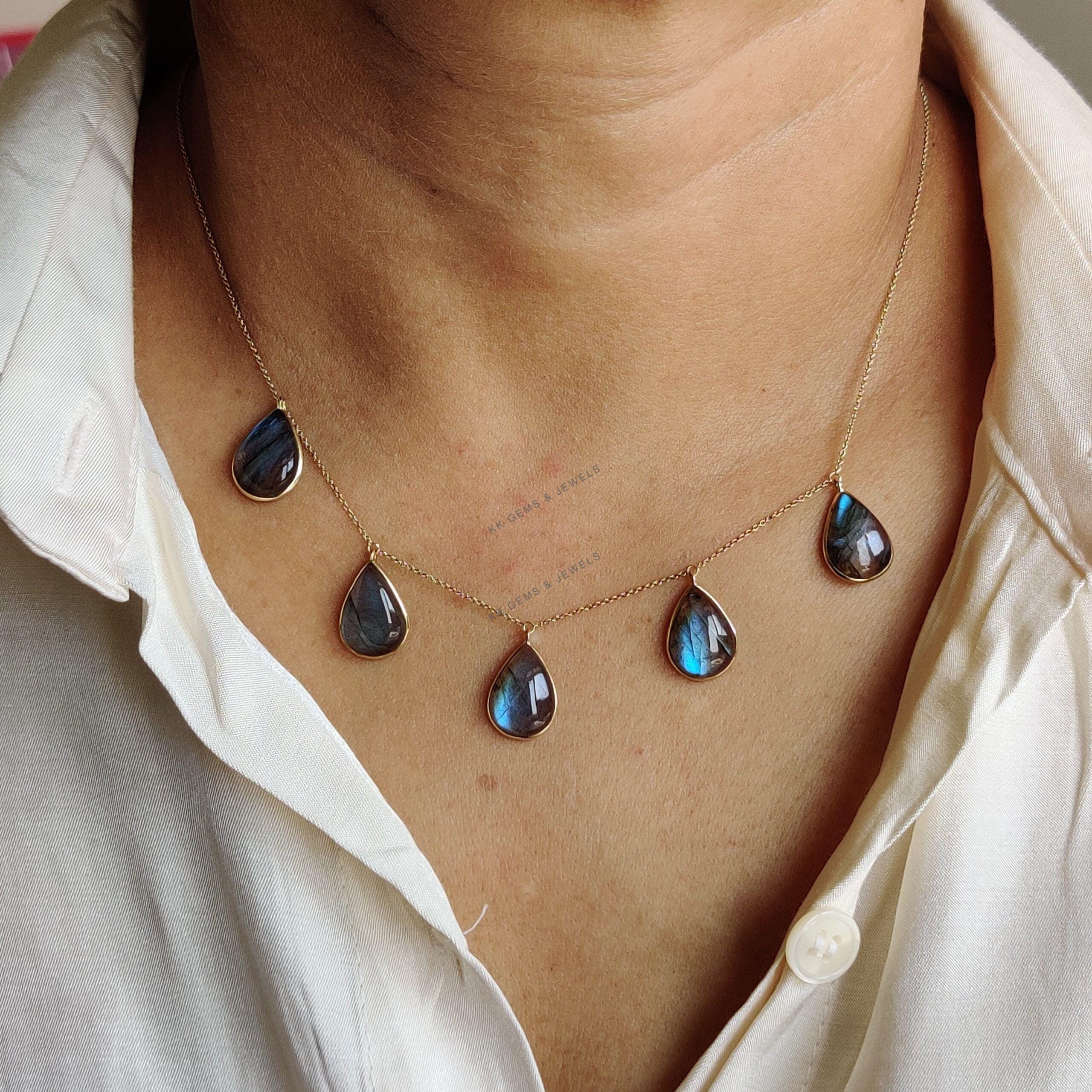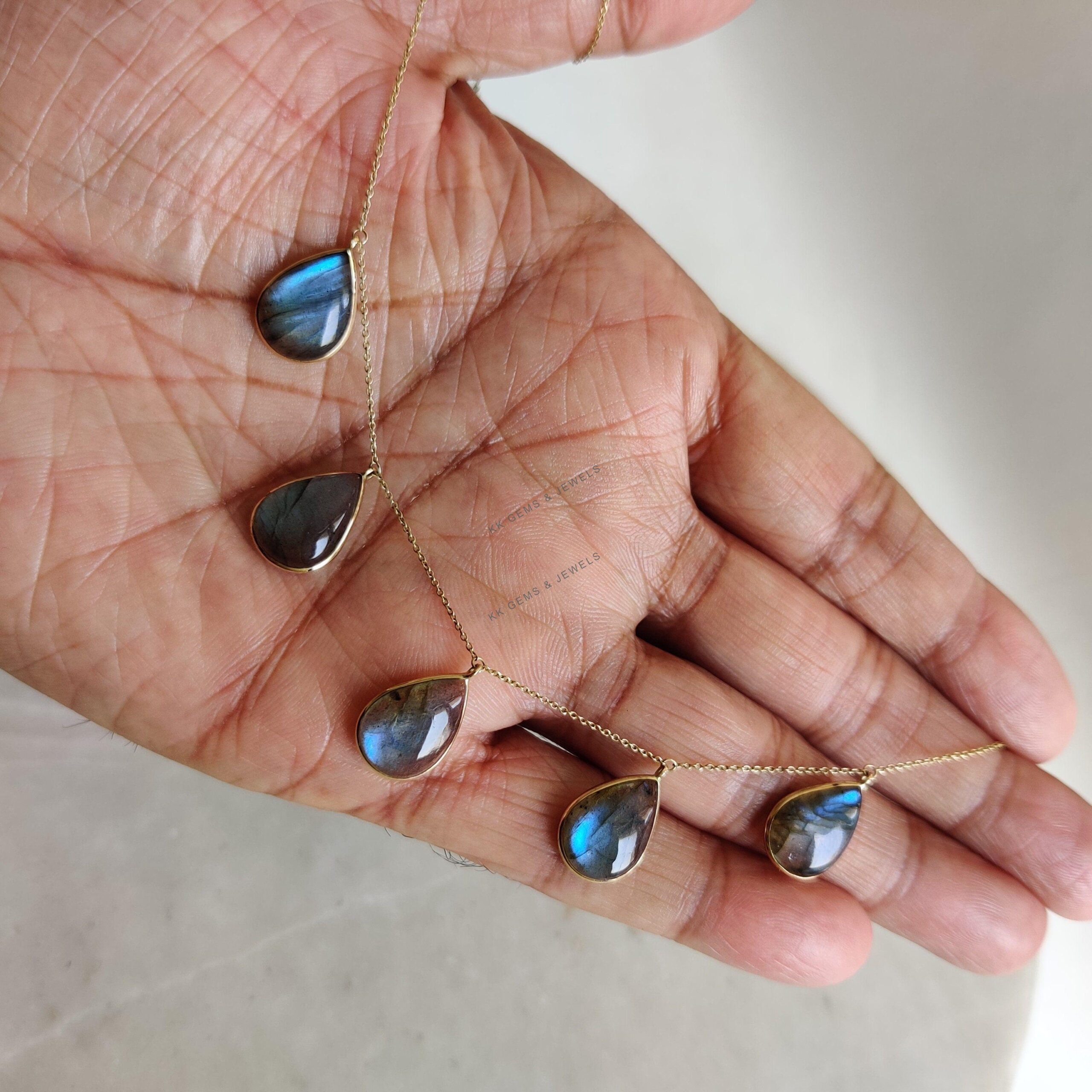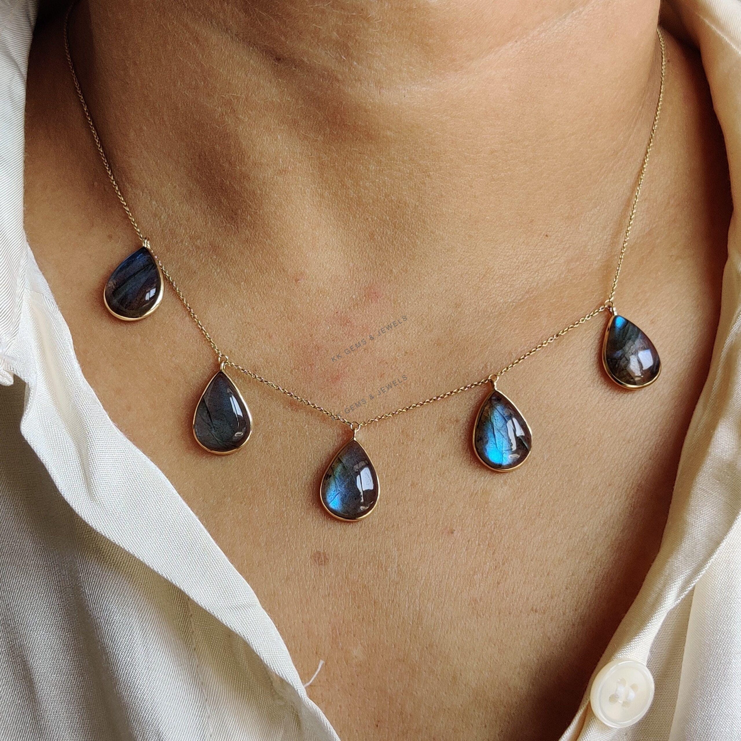 This stunning Necklace is set in 14k Solid Yellow Gold with Natural Labradorite having a beautiful blue sheen. It is an unique gemstone pendant for nearly every occasion and is completely hassle-free jewelry.