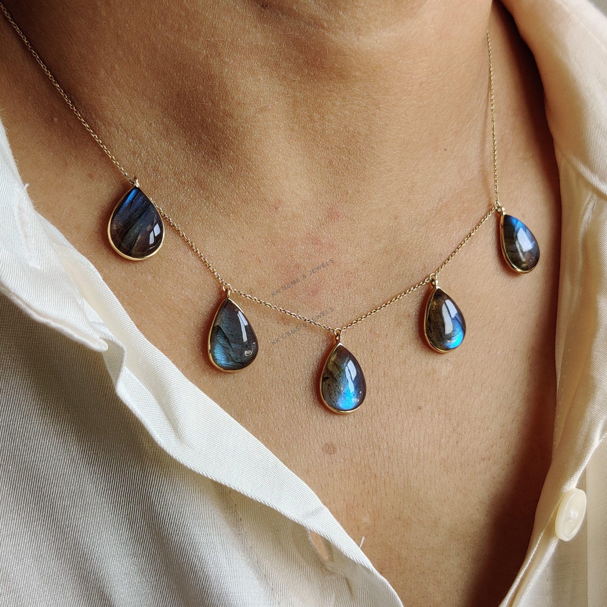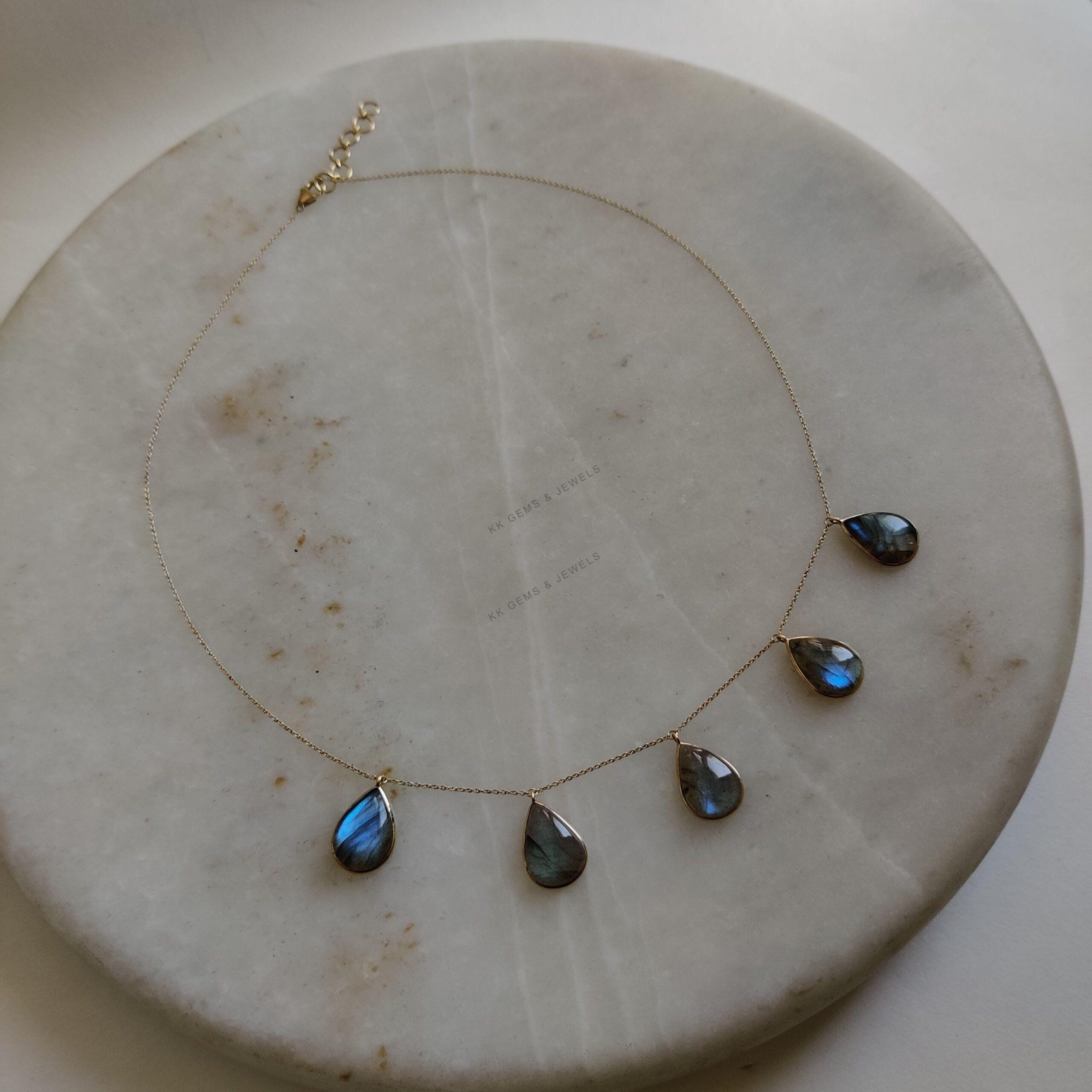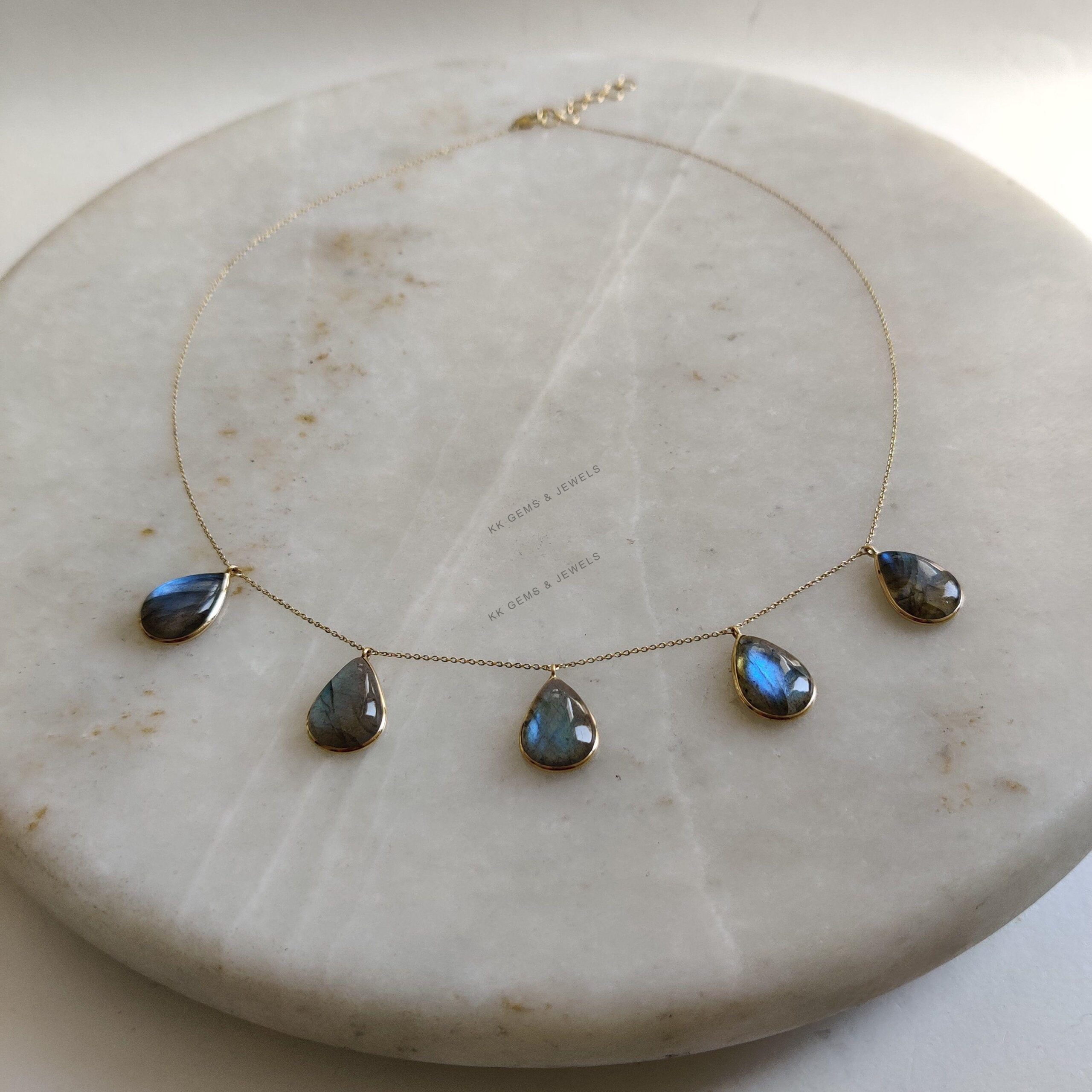 This stunning Necklace is set in 14k Solid Yellow Gold with Natural Labradorite having a beautiful blue sheen. It is an unique gemstone pendant for nearly every occasion and is completely hassle-free jewelry.