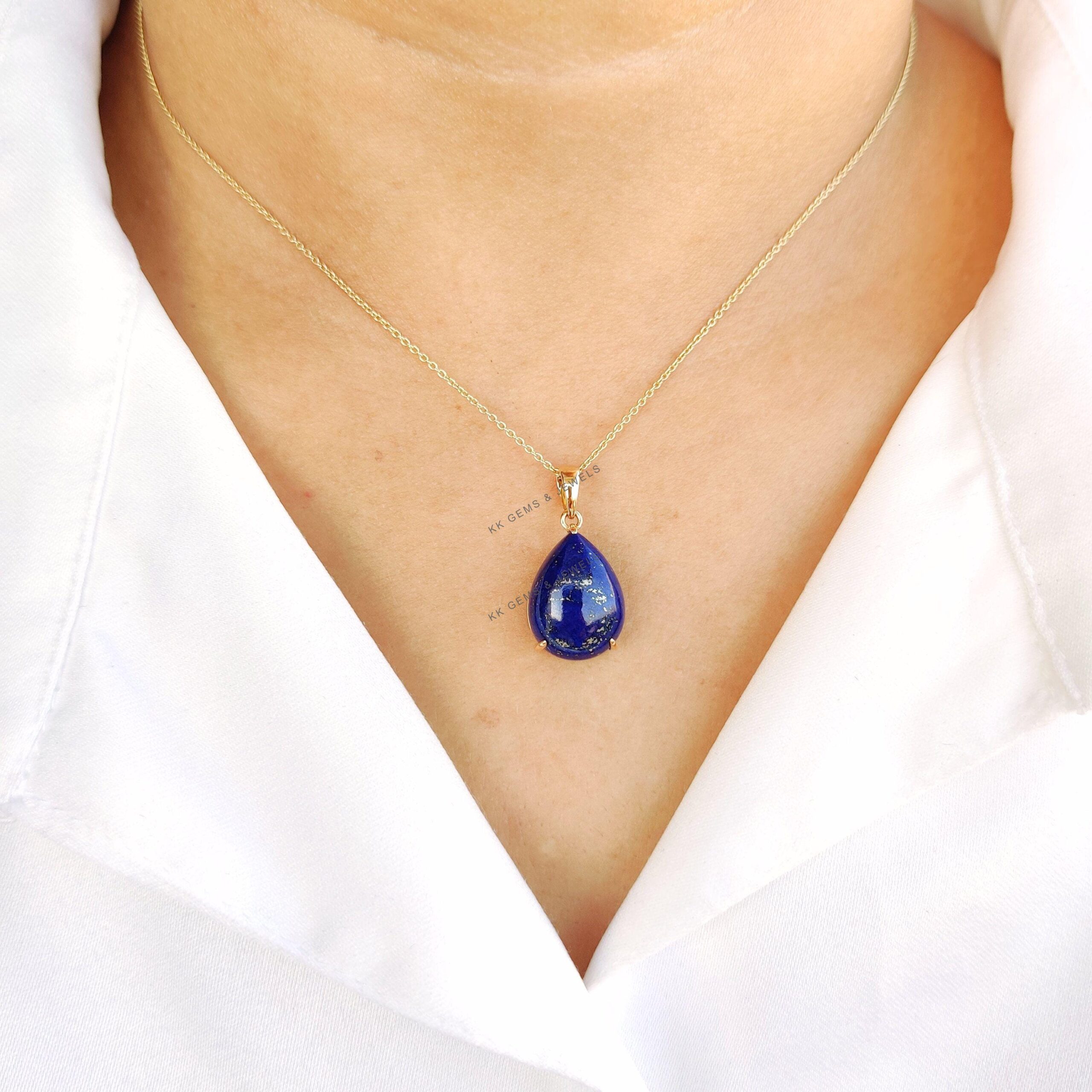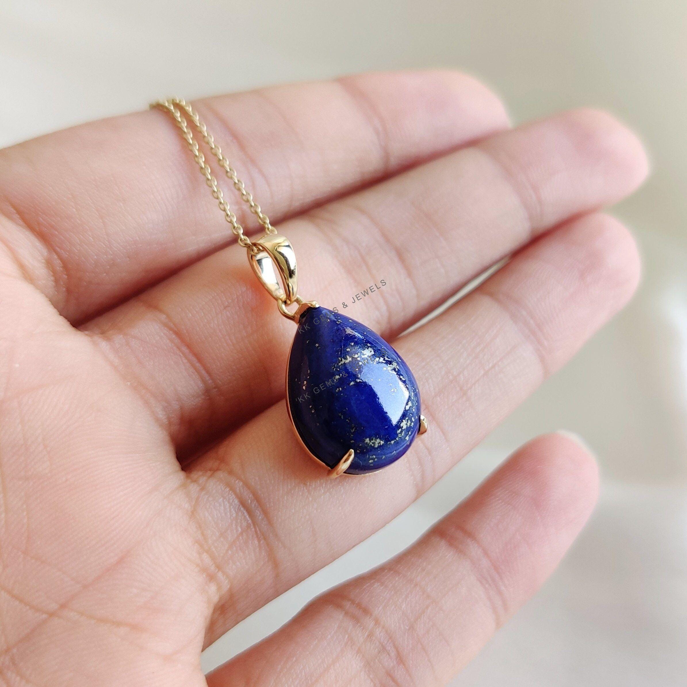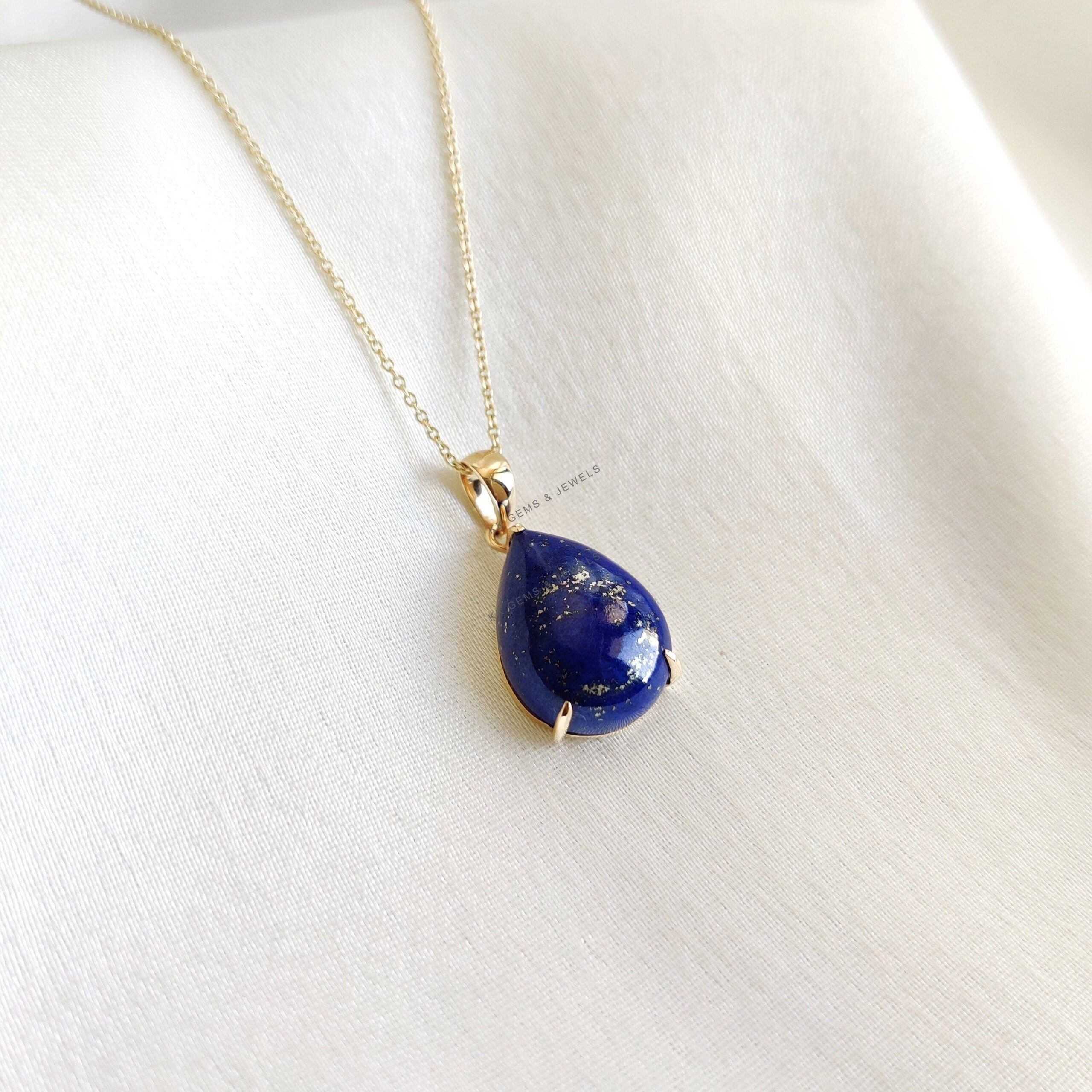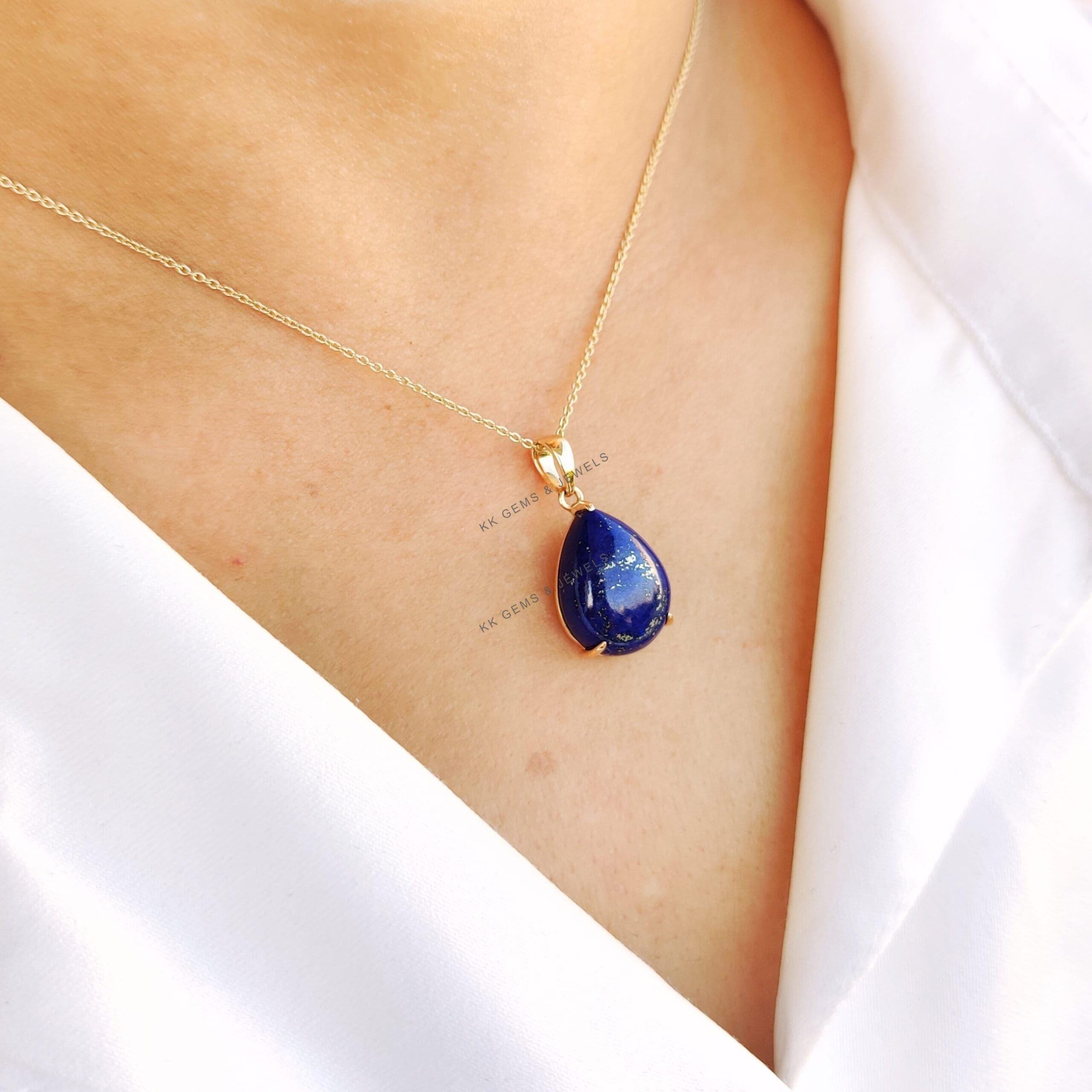 3 reviews for Pear Shape Natural Lapis Lazuli Birthstone Pendant Set in 14K Solid Gold