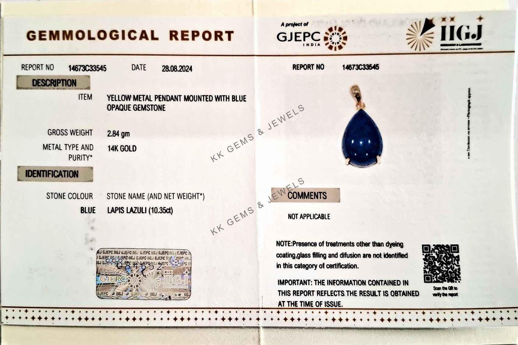 This stunning pendant is set in 14k Solid Yellow Gold with Natural Lapis Lazuli with utmost precision. It is an unique gemstone pendant for nearly every occasion and is completely hassle-free jewelry.
