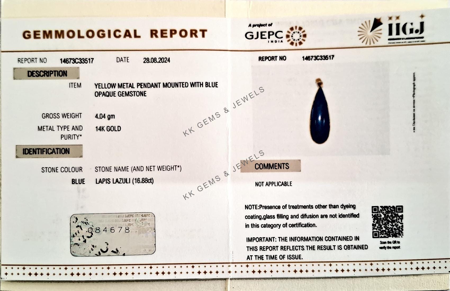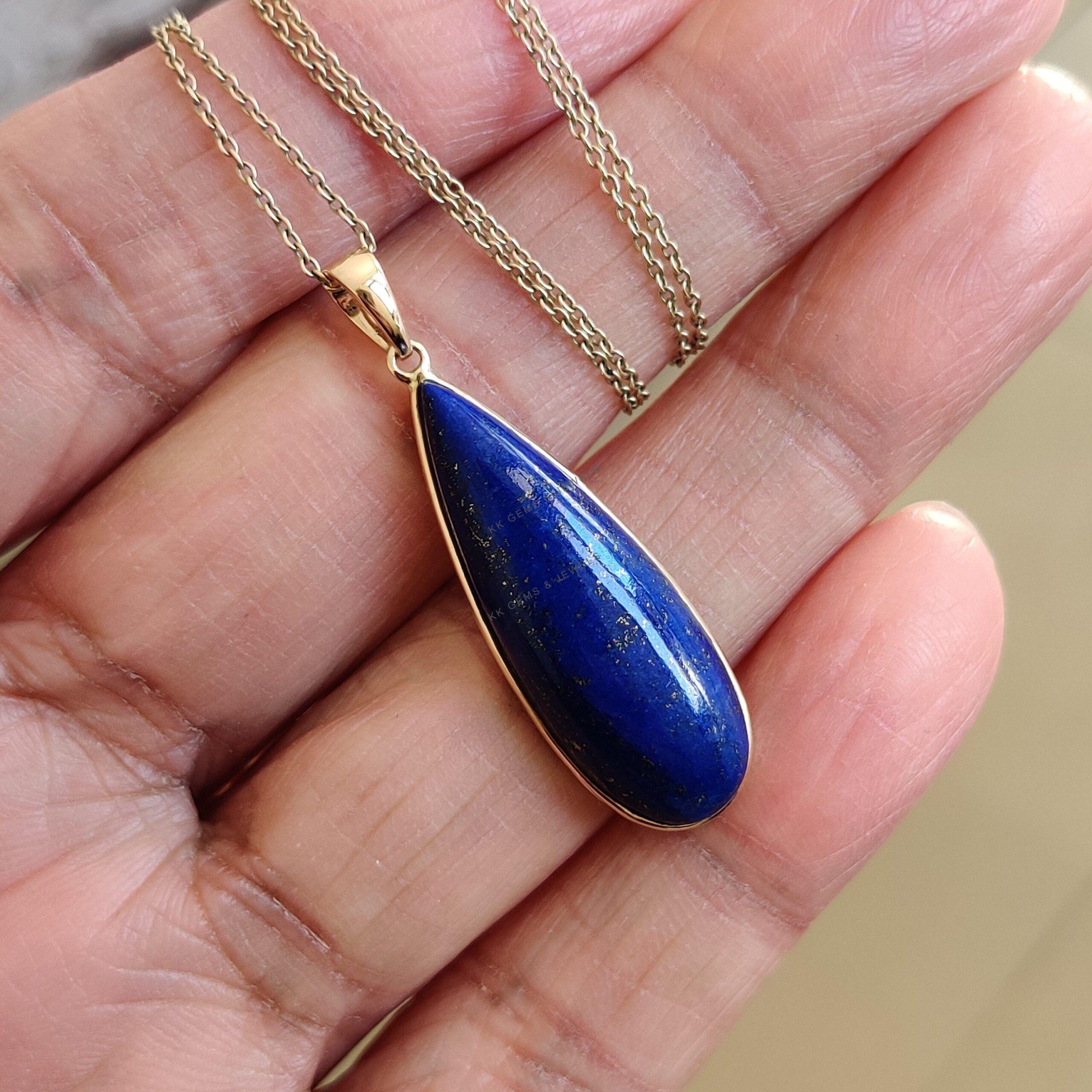 Be the first to review “Teardrop Shape Natural Lapis Lazuli Pendant Set in 14K Solid Gold Bezel Setting”