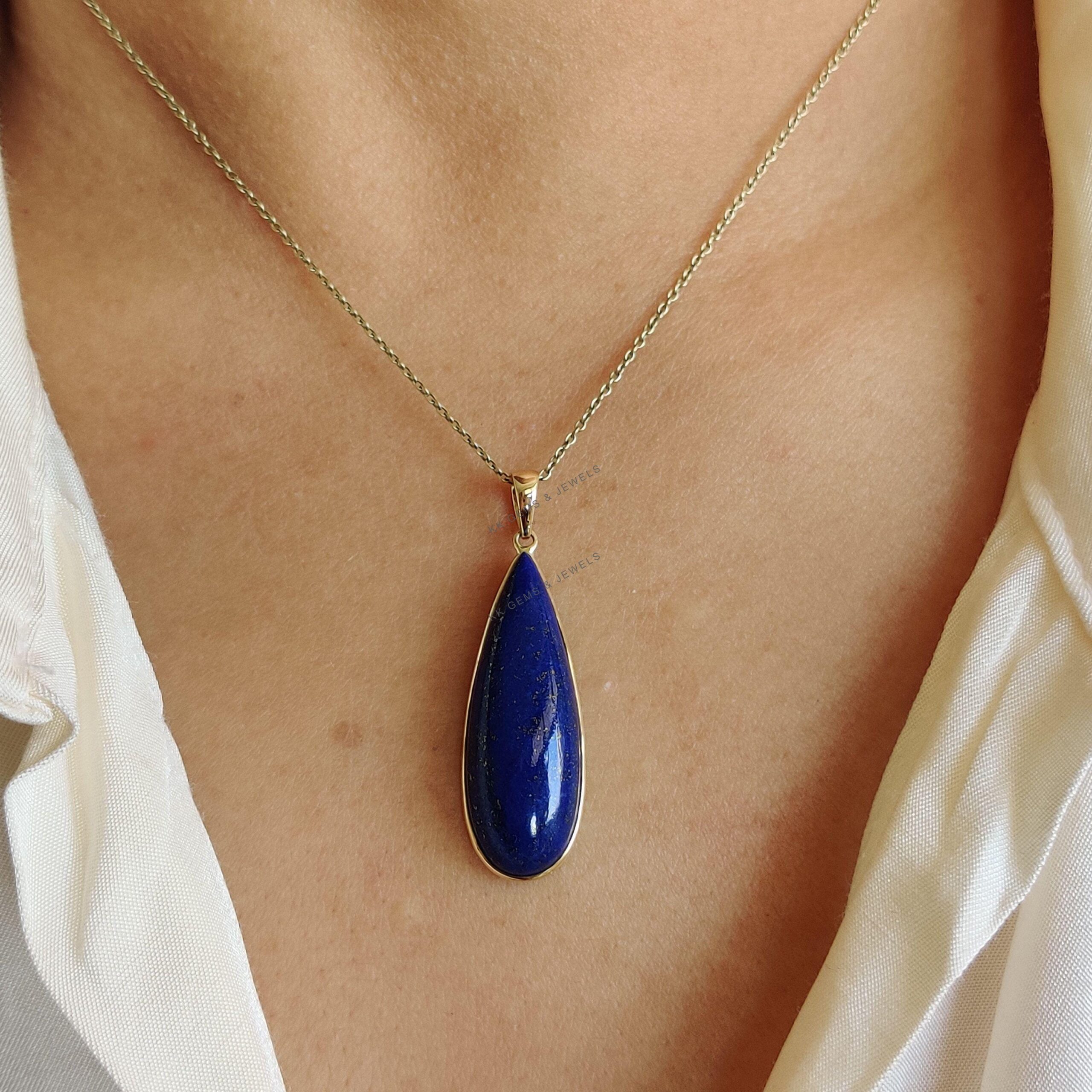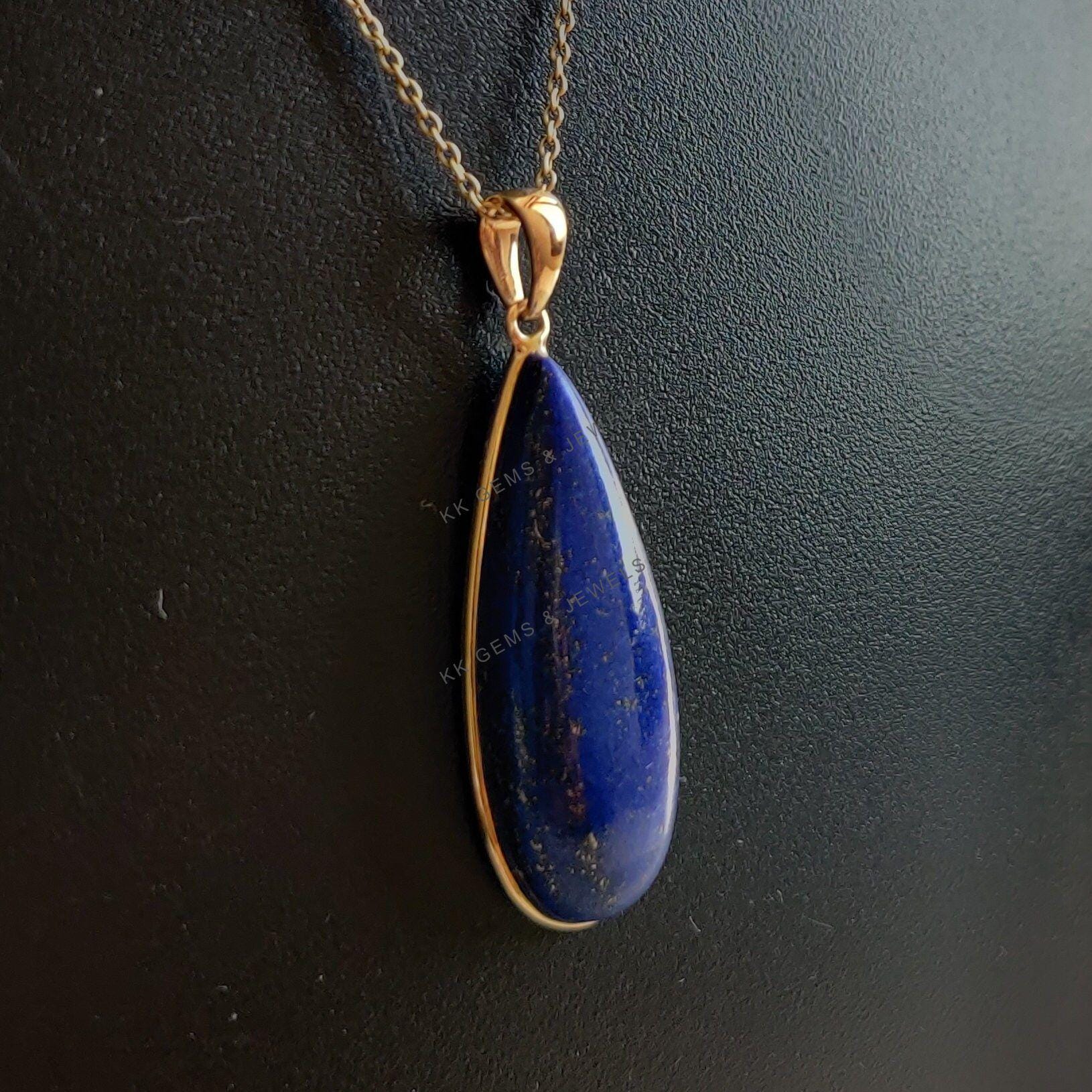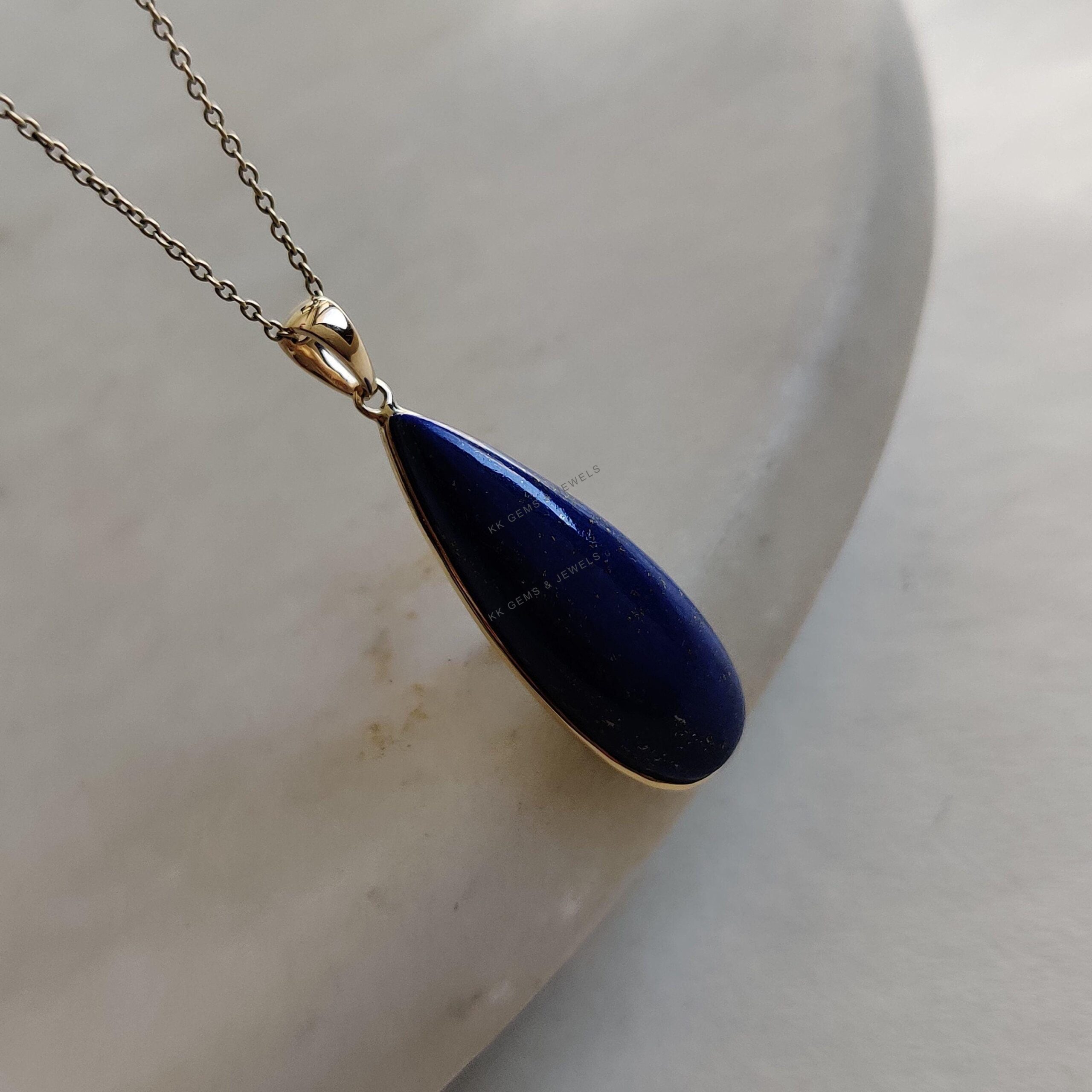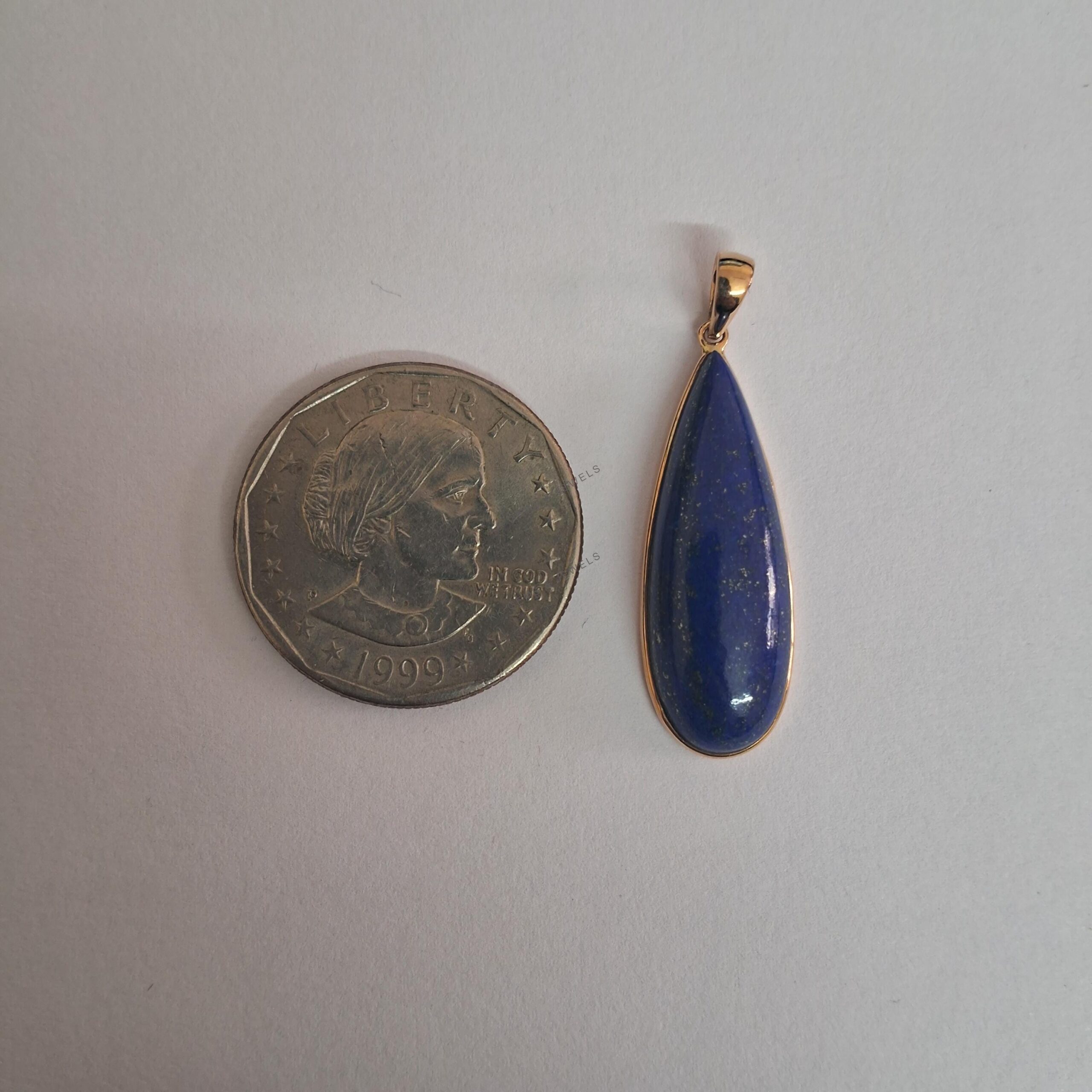 Teardrop Shape Natural Lapis Lazuli Pendant Set in 14K Solid Gold Bezel Setting