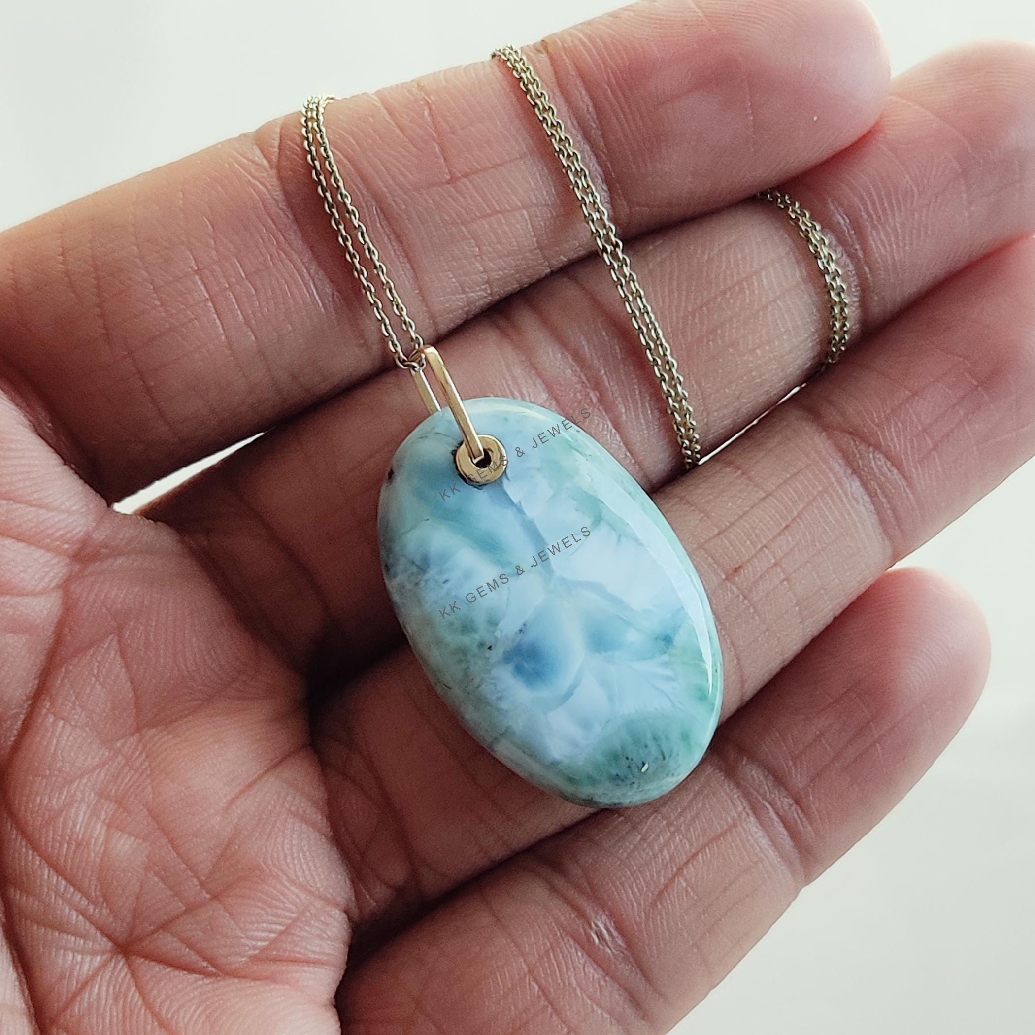 This stunning pendant is set in 14k Solid Yellow Gold with Natural Larimar with utmost precision. It is an unique gemstone pendant for nearly every occasion and is completely hassle-free jewelry. ✓ ABOUT GEMSTONE: Larimar is a unique and rare…
