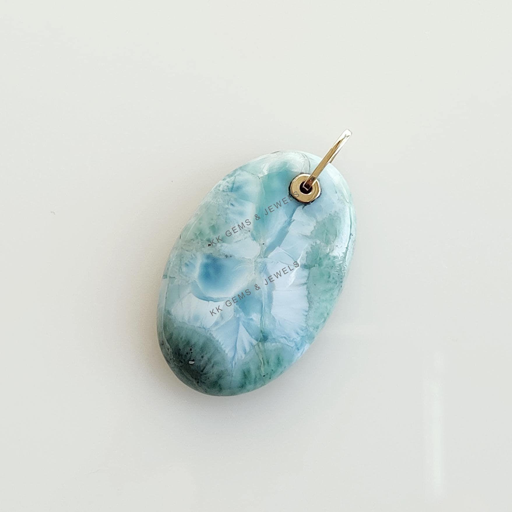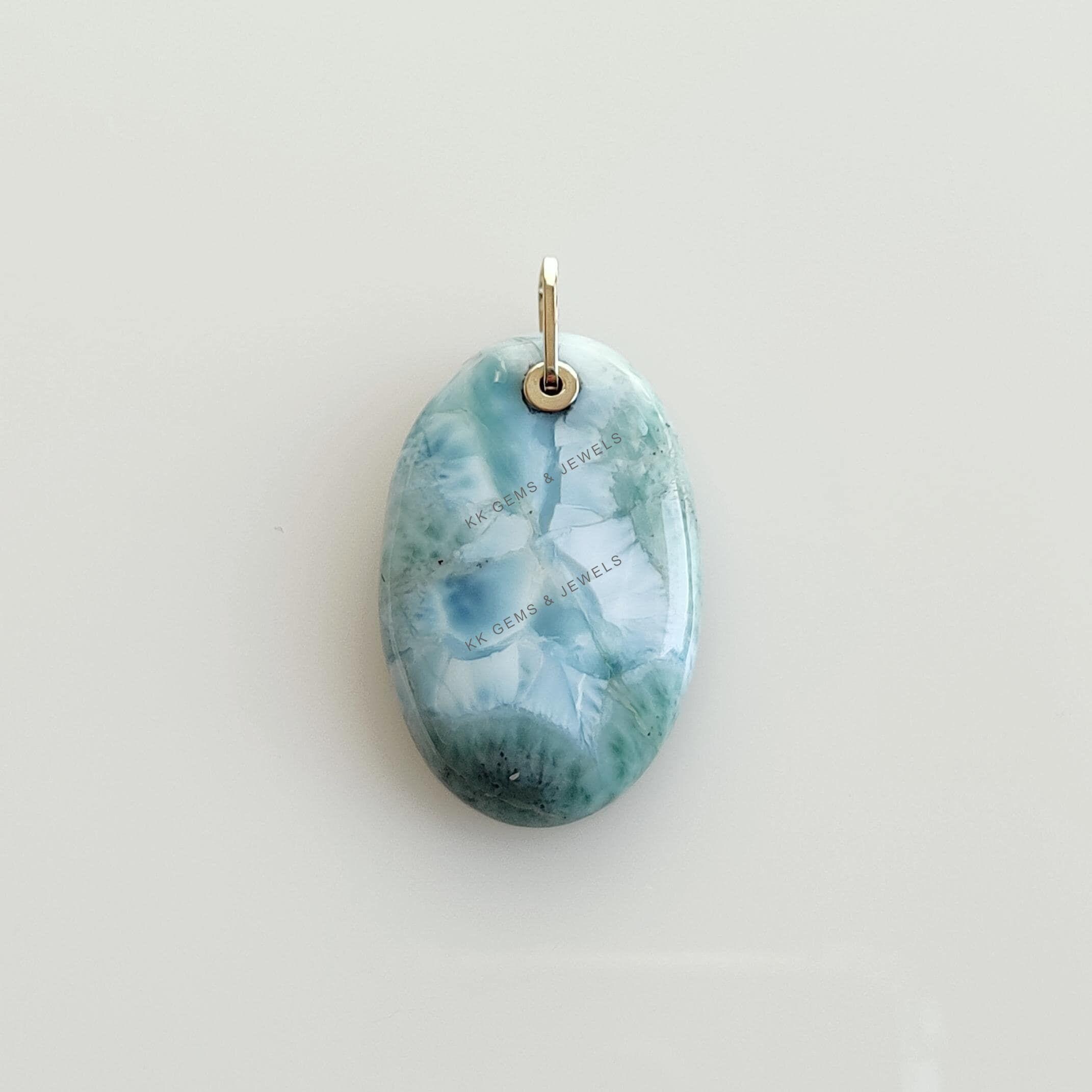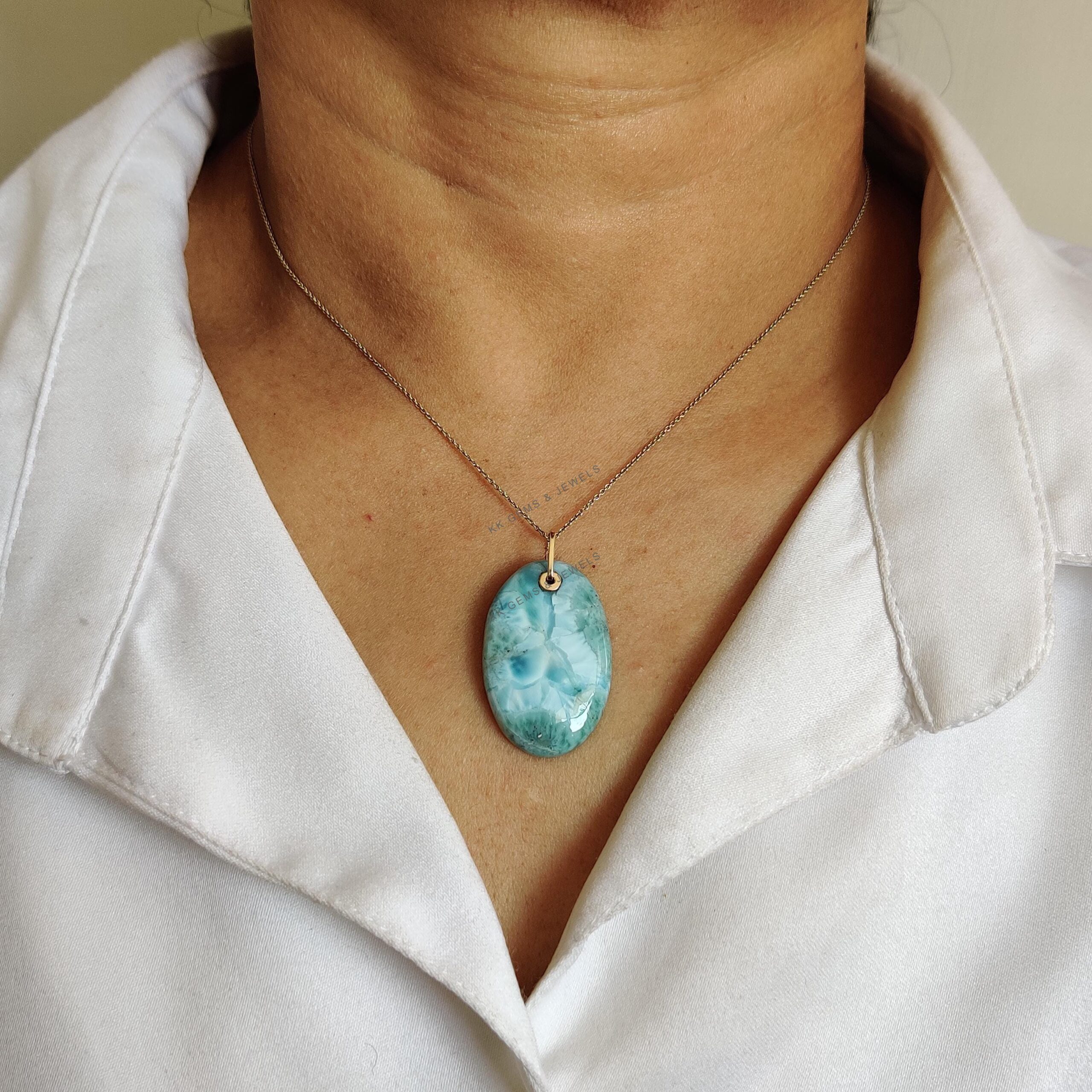 This stunning pendant is set in 14k Solid Yellow Gold with Natural Larimar with utmost precision. It is an unique gemstone pendant for nearly every occasion and is completely hassle-free jewelry.
