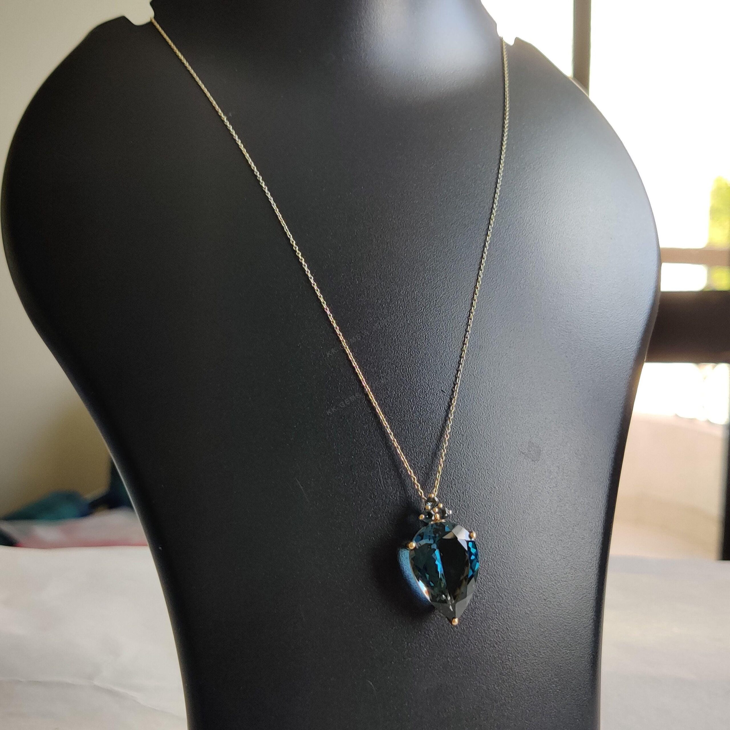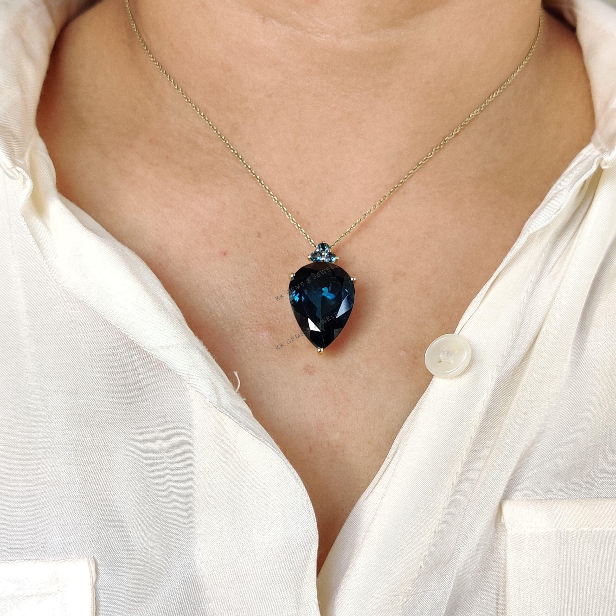 1 review for Pear Shape Natural London Blue Topaz Pendant, Set in 14K Solid Gold, Birthstone