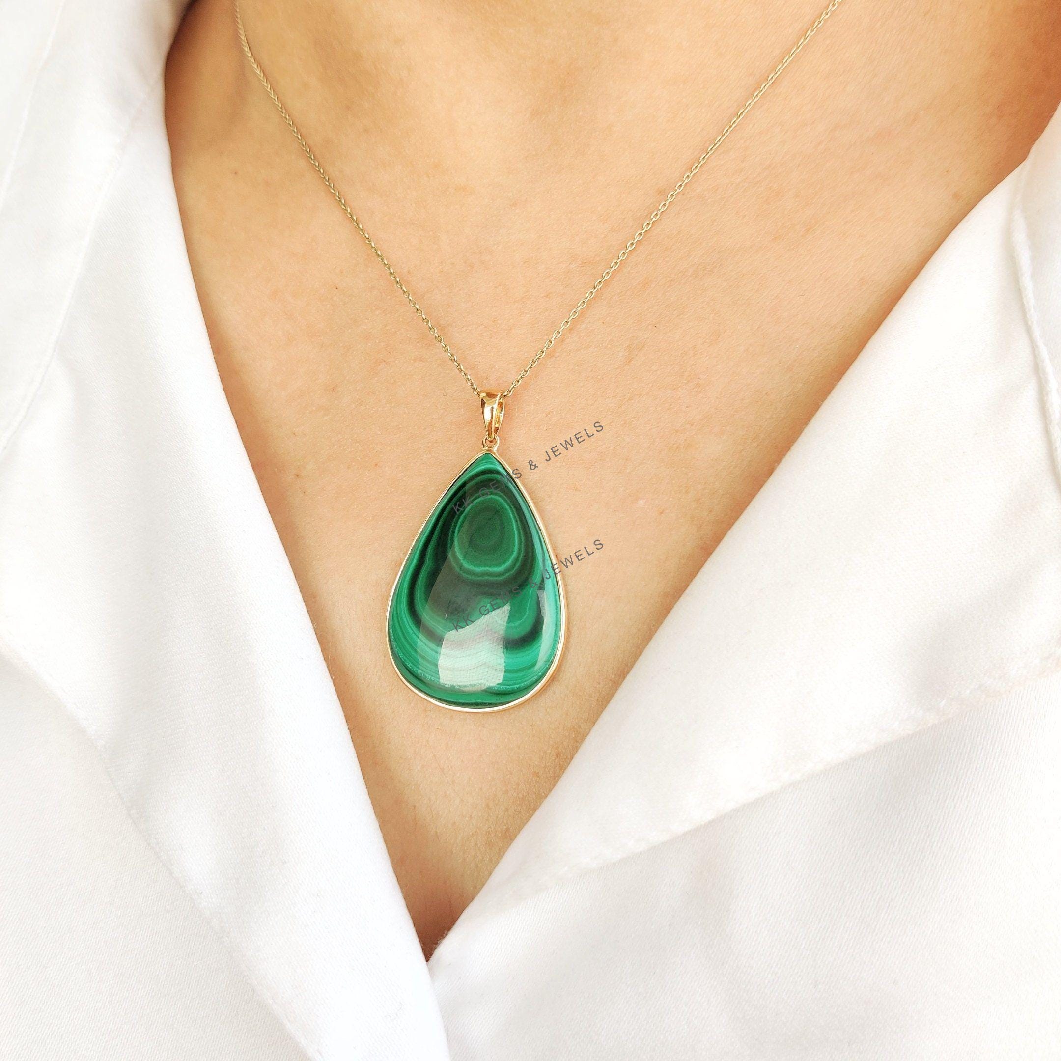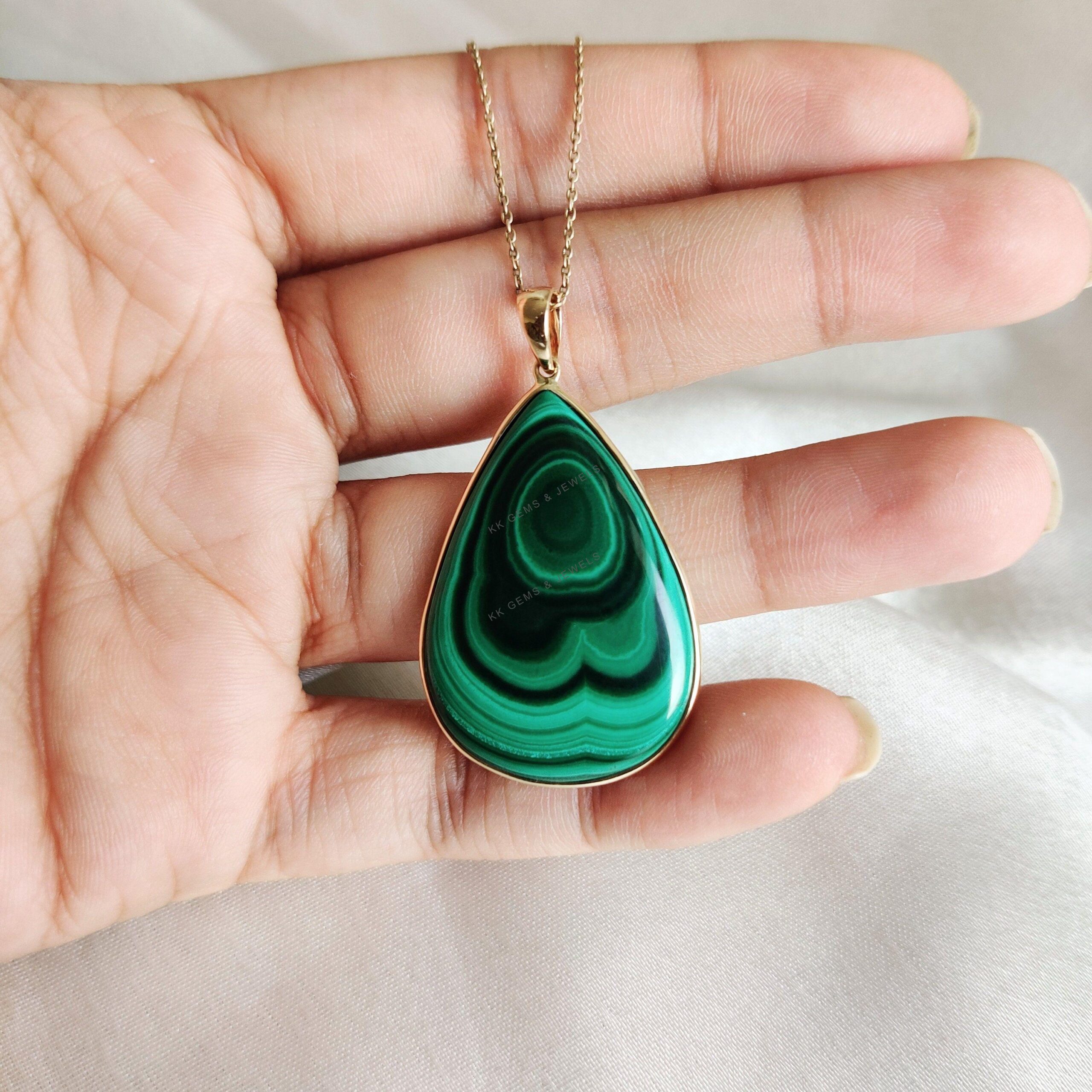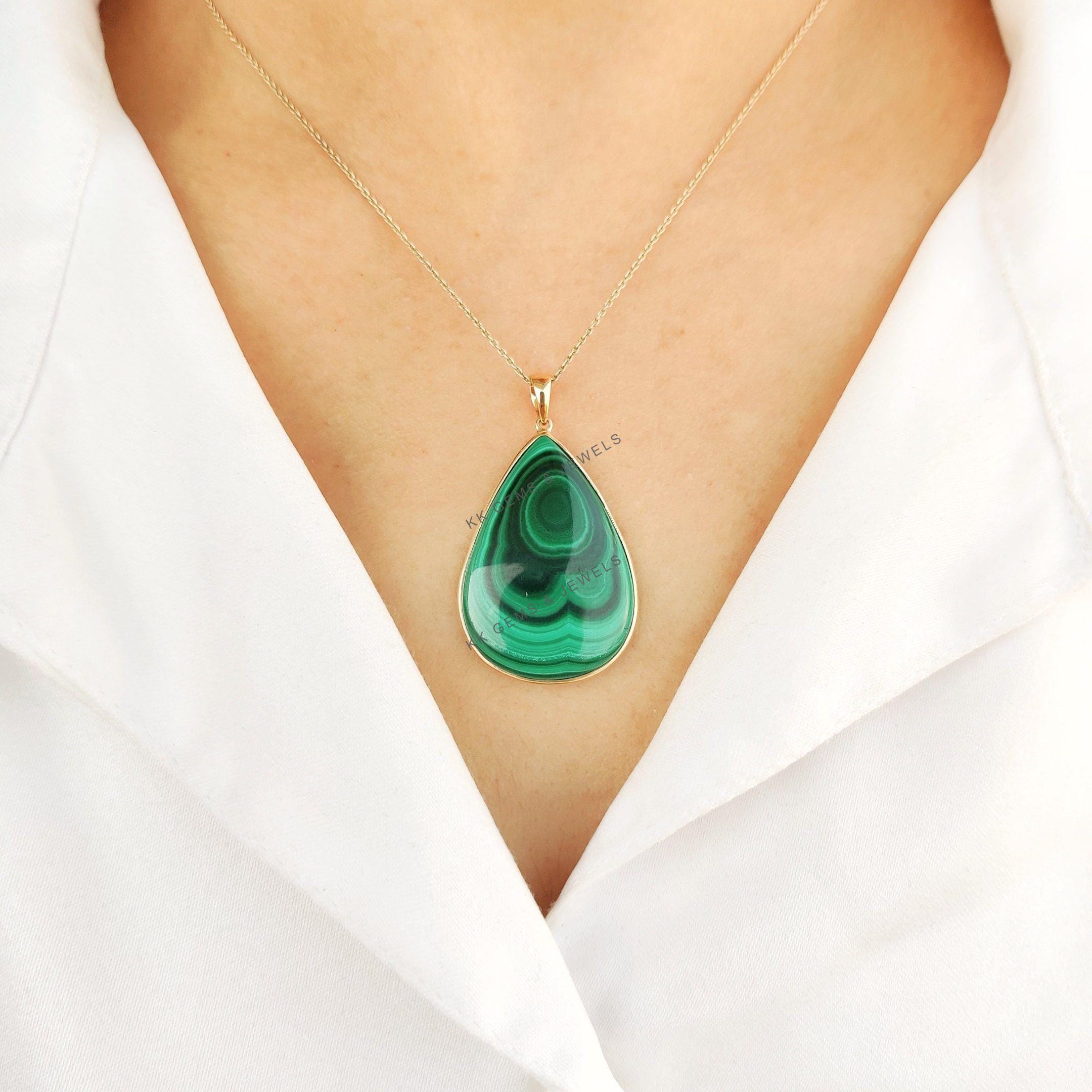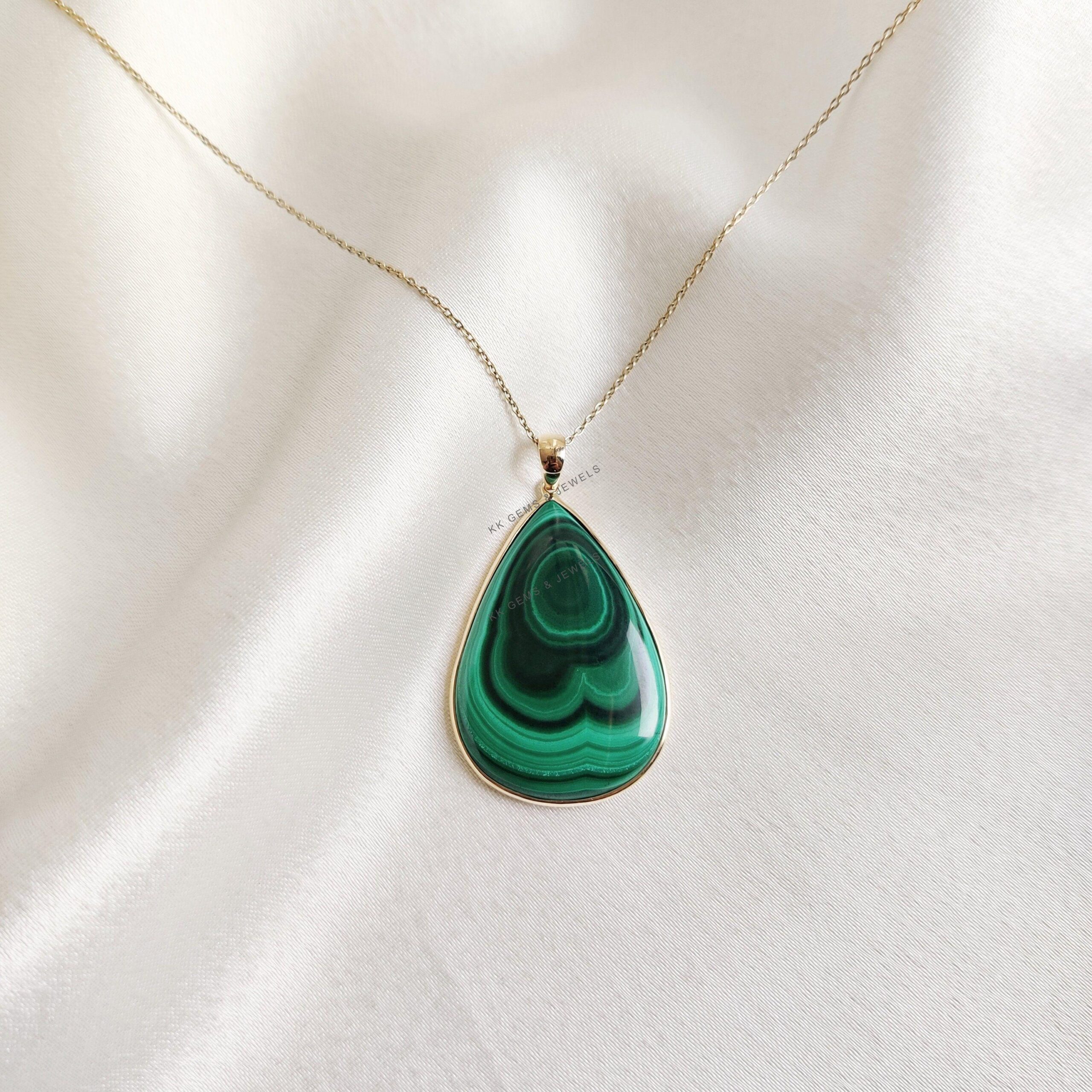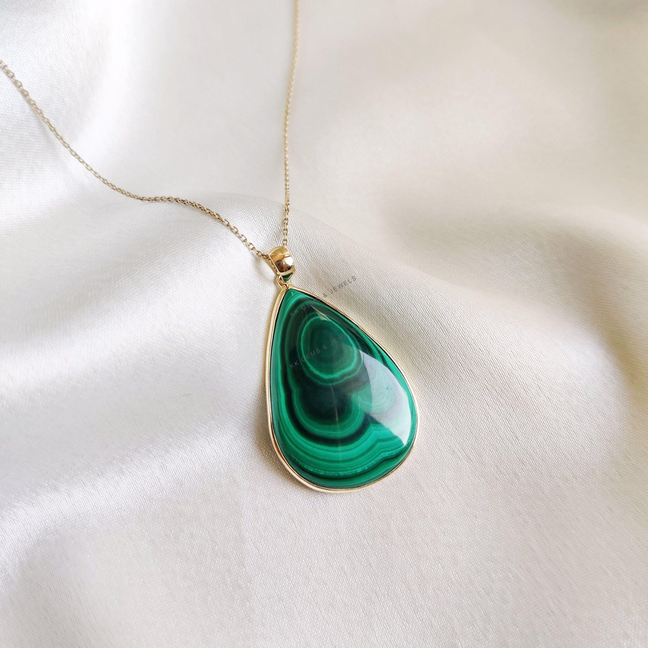 This stunning pendant is set in 14k Solid Yellow Gold with Natural Malachite with utmost precision. It is an unique gemstone pendant for nearly every occasion and is completely hassle-free jewelry. ✓ ABOUT GEMSTONE: Malachite is believed to have protective…