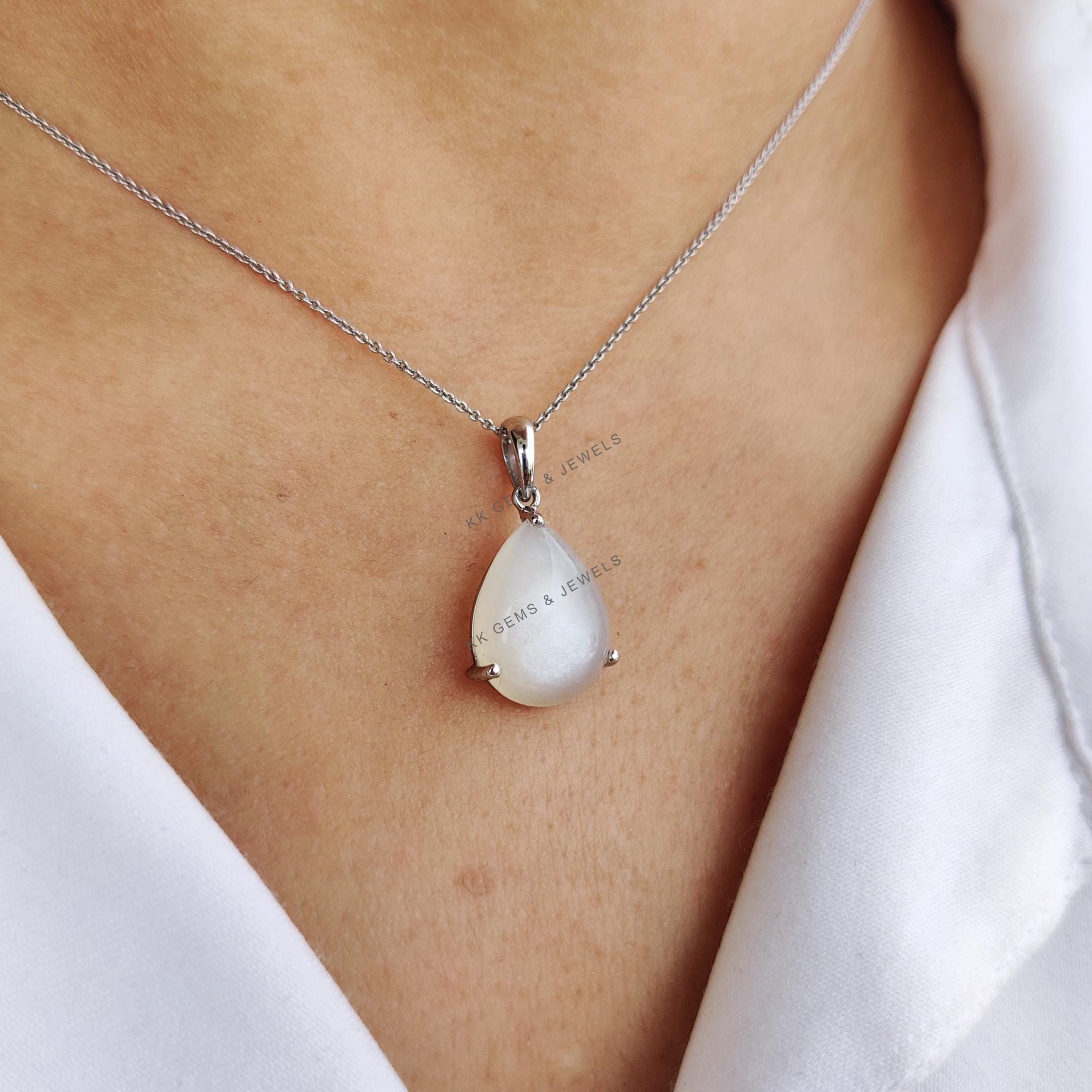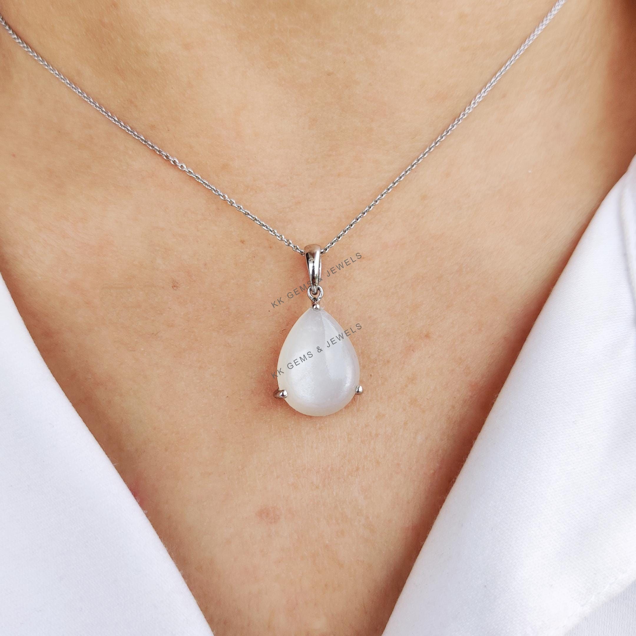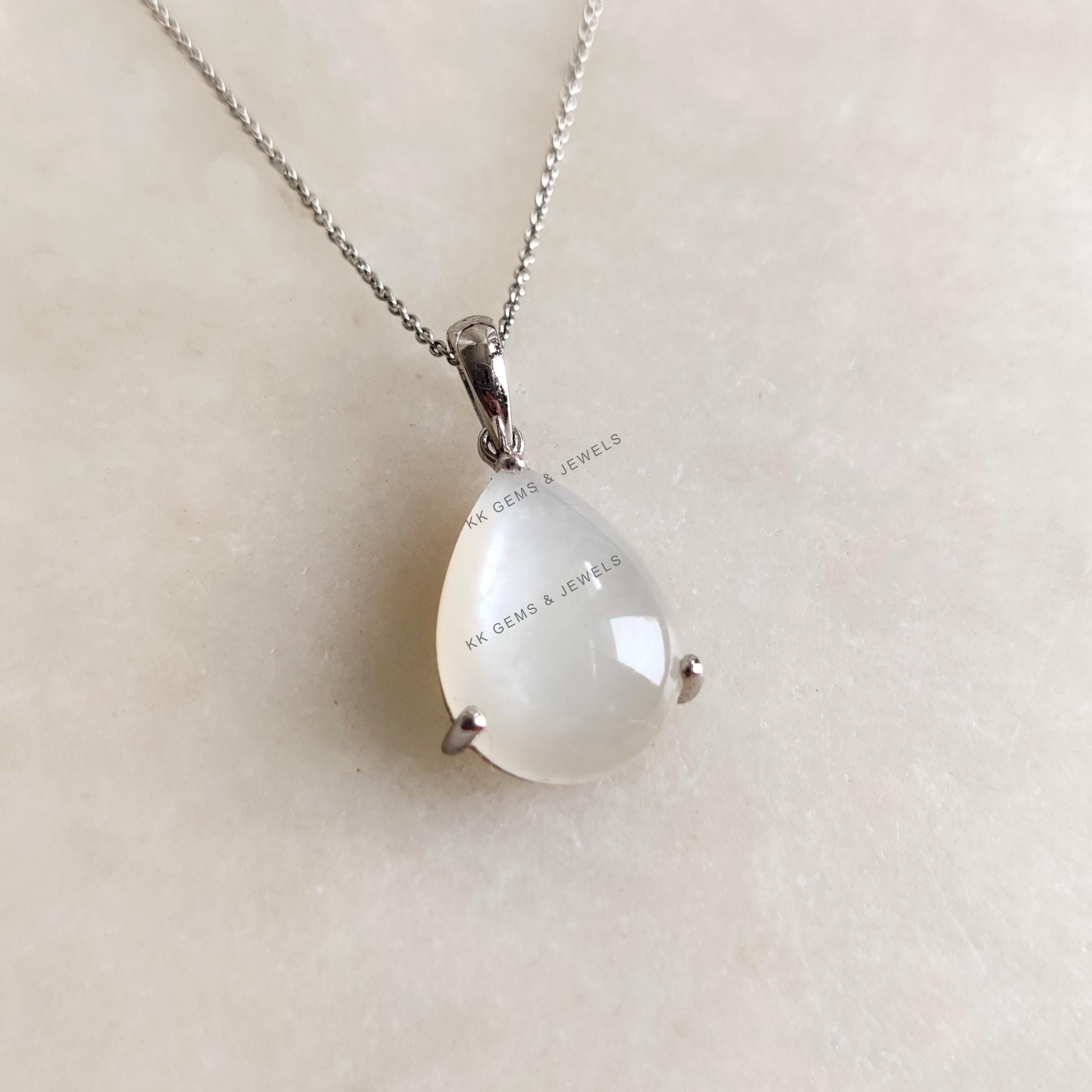 This stunning pendant is set in 14k Solid White Gold with Natural White Moonstone with utmost precision. It is an unique gemstone pendant for nearly every occasion and is completely hassle-free jewelry. ✓ ABOUT GEMSTONE: White moonstone, with its milky…