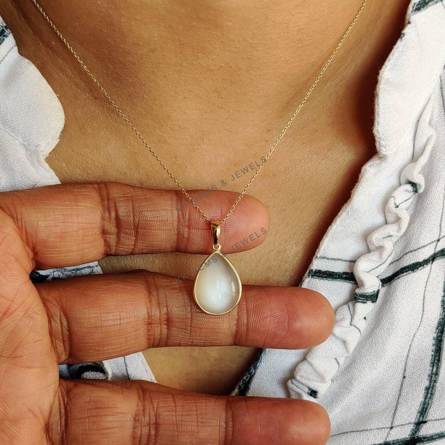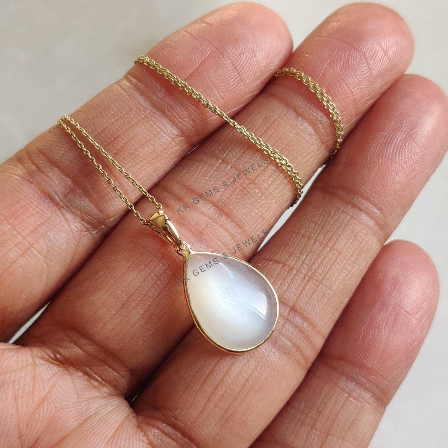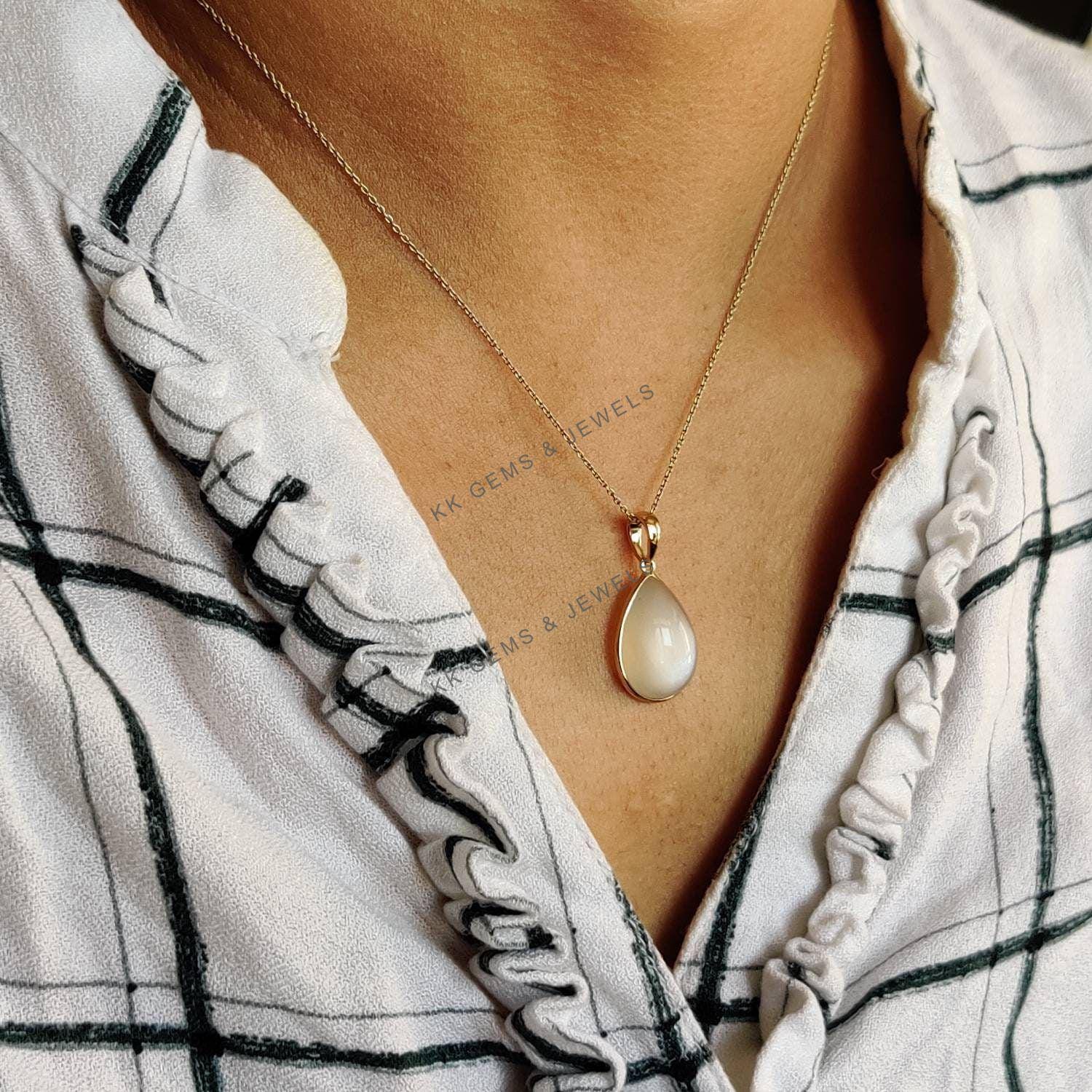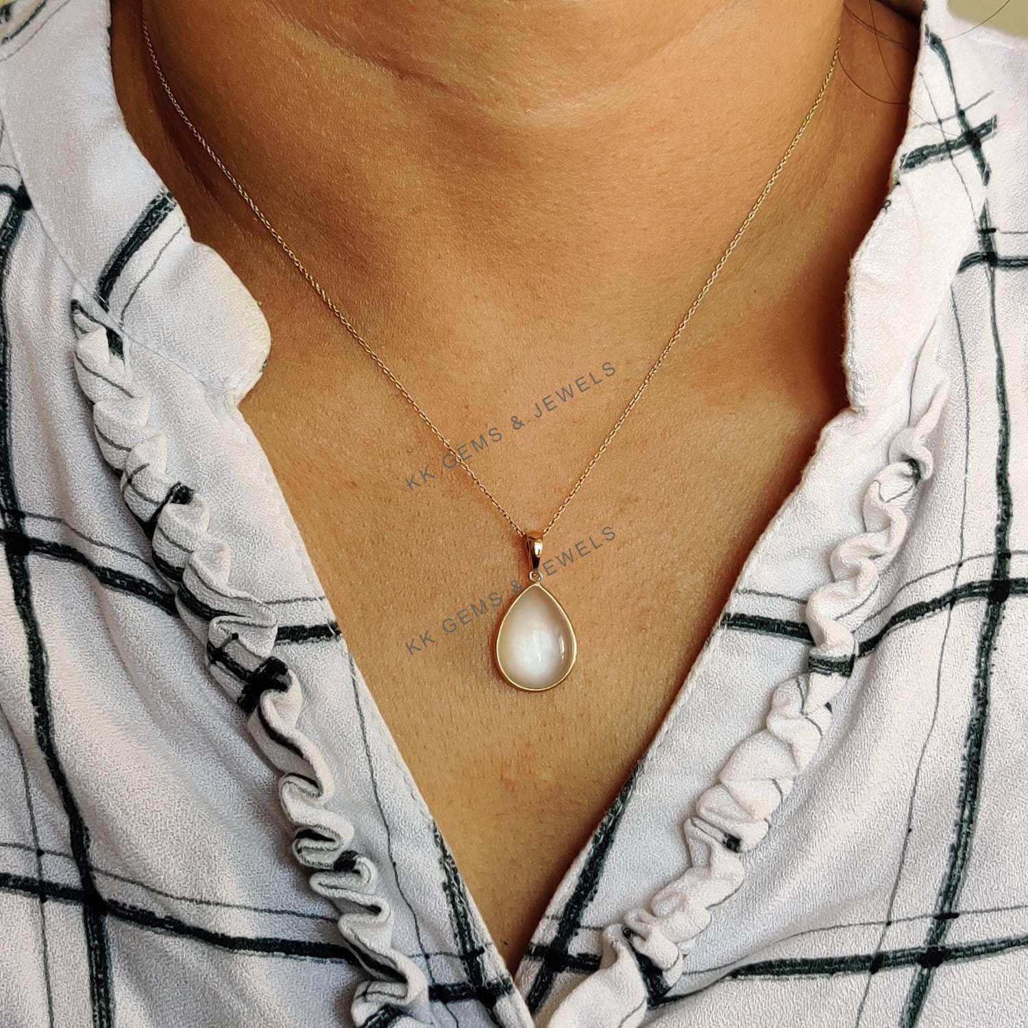 This stunning pendant is set in 14k Solid Yellow Gold with Natural White Moonstone with utmost precision. It is an unique gemstone pendant for nearly every occasion and is completely hassle-free jewelry. ABOUT GEMSTONE: White moonstone, with its milky opalescence…