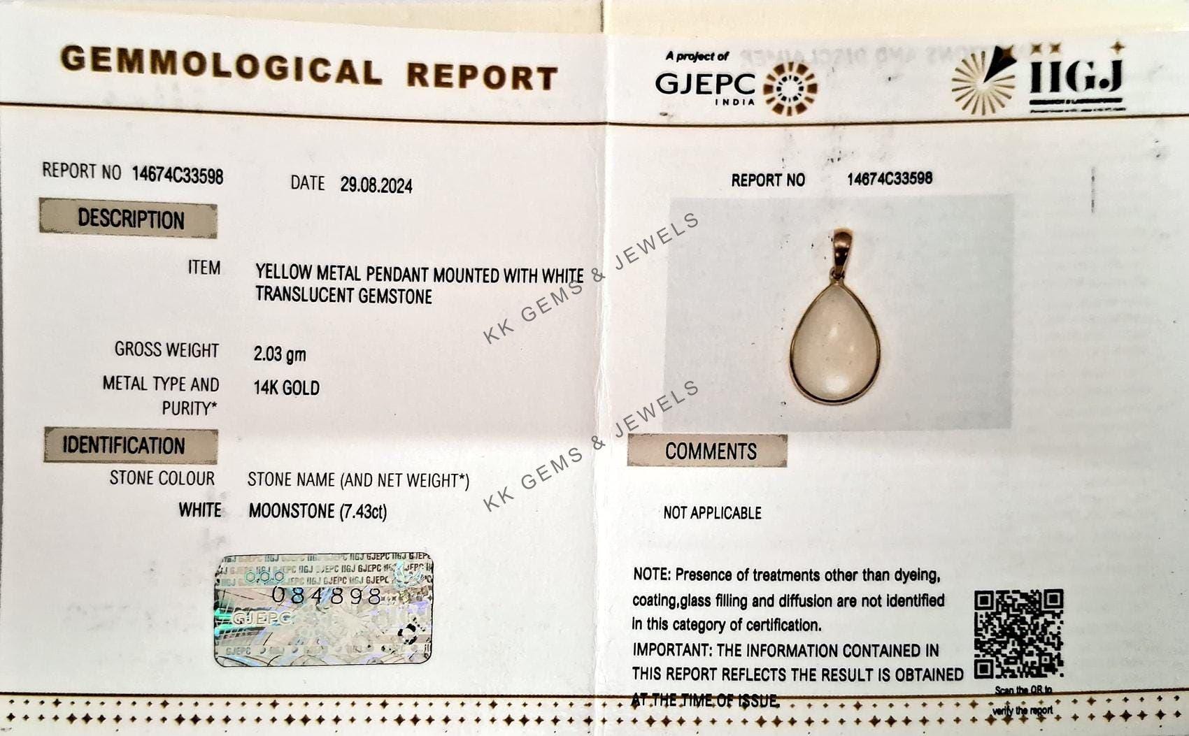 This stunning pendant is set in 14k Solid Yellow Gold with Natural White Moonstone with utmost precision. It is an unique gemstone pendant for nearly every occasion and is completely hassle-free jewelry.