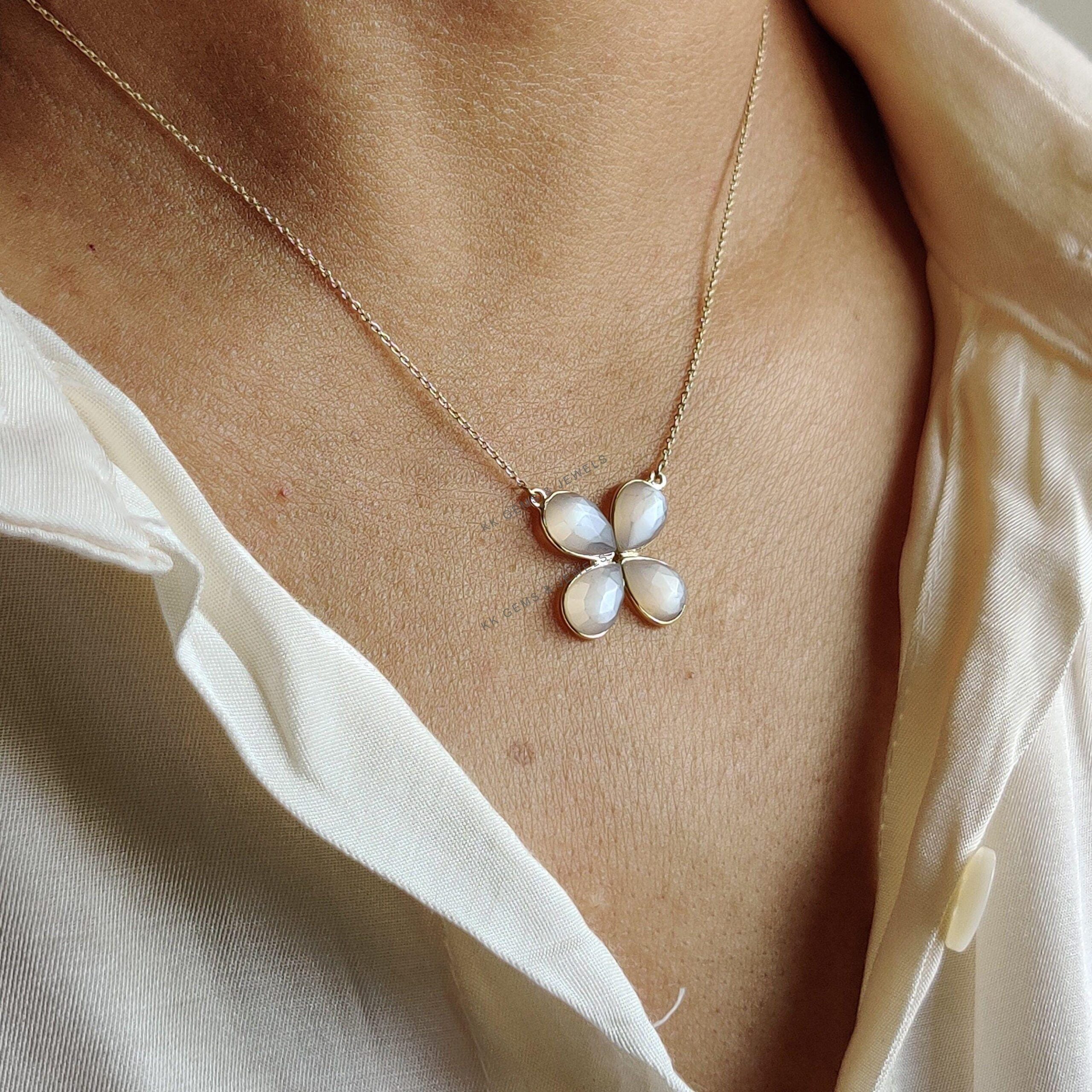 This stunning pendant is set in 14k Solid Yellow Gold with Natural White Moonstone with utmost precision. It is an unique gemstone pendant for nearly every occasion and is completely hassle-free jewelry. ✓ ABOUT GEMSTONE: White moonstone, with its milky…