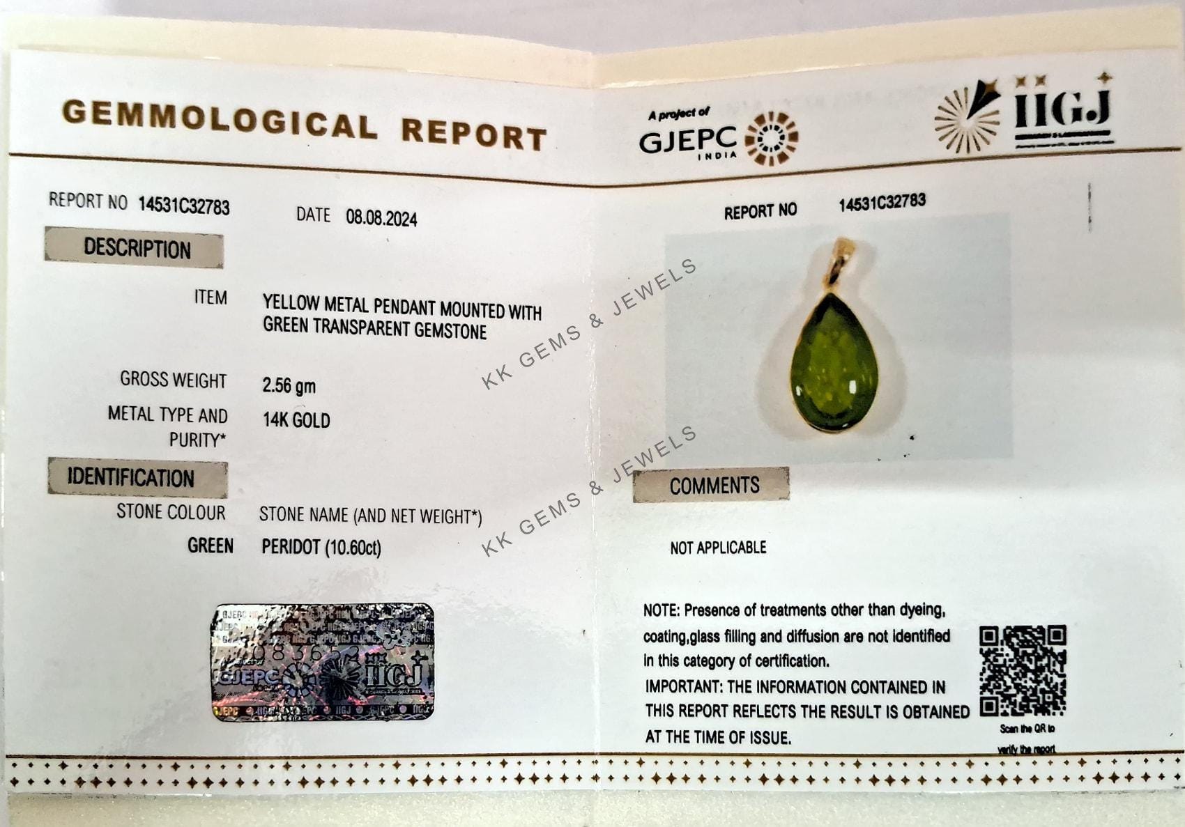 This stunning pendant is set in 14k Solid Yellow Gold with Natural Peridot with utmost precision. It is an unique gemstone Pendant for nearly every occasion and is completely hassle-free jewelry.