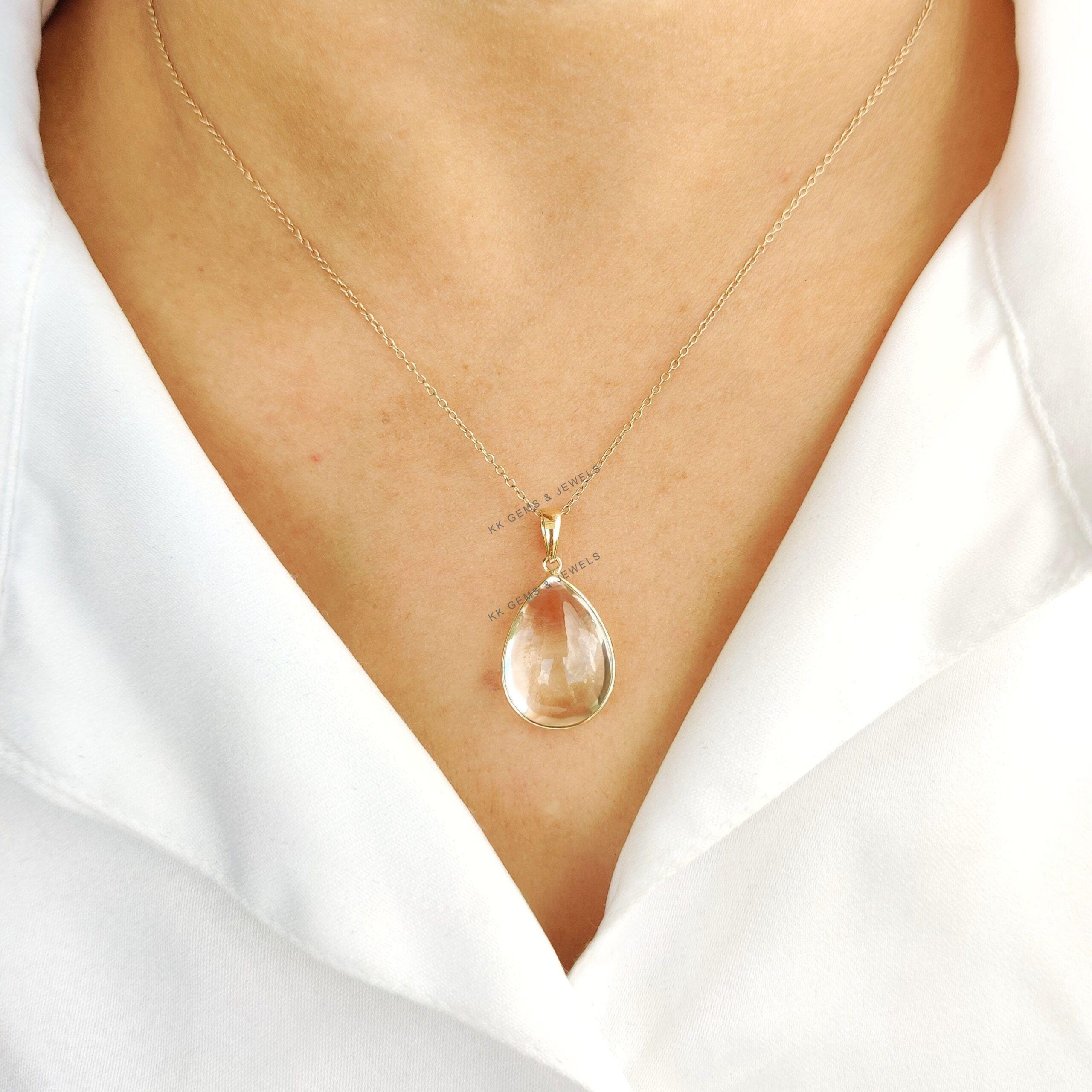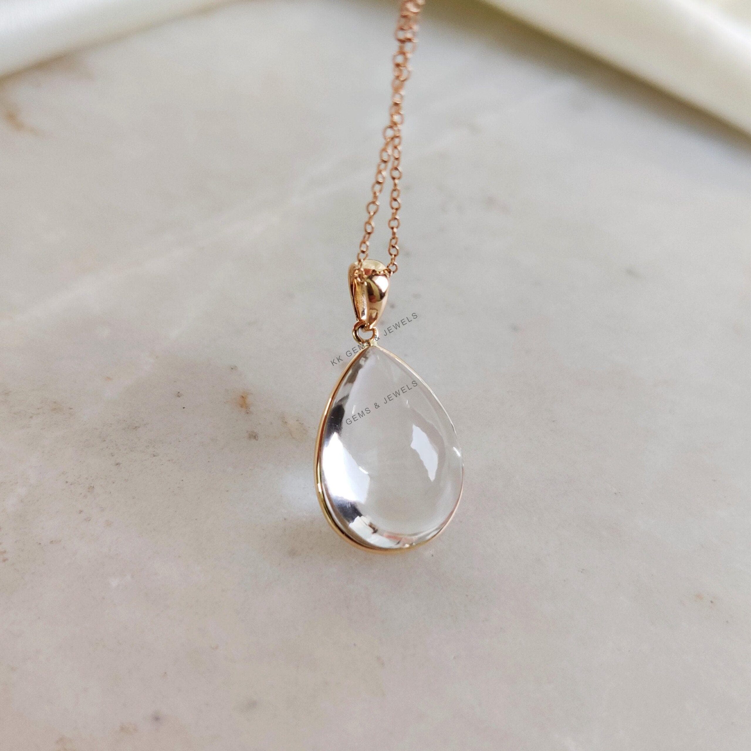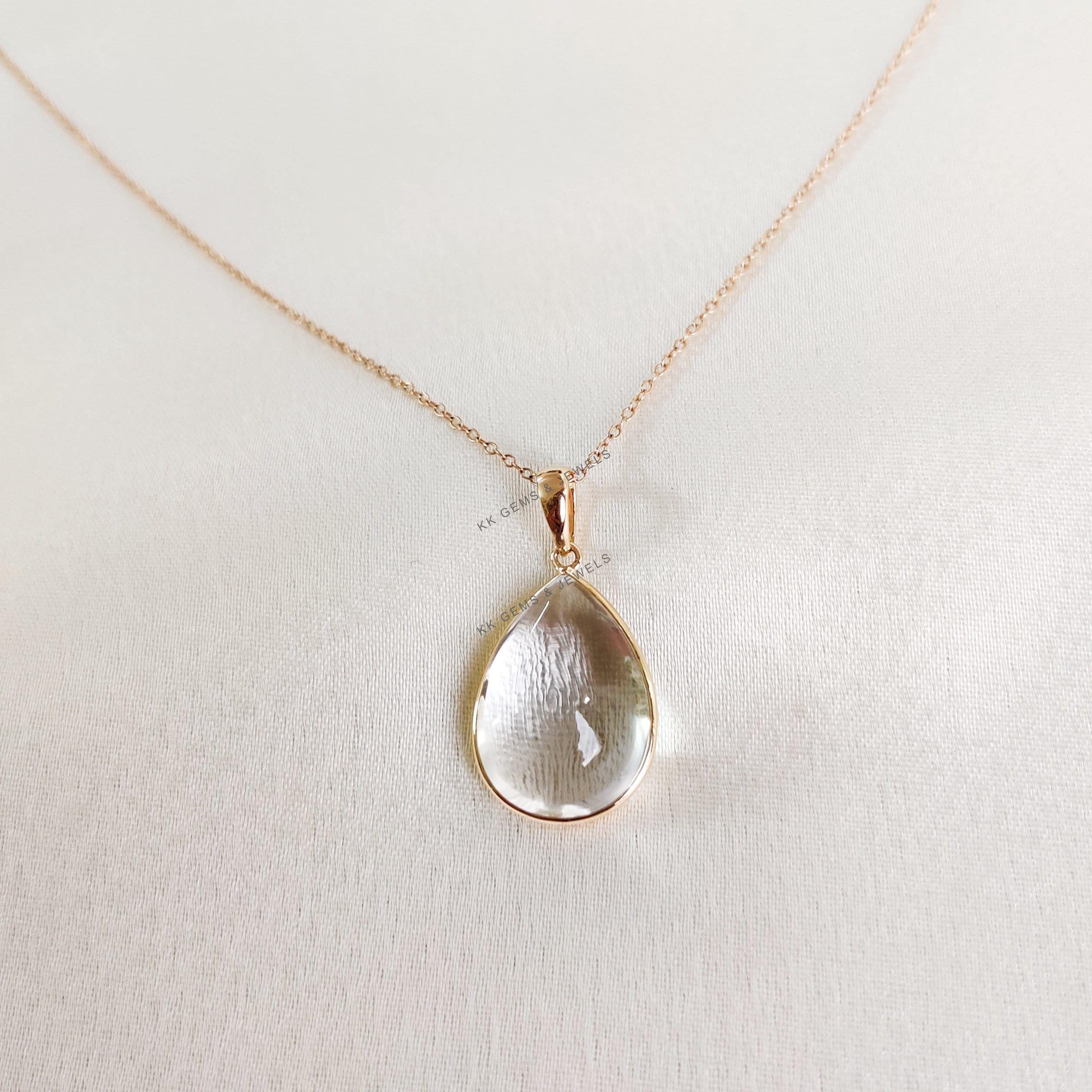 2 reviews for Pear Shape Natural Quartz Pendant Set in 14K Solid Gold, April Birthstone Bezel