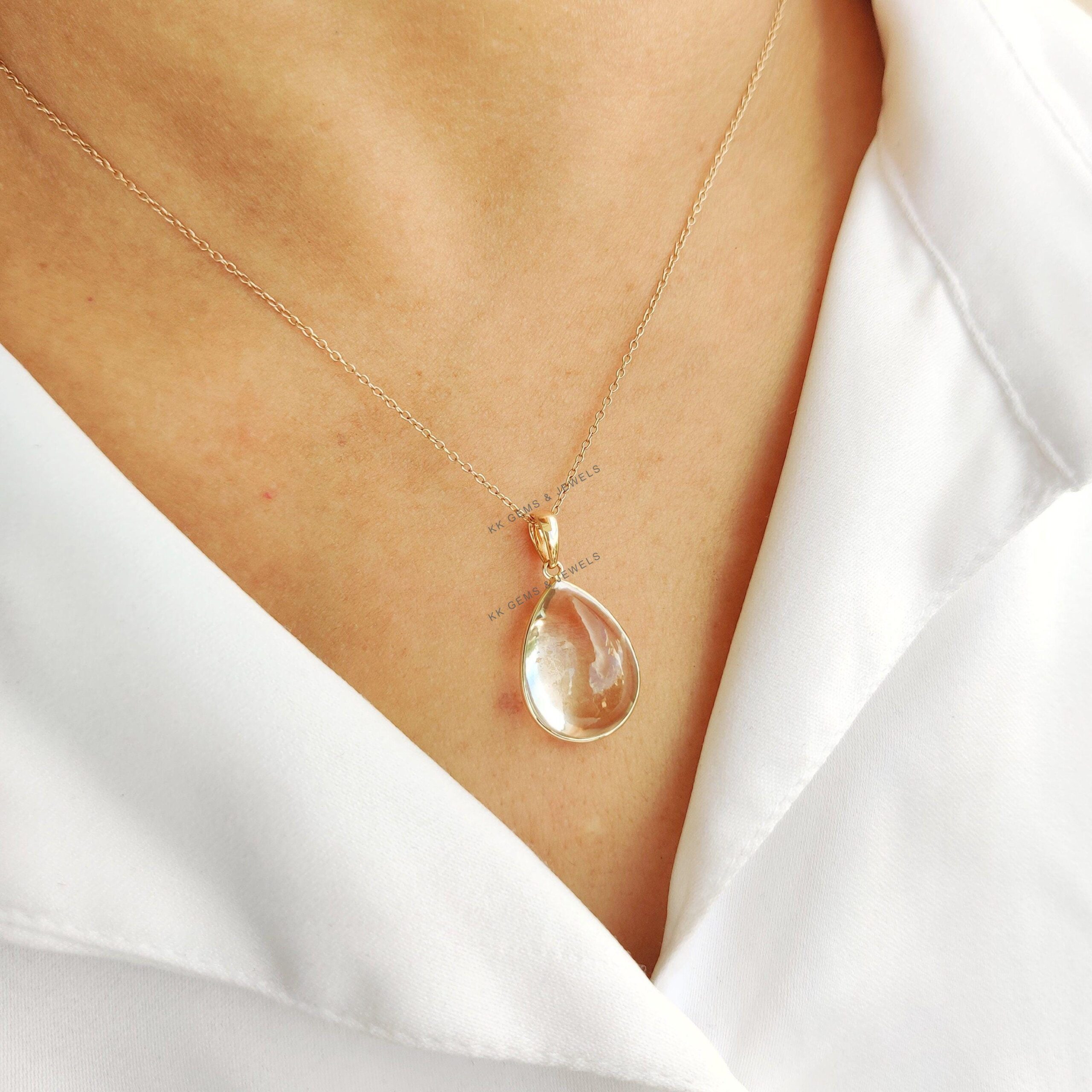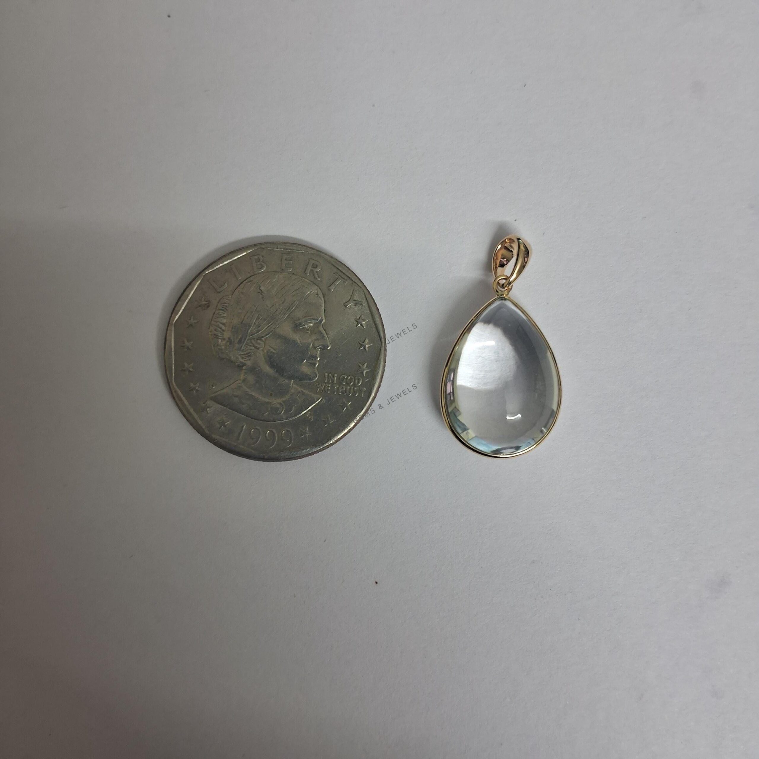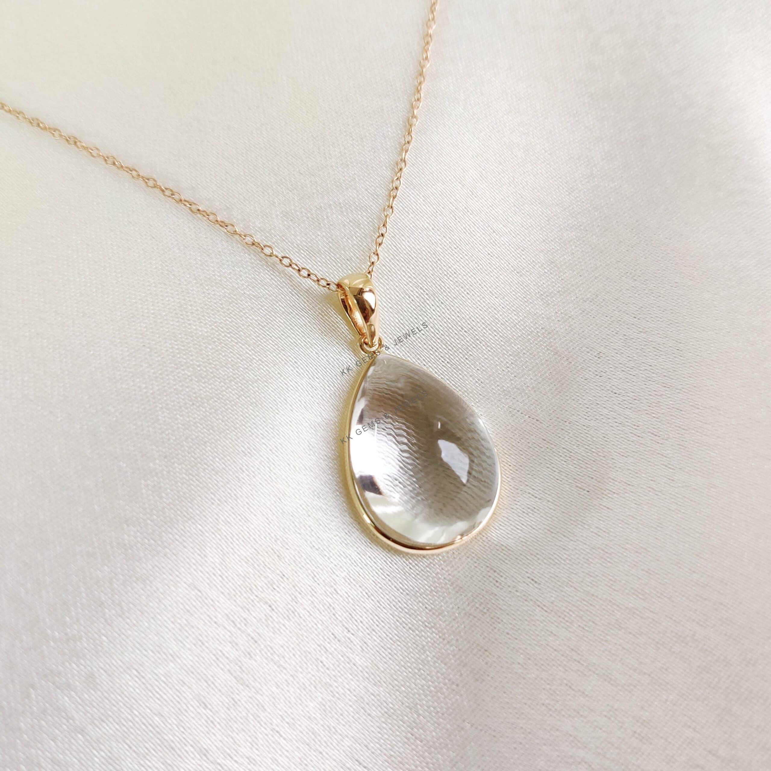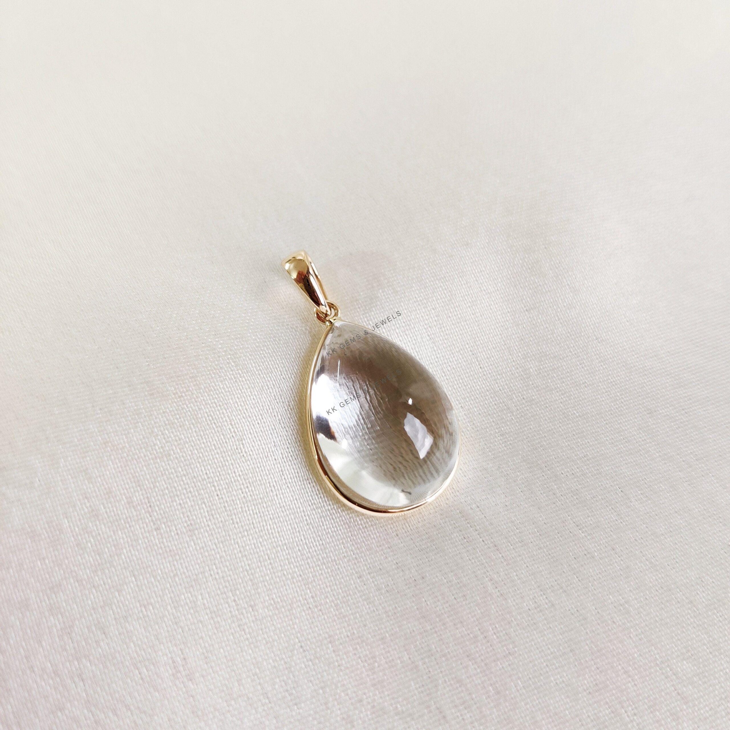 2 reviews for Pear Shape Natural Quartz Pendant Set in 14K Solid Gold, April Birthstone Bezel
